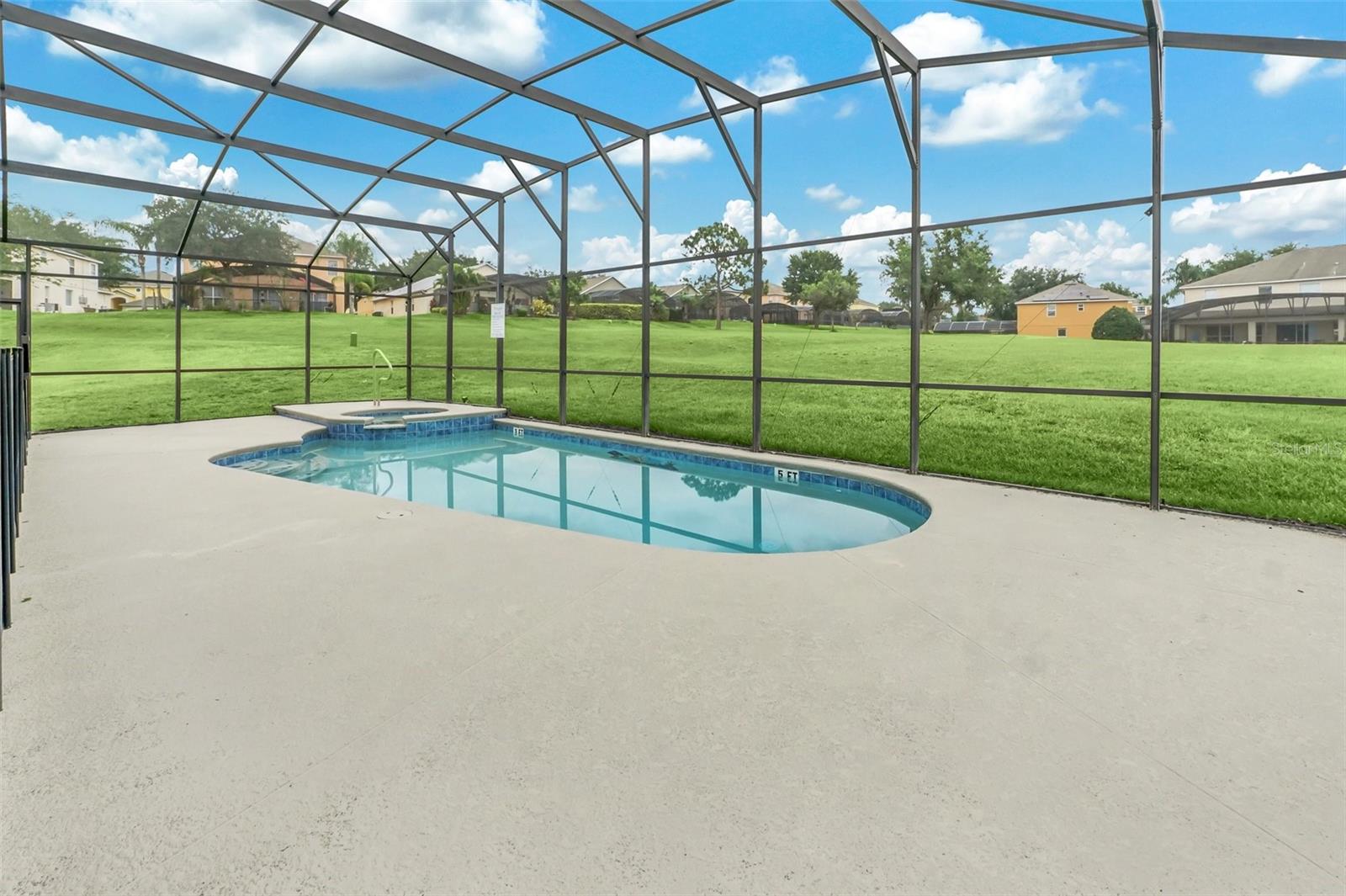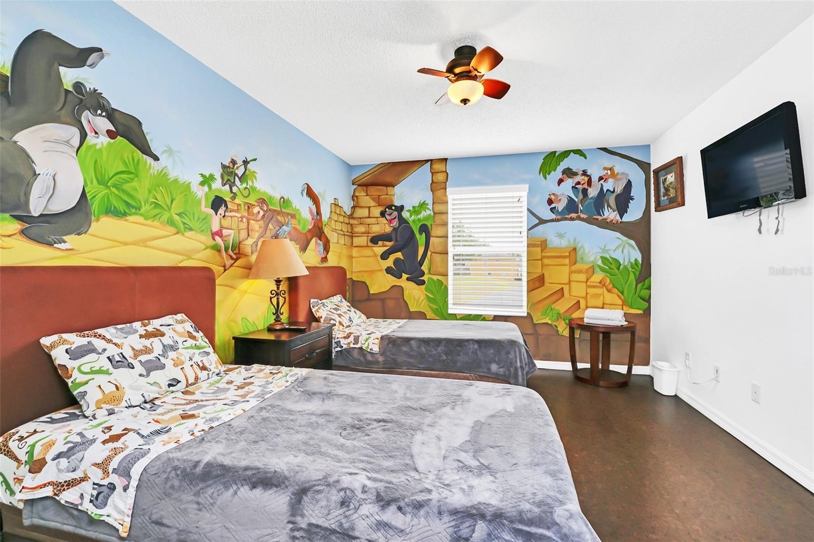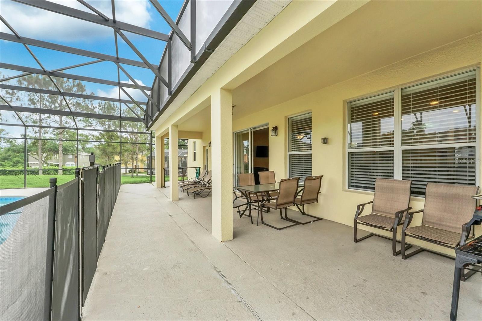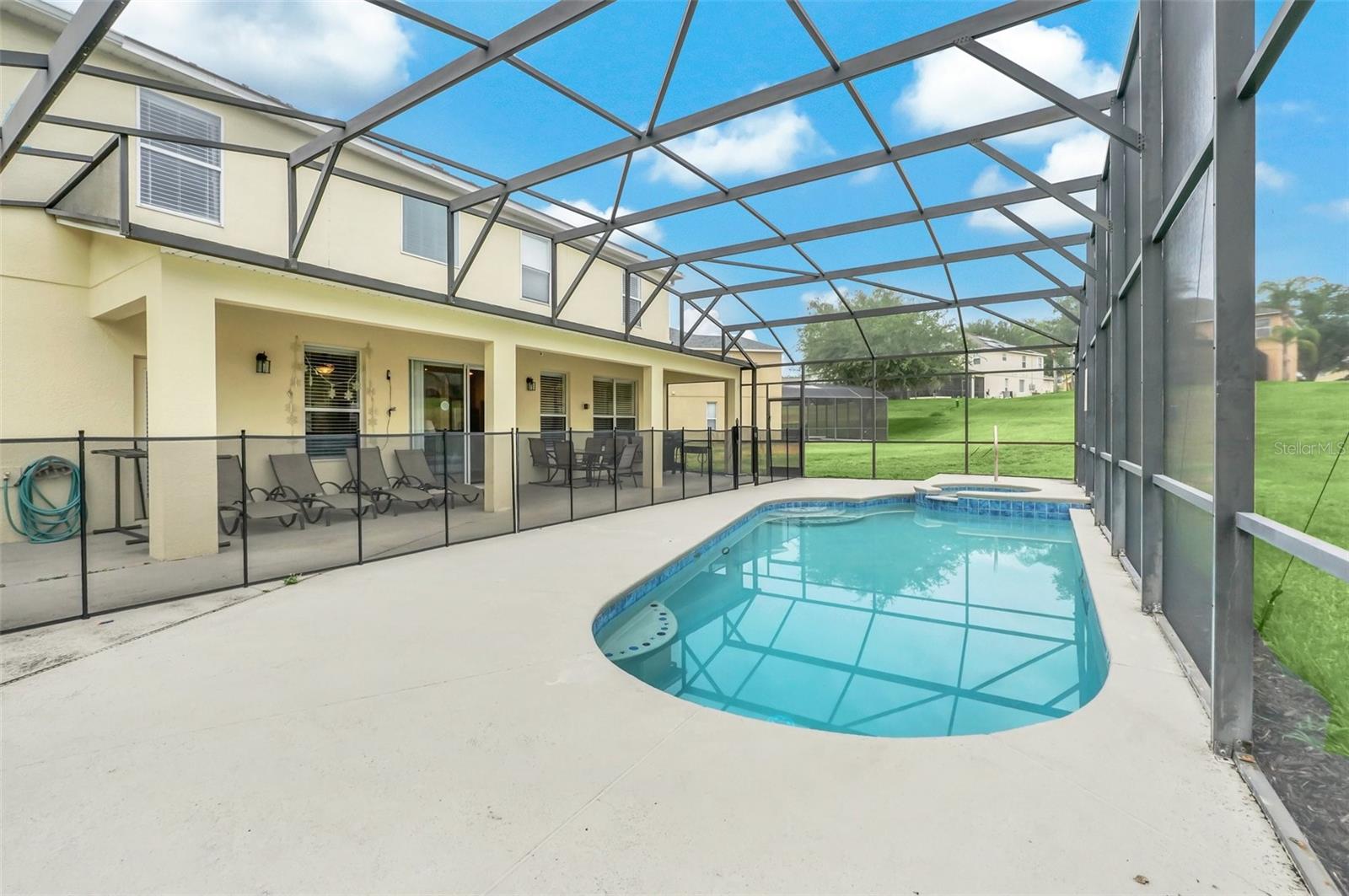 This beautiful 7-bedroom, 6-bathroom home, with an office and 2 master bedrooms, is located in the gated community of Emerald Island Resort. The home features a new roof (2018), two A/C units replaced in 2017 and 2018, a water heater replaced in 2020, and a pool heater replaced in 2022. The pool was resurfaced in 2018, and there is a fully paid solar system for the pool and spa. Upon entering, you'll find a dining room with a tray ceiling, and an office (media center/home theater) area currently used as a storage room. The living room is filled with natural light. The spacious kitchen boasts granite countertops and stainless-steel appliances, with a large peninsula countertop that offers plenty of bar seating and opens into the living room. Downstairs, there is a bedroom and a full bathroom conveniently located near the pool deck, perfect as a pool bath. Upstairs, to the right, you'll find a full bedroom with an ensuite bathroom, and the large master bedroom with a walk-in closet. The master bathroom features separate vanities, a garden tub, and a walk-in shower. To the left, there is another bedroom with an ensuite bathroom, along with a Jack & Jill bedroom and bathroom. At the end of the hall is the second master bedroom, also with a walk-in closet and a bathroom with separate vanities, a garden tub, and a walk-in shower. The two-car garage has been converted into an air-conditioned game room, which can serve as a living room, especially beneficial for short-term rentals. Emerald Island Resort is a gated and guarded community located near Disney. Surrounded by a conservation area, it encompasses over 300 acres, including 11 heavily wooded acres in the center of the community, creating a unique preserve-like environment. Owners and guests can enjoy various facilities within the resort, such as the clubhouse, sauna, fitness center, games arcade, free Wi-Fi around the pool areas, Tiki bar, 2 heated community pools and spas, volleyball, tennis courts, basketball facilities, kiddie play areas, and much more. Make an appointment to see this home today!