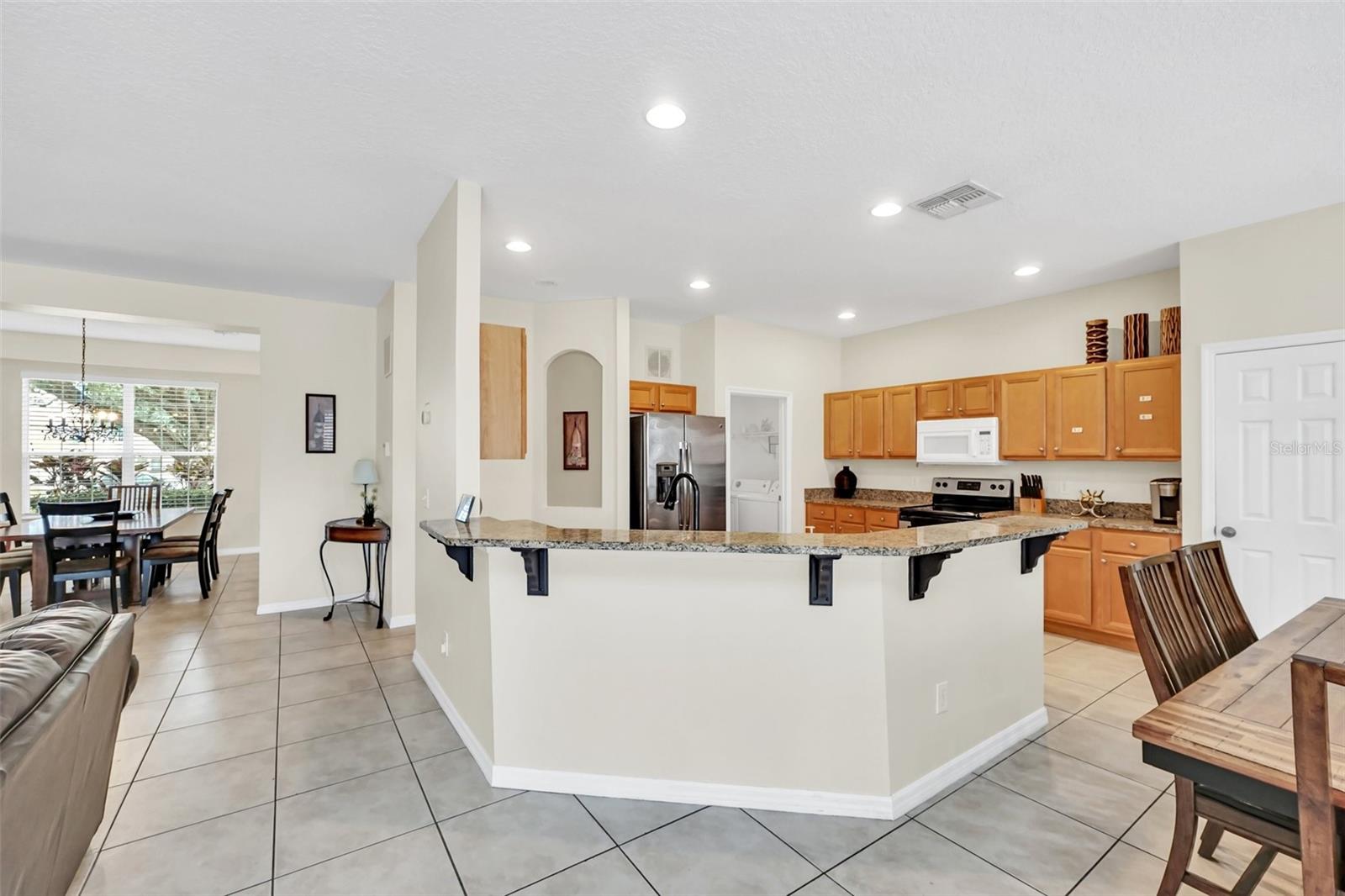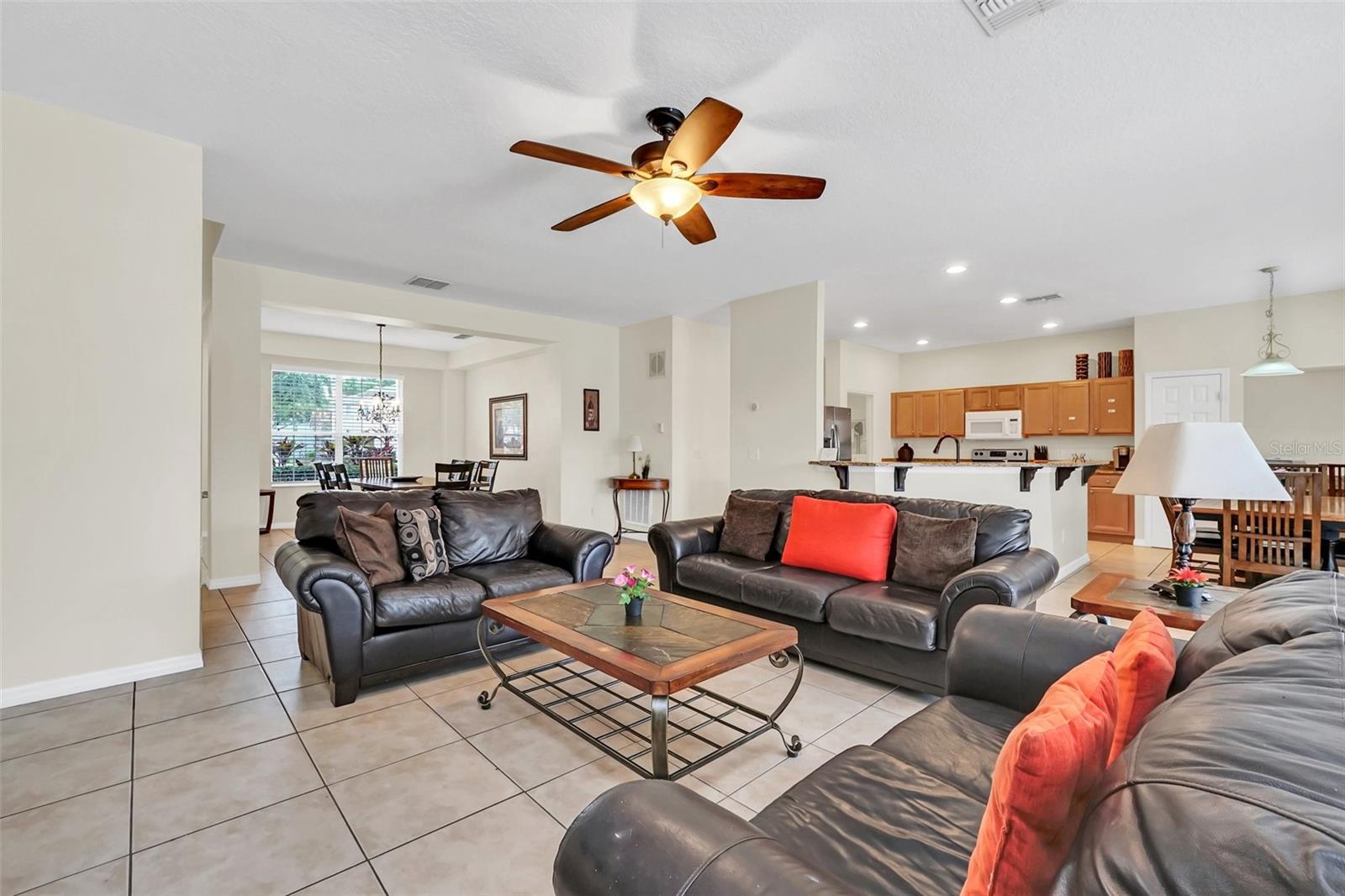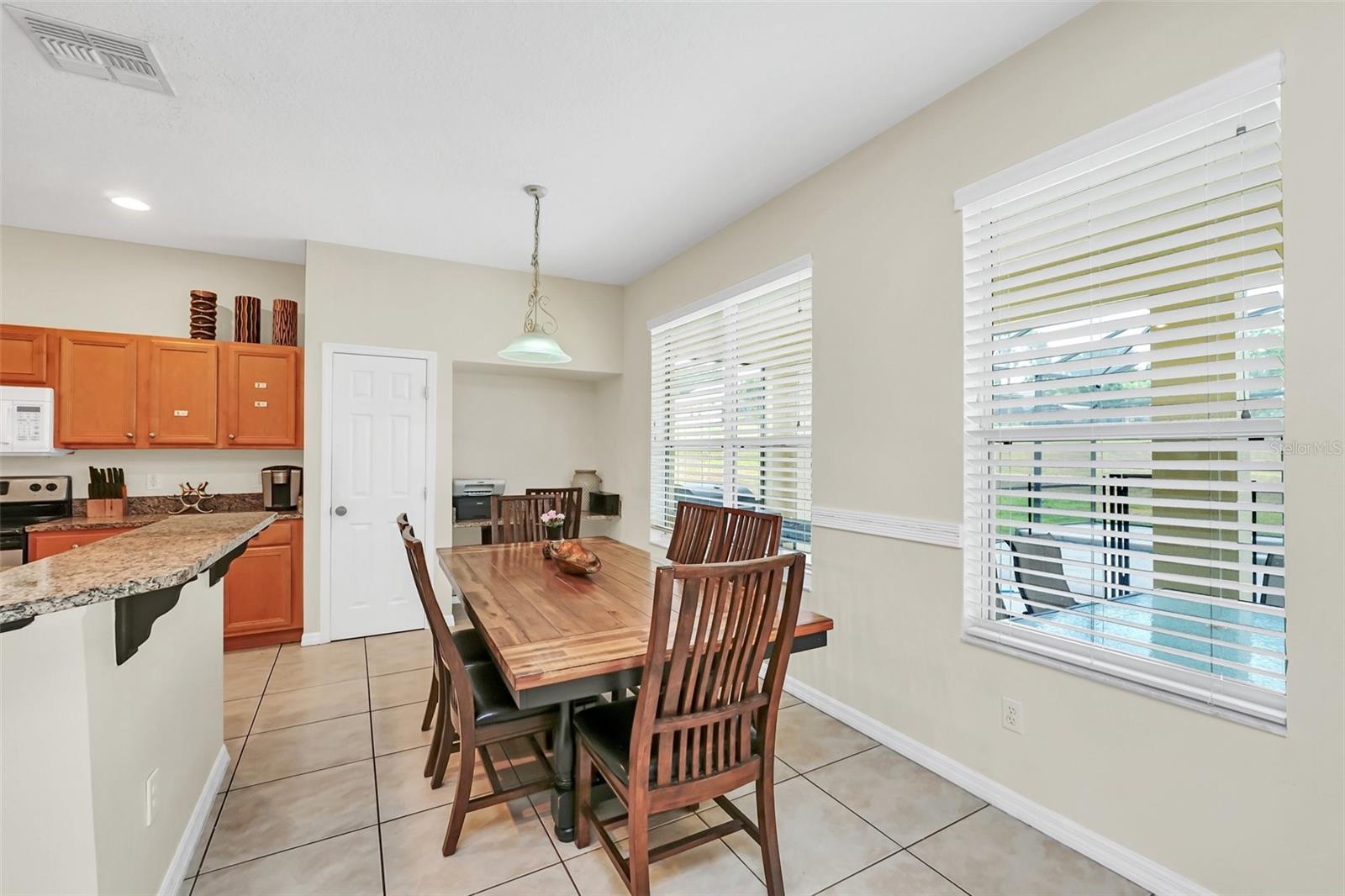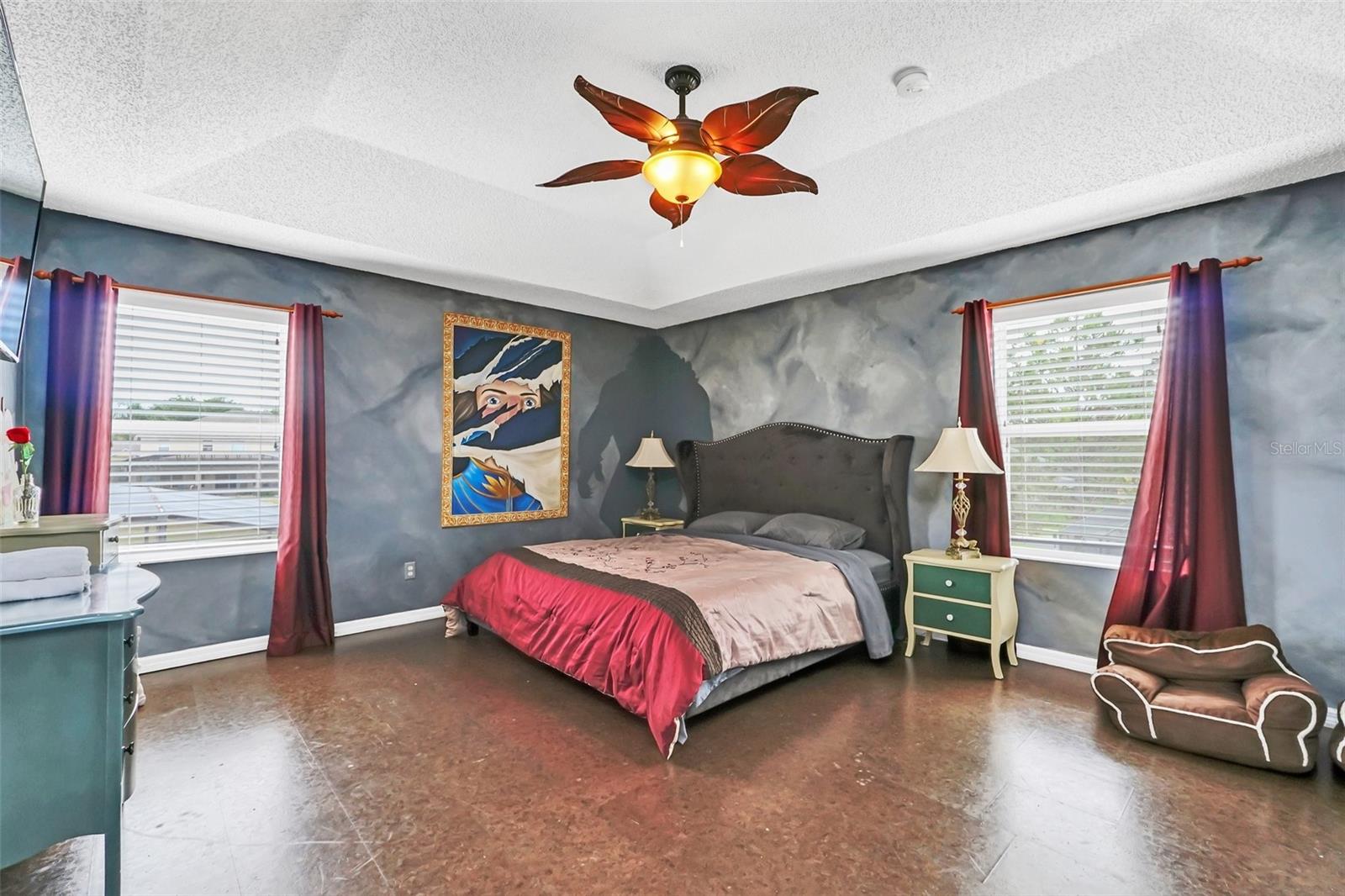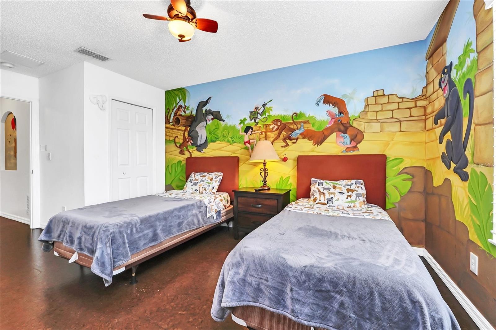 This beautiful 7-bedroom, 6-bathroom home, with an office and 2 master bedrooms, is located in the gated community of Emerald Island Resort. The home features a new roof (2018), two A/C units replaced in 2017 and 2018, a water heater replaced in 2020, and a pool heater replaced in 2022. The pool was resurfaced in 2018, and there is a fully paid solar system for the pool and spa. Upon entering, you'll find a dining room with a tray ceiling, and an office (media center/home theater) area currently used as a storage room. The living room is filled with natural light. The spacious kitchen boasts granite countertops and stainless-steel appliances, with a large peninsula countertop that offers plenty of bar seating and opens into the living room. Downstairs, there is a bedroom and a full bathroom conveniently located near the pool deck, perfect as a pool bath. Upstairs, to the right, you'll find a full bedroom with an ensuite bathroom, and the large master bedroom with a walk-in closet. The master bathroom features separate vanities, a garden tub, and a walk-in shower. To the left, there is another bedroom with an ensuite bathroom, along with a Jack & Jill bedroom and bathroom. At the end of the hall is the second master bedroom, also with a walk-in closet and a bathroom with separate vanities, a garden tub, and a walk-in shower. The two-car garage has been converted into an air-conditioned game room, which can serve as a living room, especially beneficial for short-term rentals. Emerald Island Resort is a gated and guarded community located near Disney. Surrounded by a conservation area, it encompasses over 300 acres, including 11 heavily wooded acres in the center of the community, creating a unique preserve-like environment. Owners and guests can enjoy various facilities within the resort, such as the clubhouse, sauna, fitness center, games arcade, free Wi-Fi around the pool areas, Tiki bar, 2 heated community pools and spas, volleyball, tennis courts, basketball facilities, kiddie play areas, and much more. Make an appointment to see this home today!