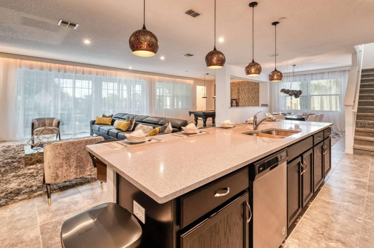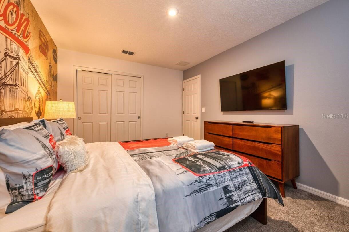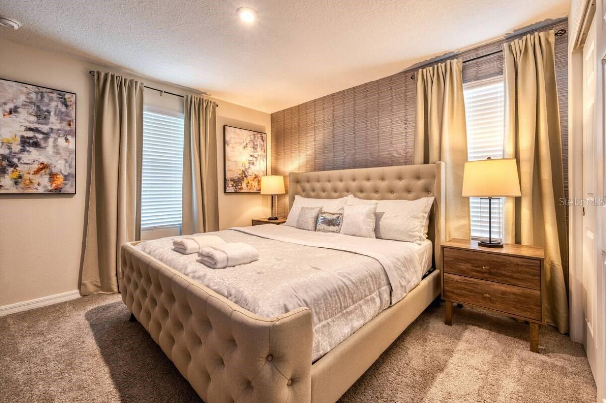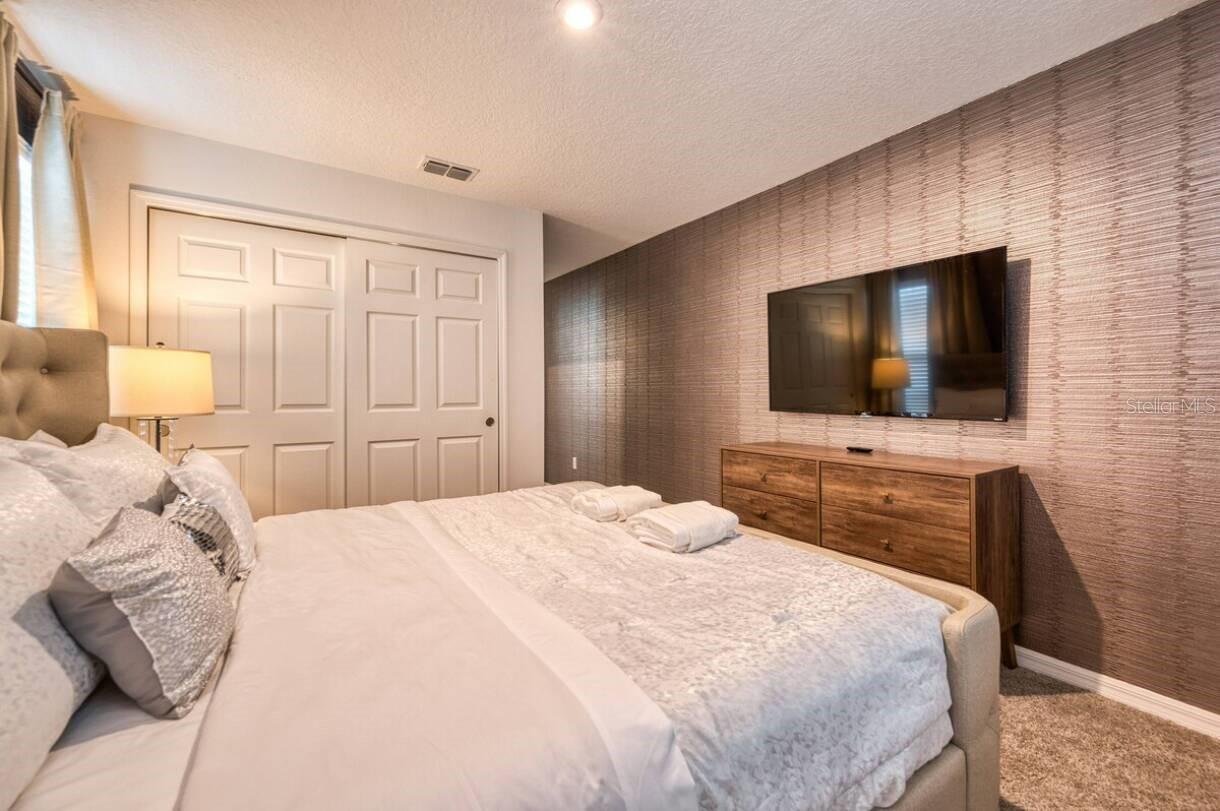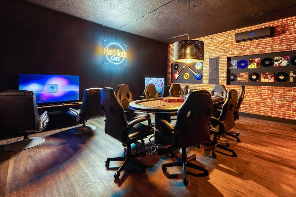 Welcome to Solara Resort! This is your new Vacation Home. FULLY FURNISHED!!!! At this spacious and luxury home you will find an open floor plan merging kitchen, living room and dining room. Whether you want to watch TV or play billiards (pool table) you can stay in the living room area. The kitchen is fully equipped ready to welcome you, your family and your guests. The Master Bedroom is pleasantly located on the first floor as well. Ready for a Hard Rock café night? Enjoy a stunning themed Game Room, with a Poker station and more attractions, everything you need to have a good time. About themed rooms… you will find a Mickey Mouse bedroom, a Star Wars bedroom, a Harry Potter bedroom besides a Paris, New York City and London themed bedroom. Not a big fan of themed room? Don’t worry, here you will have plain rooms ideal for grown-ups. A must-see: the amazing heated pool & SPA - all private. About the community: Solara Resort is reference within the resort communities in Orlando area, offering heated grand pool, FlowRider Surf Simulator (*Fee Required), Bar and Grill, Coffee Bar, Full Fitness Center, Sand Volleyball Court, Soccer Field, Basketball Court, Indoor and Outdoor Lounges, Workstations, Playground with Pool, Pool Bar, Poolside cabanas, Game Room and more! Obs. The house is strategically located aside from a community gate. Get in touch today and make your dreams come true!