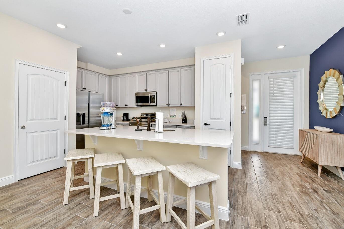 STOP THE CAR! DON'T MISS OUT ON THIS ONE!! HUGE PRICE REDUCTION on this fantastic 2 bed PLUS extra flex bedroom Villa. Gorgeous Margaritaville Resort Orlando Townhome with 2 Bedroom 2.5 Bathroom + Bonus Room and 1,350+ square feet of living space in the gated section of Resort with beautiful furnishings! Enter through the front door into the foyer with coffee bar/butler pantry area and downstairs bath before reaching the upgraded kitchen and open living /dining combo space with 10' ceilings. Glass sliders open to a back patio area and open green-space to lounge and relax, only steps away from 1 of the 4 pools exclusive to this phase. Upstairs is the owners bedroom & en suite bath with granite topped dual vanity and walk in shower, another full bedroom & bathroom, and A BONUS FLEX ROOM with single bed, TV, and closet! Margaritaville Resort Orlando is located just minutes away from Walt Disney World. Don't let your clients miss out on owning this Vacation Home!!