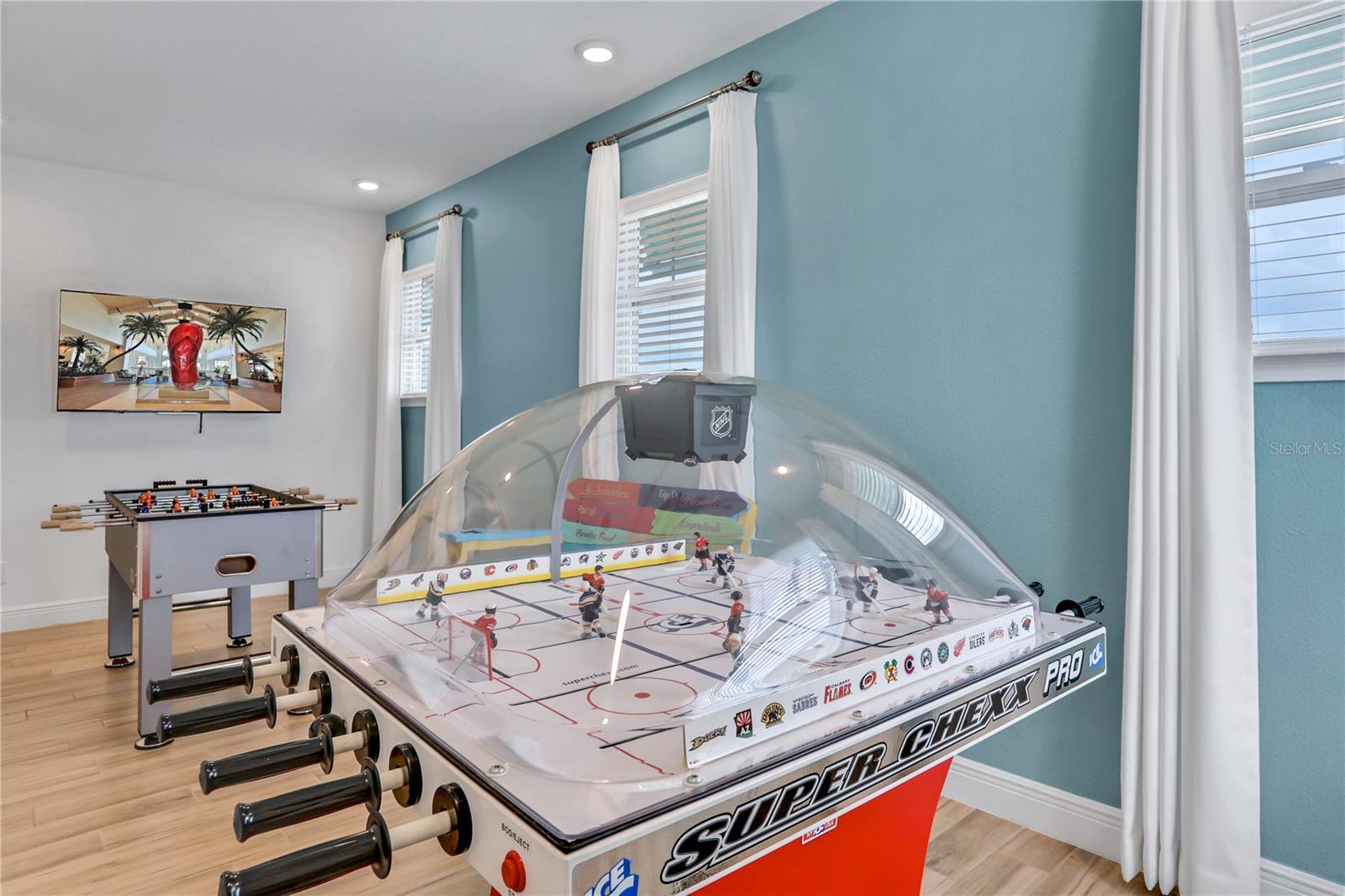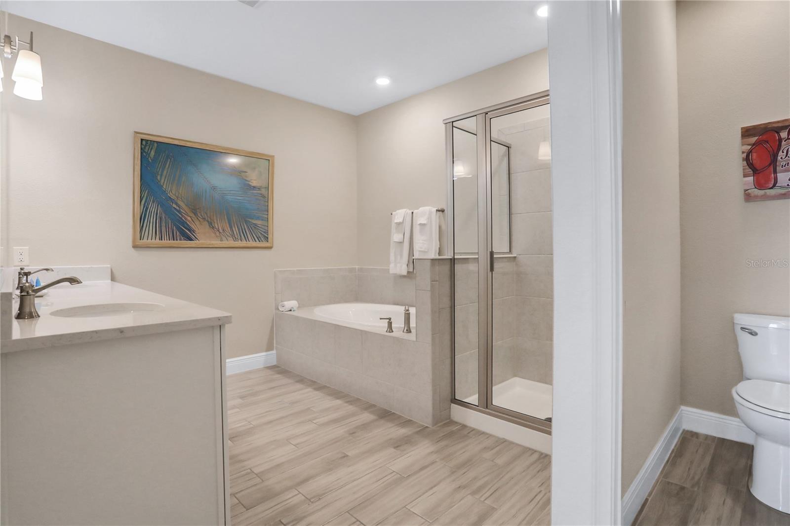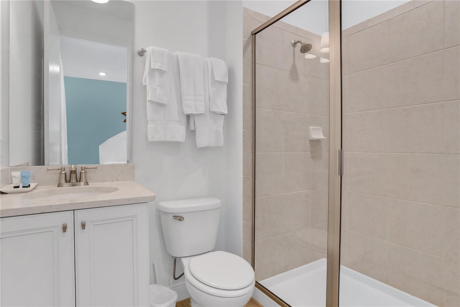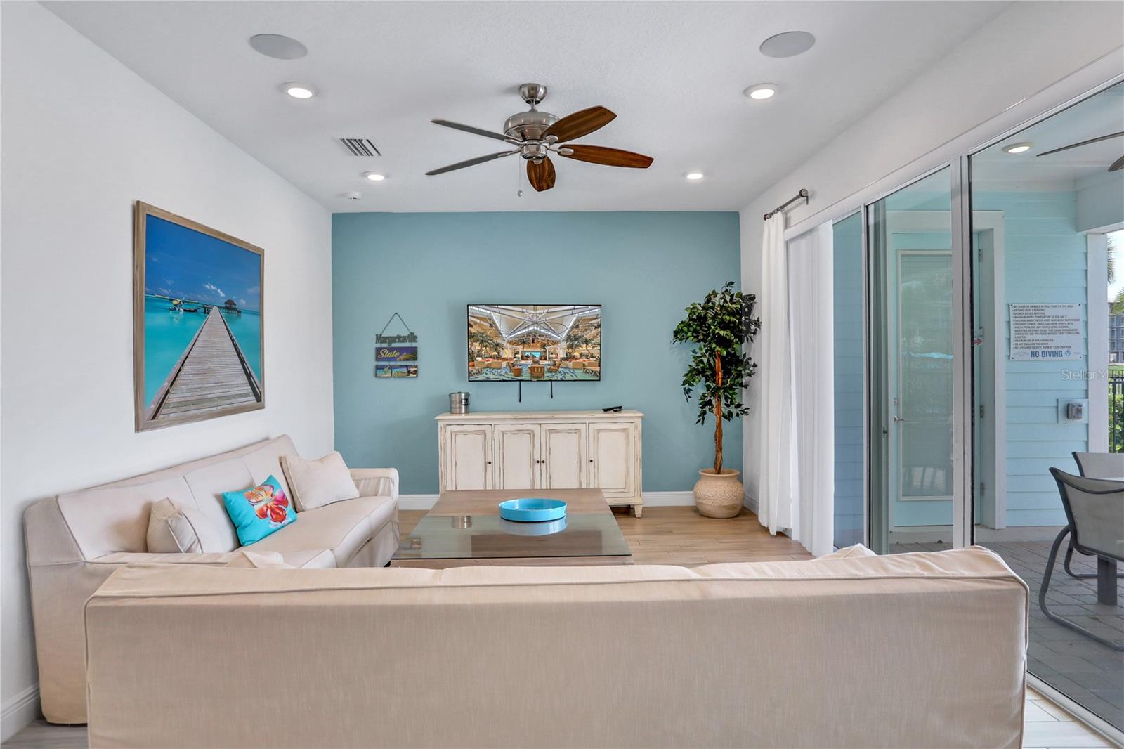 'THE BLUE PEARL' is an AMAZING WATERFRONT Cottage with POOL, SPA and GORGEOUS SUNSET VIEWS on Margaritaville Resort Orlando's 'TROPHY ROW'! MOST PREMIER RESORT LOCATION JUST STEPS FROM THE FINS UP BEACH CLUB and OTHER RESORT AMENITIES! FANTASTIC OPPORTUNITY TO OWN ONE of the LARGEST FLOOR PLANS in the Resort and the ONLY MODEL that has 4 BEDROOMS on the FIRST FLOOR! THIS EXTREMELY RARE 4090-C Three-Story Model Features 8 Bedrooms, 9 Full and 2 Half Bathrooms, "BEACH HOUSE" Upgrade Package and a LARGE Patio/Balcony on Second Floor! This BEAUTIFUL Home Features Four En Suite Bedrooms on First Floor, Kitchen with LARGE ISLAND and Windows Facing the Pool Bringing in Tons of Natural Light, Full Size W/D, Living Room with Sliders that Lead to Beautiful Paved Patio, Fenced In Backyard with Covered Area, In-Ground Pool and Spa and Cabana Bath. Second Floor has Four Bedrooms Including a Primary Suite with Large Walk-In Closet, Dual Sinks, Separate Tub and Shower and Balcony Access. The Third Floor Features a Spacious Loft with Two Separate Rooms. One Room in the Loft is Highlighted with a Foosball Game Table and Bubble Hockey Game. Home also has Covered Front Porch, Upgraded 'WOOD' Tile Flooring, QUARTZ Countertops, In-Ceiling Speakers in Living Room that Connects to TV or Phone Via App. Ethan Allen "BEACH HOUSE" Furniture/Housewares Package INCLUDED in List Price! Package Includes Blinds, Drapes, TVs, Artwork, Kitchen Necessities, Dishware, Linens, Frozen Concoction Maker and SO MUCH MORE! This is a Wonderful Community to Live in Full Time, Own a Second Home or Invest in a Vacation Rental Property! Unique First of its Kind Resort with Multiple Pools, Gym, On-Site Water Park, Sunset Walk Restaurants, Bars, Live Music, Retail and More! LOCATED MINUTES FROM DISNEY PARKS! The Time is Now to Start Living the Margaritaville Lifestyle!