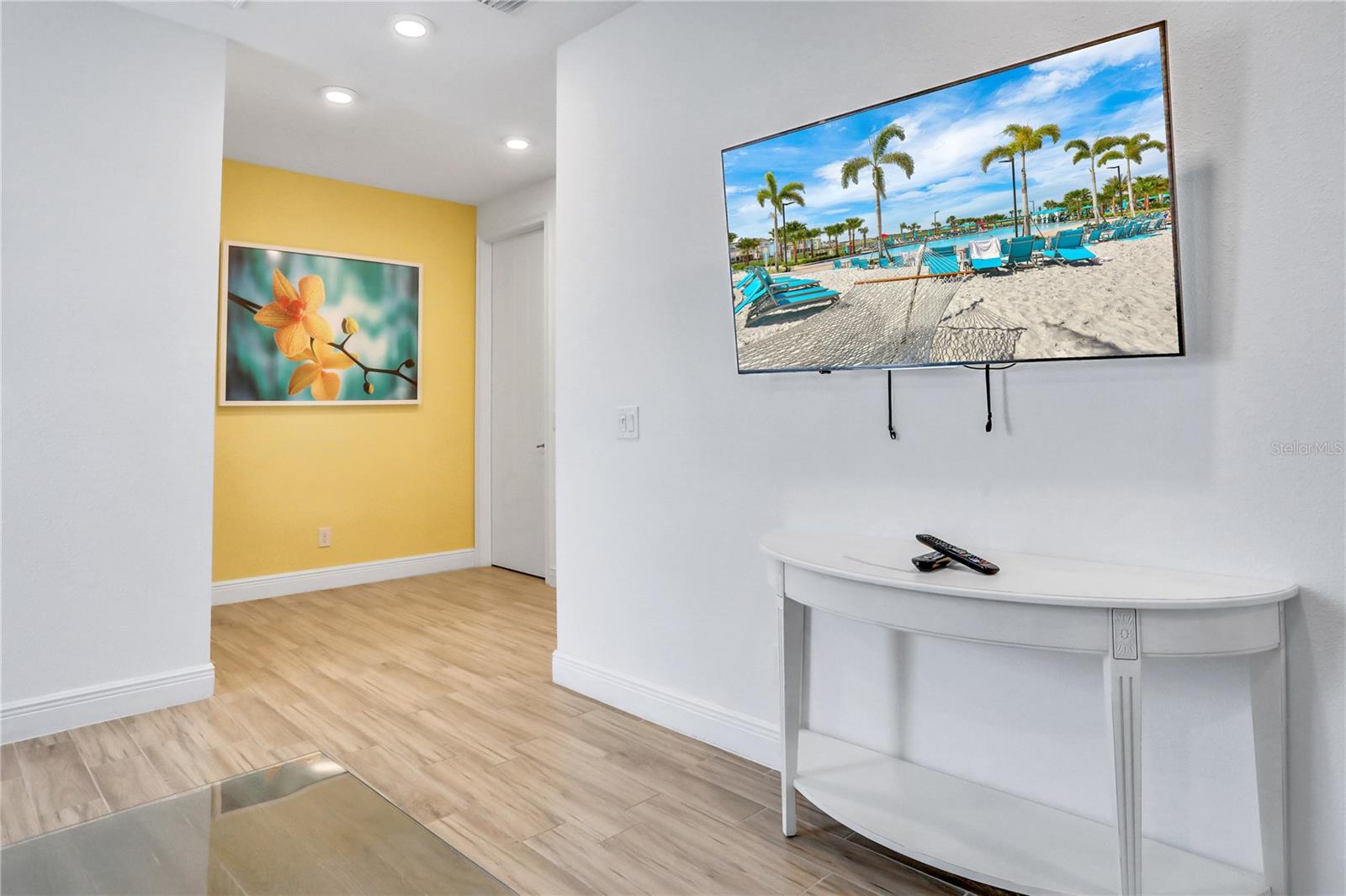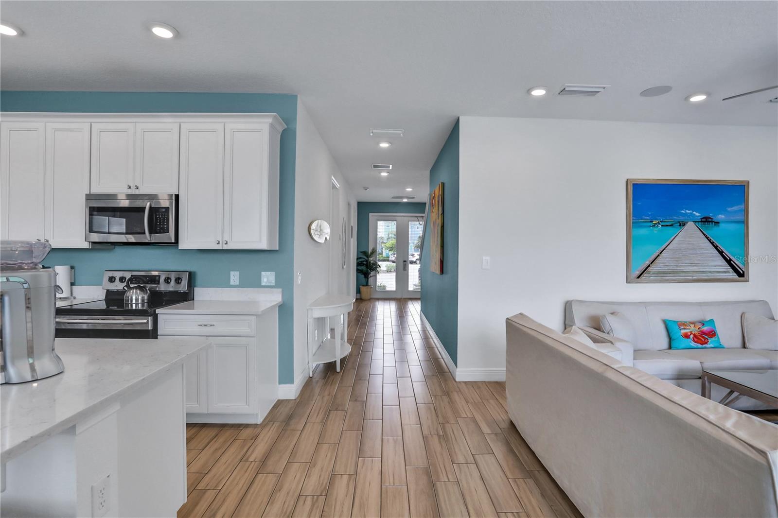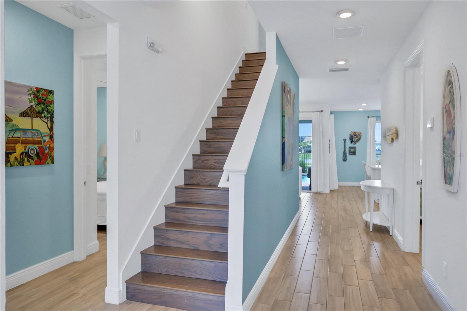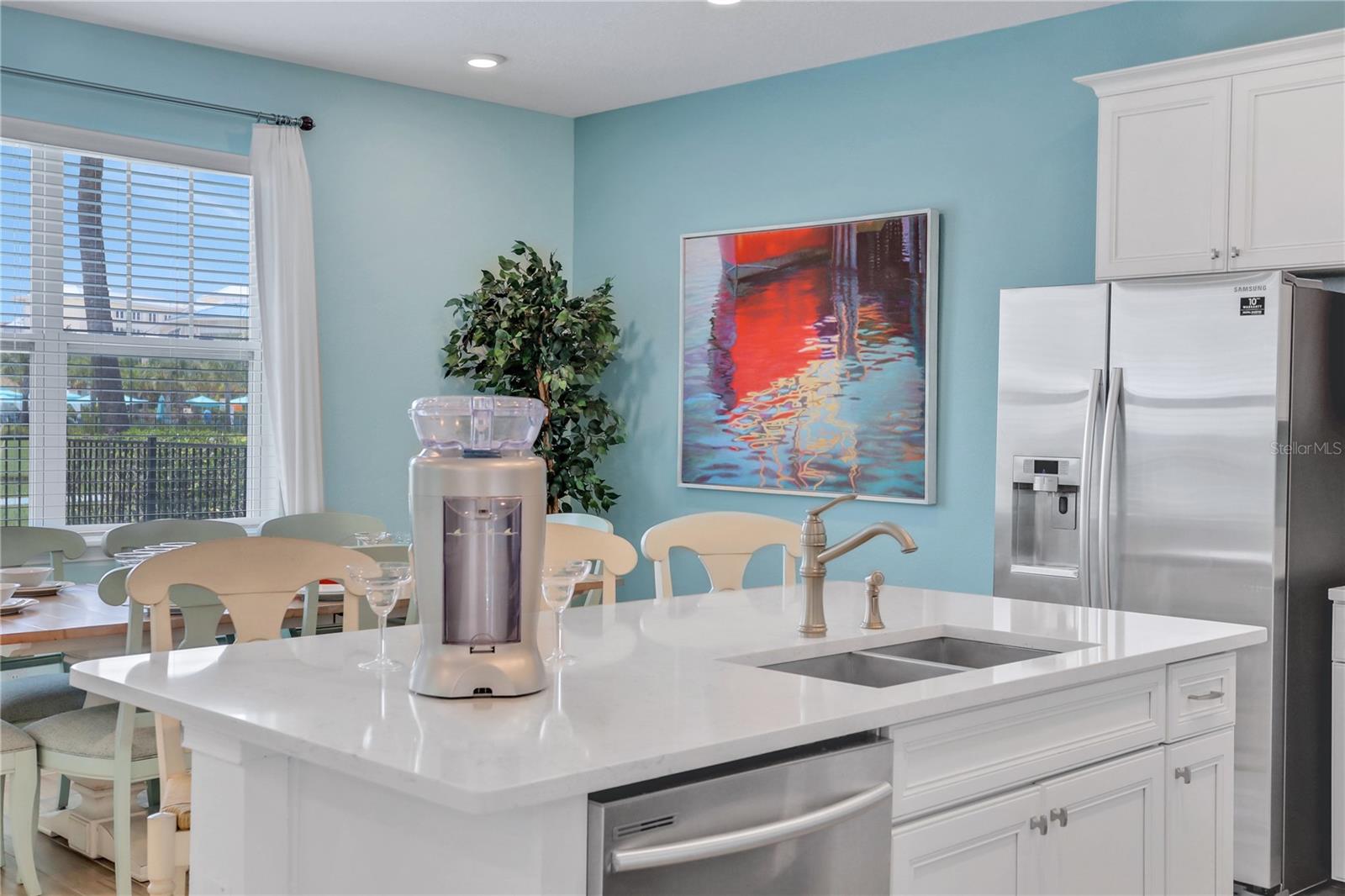 'THE BLUE PEARL' is an AMAZING WATERFRONT Cottage with POOL, SPA and GORGEOUS SUNSET VIEWS on Margaritaville Resort Orlando's 'TROPHY ROW'! MOST PREMIER RESORT LOCATION JUST STEPS FROM THE FINS UP BEACH CLUB and OTHER RESORT AMENITIES! FANTASTIC OPPORTUNITY TO OWN ONE of the LARGEST FLOOR PLANS in the Resort and the ONLY MODEL that has 4 BEDROOMS on the FIRST FLOOR! THIS EXTREMELY RARE 4090-C Three-Story Model Features 8 Bedrooms, 9 Full and 2 Half Bathrooms, "BEACH HOUSE" Upgrade Package and a LARGE Patio/Balcony on Second Floor! This BEAUTIFUL Home Features Four En Suite Bedrooms on First Floor, Kitchen with LARGE ISLAND and Windows Facing the Pool Bringing in Tons of Natural Light, Full Size W/D, Living Room with Sliders that Lead to Beautiful Paved Patio, Fenced In Backyard with Covered Area, In-Ground Pool and Spa and Cabana Bath. Second Floor has Four Bedrooms Including a Primary Suite with Large Walk-In Closet, Dual Sinks, Separate Tub and Shower and Balcony Access. The Third Floor Features a Spacious Loft with Two Separate Rooms. One Room in the Loft is Highlighted with a Foosball Game Table and Bubble Hockey Game. Home also has Covered Front Porch, Upgraded 'WOOD' Tile Flooring, QUARTZ Countertops, In-Ceiling Speakers in Living Room that Connects to TV or Phone Via App. Ethan Allen "BEACH HOUSE" Furniture/Housewares Package INCLUDED in List Price! Package Includes Blinds, Drapes, TVs, Artwork, Kitchen Necessities, Dishware, Linens, Frozen Concoction Maker and SO MUCH MORE! This is a Wonderful Community to Live in Full Time, Own a Second Home or Invest in a Vacation Rental Property! Unique First of its Kind Resort with Multiple Pools, Gym, On-Site Water Park, Sunset Walk Restaurants, Bars, Live Music, Retail and More! LOCATED MINUTES FROM DISNEY PARKS! The Time is Now to Start Living the Margaritaville Lifestyle!