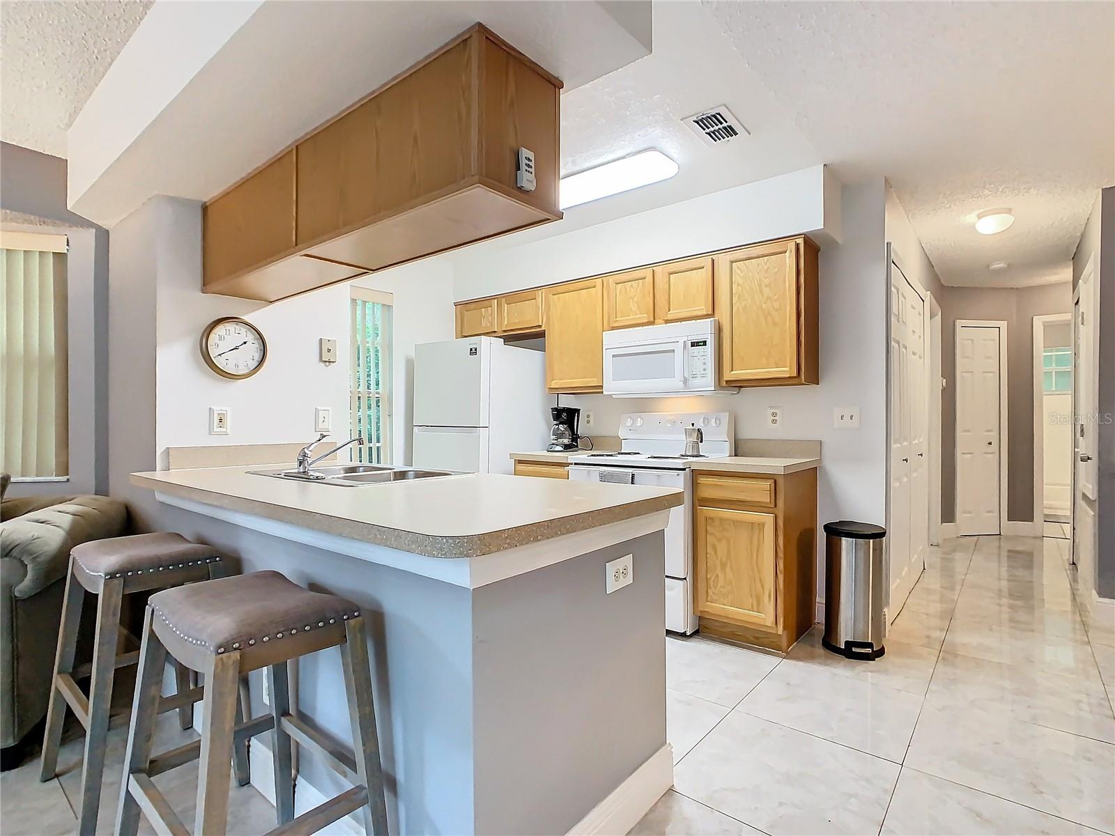 **CHECK OUT THE 3D VIRTUAL TOUR** ---> HUGE PRICE IMPROVEMENT <--- Welcome to this exceptional ORIGINAL OWNER 2-bedroom, 2-bathroom corner unit located on the SECOND FLOOR of the popular Villas at Laguna Bay in Kissimmee, Florida. NO REAR NEIGHBORS provides for a very private, quiet setting. Looking for a plug in and play Florida getaway? Spanning almost 1200 square feet, this beautifully FULLY FURNISHED - TURN KEY home has been upgraded and maintained by its original owners. Need piece of mind for years to come? This home comes packed with fresh ingredients! NEW HVAC 2021 with an ECO SMART THERMOSTAT, UPDATED WATER HEATER, NEW LUXURY CERAMIC TILING, NEW INTERIOR PAINT, NEW EXTERIOR PAINT and a NEWER WASHER AND DRYER. As you enter, you will be greeted by soaring high ceilings and an abundance of natural sunlight from the large bay windows, creating an inviting OPEN CONCEPT atmosphere. The conveniently located kitchen features a double sink, ample storage with a pantry and generous cooking space, making it a delightful area for culinary creations. Designed for entertaining, the separate dining area provides room for larger gatherings, accented by QUALITY MODERN FURNITURE throughout the home. The primary bathroom is a highlight with it's updated vanity and fixtures ensuring convenience and comfort. Experience a perfect blend of style and functionality in this remarkable residence. This home is located in the heart of Kissimmee, minutes away from all of Orlando and surrounding area's most popular attractions. Many Florida beaches are just a short drive from here. Schedule a private showing today to truly appreciate this home and it's unique details!