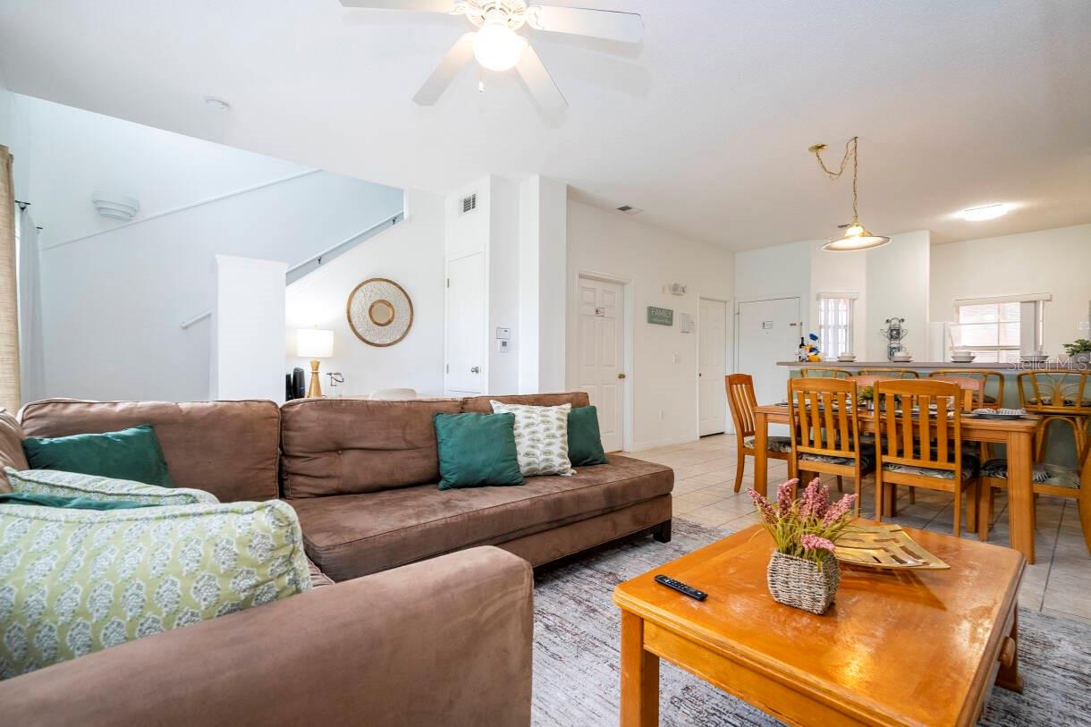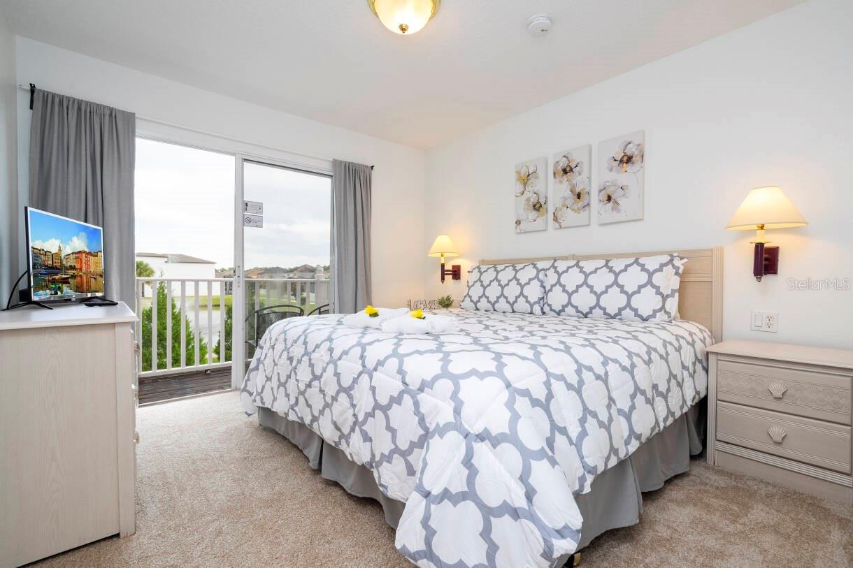 Turnkey vacation rental just minutes from Disney! This fully furnished 3-bedroom, 2.5-bath townhome is located in the Airbnb-approved, guard-gated Lake Berkley Resort—one of Kissimmee’s most popular communities for short-term rentals. Offering 1,291 sq ft of beautifully maintained, vacation-ready living space, this two-story home is designed for both guest comfort and high rental appeal. The open-concept layout connects the kitchen, dining, and living areas seamlessly, making it ideal for entertaining or relaxing after a day at the parks. The kitchen features solid wood cabinetry and a breakfast bar for casual dining. Upstairs, the spacious primary suite includes a private sliding door that opens to a balcony—perfect for enjoying Florida’s warm breezes and sunshine. Located just minutes from Walt Disney World, major shopping, dining, and top Orlando attractions, this home is perfectly positioned for strong rental income. Lake Berkley Resort offers fantastic amenities including two community pools, a splash pad, tennis, basketball, and volleyball courts, playgrounds, and scenic walking trails. Whether you’re adding to your investment portfolio or looking for a personal vacation retreat that pays for itself, this property offers the best of both worlds—location, amenities, and rental potential.