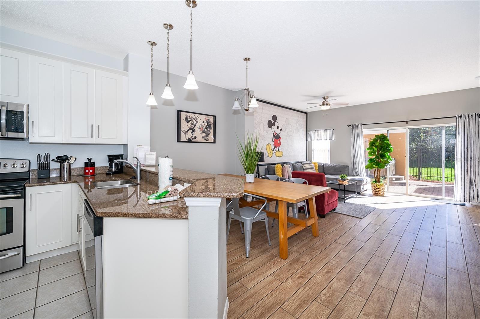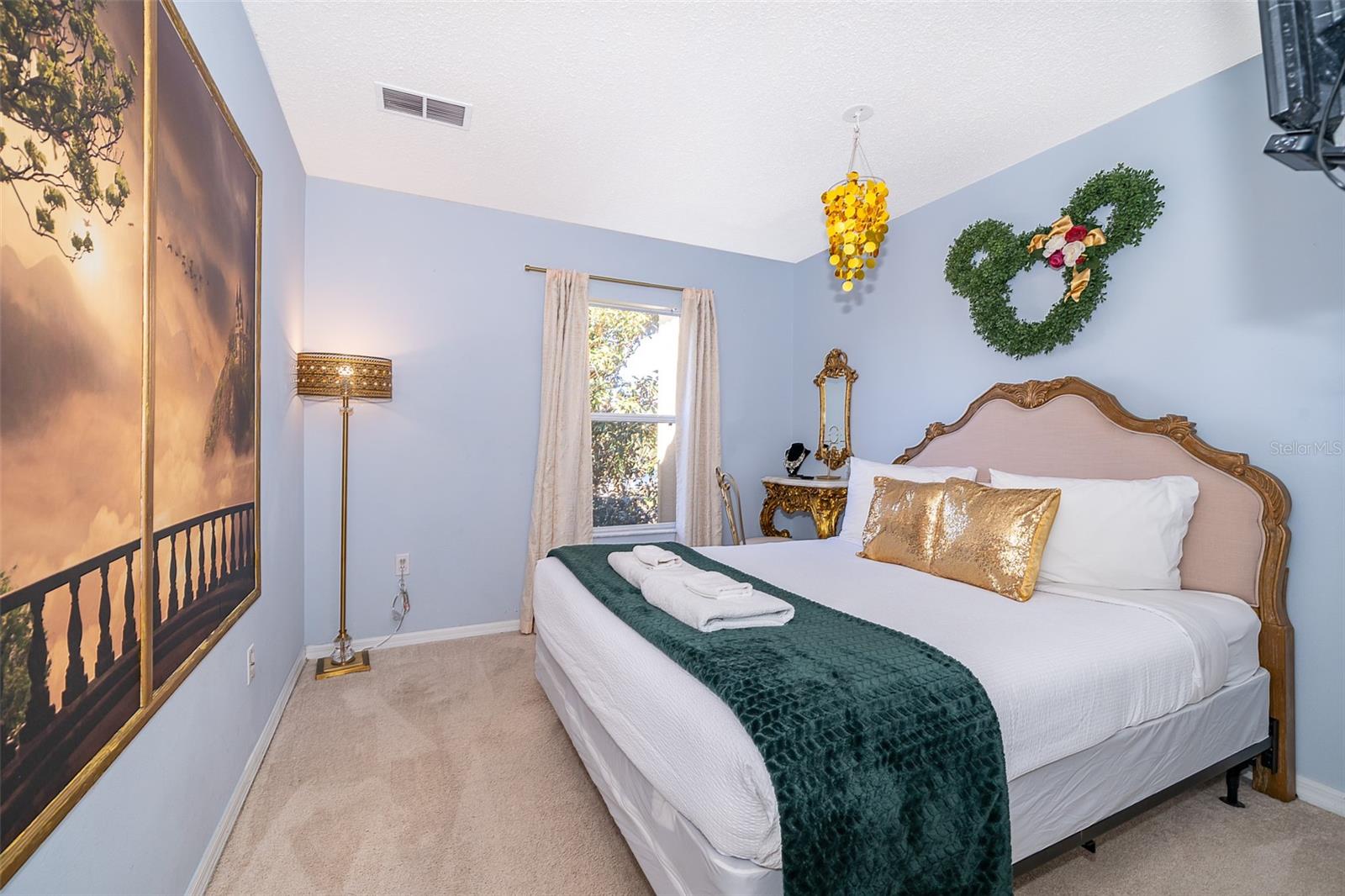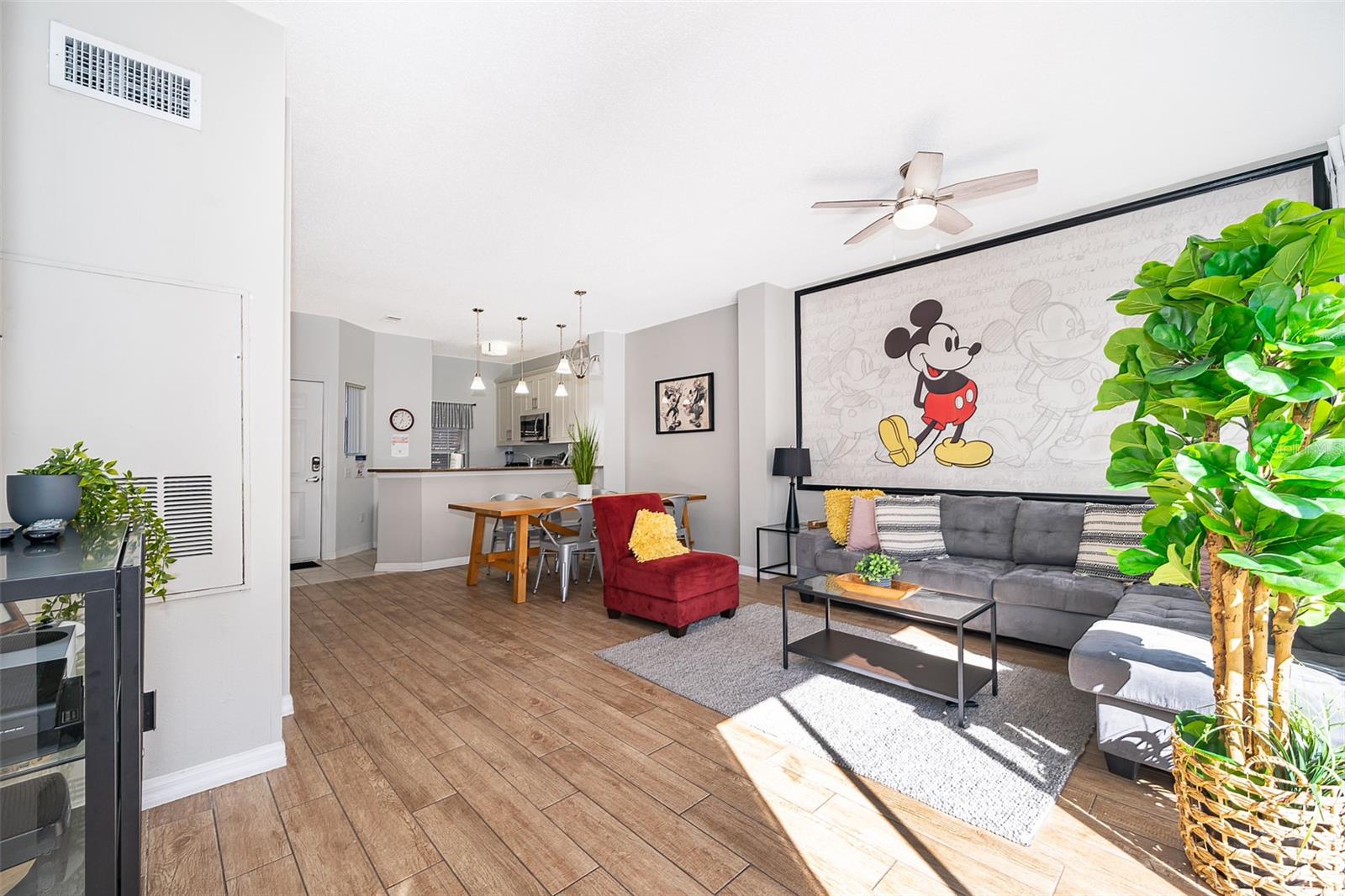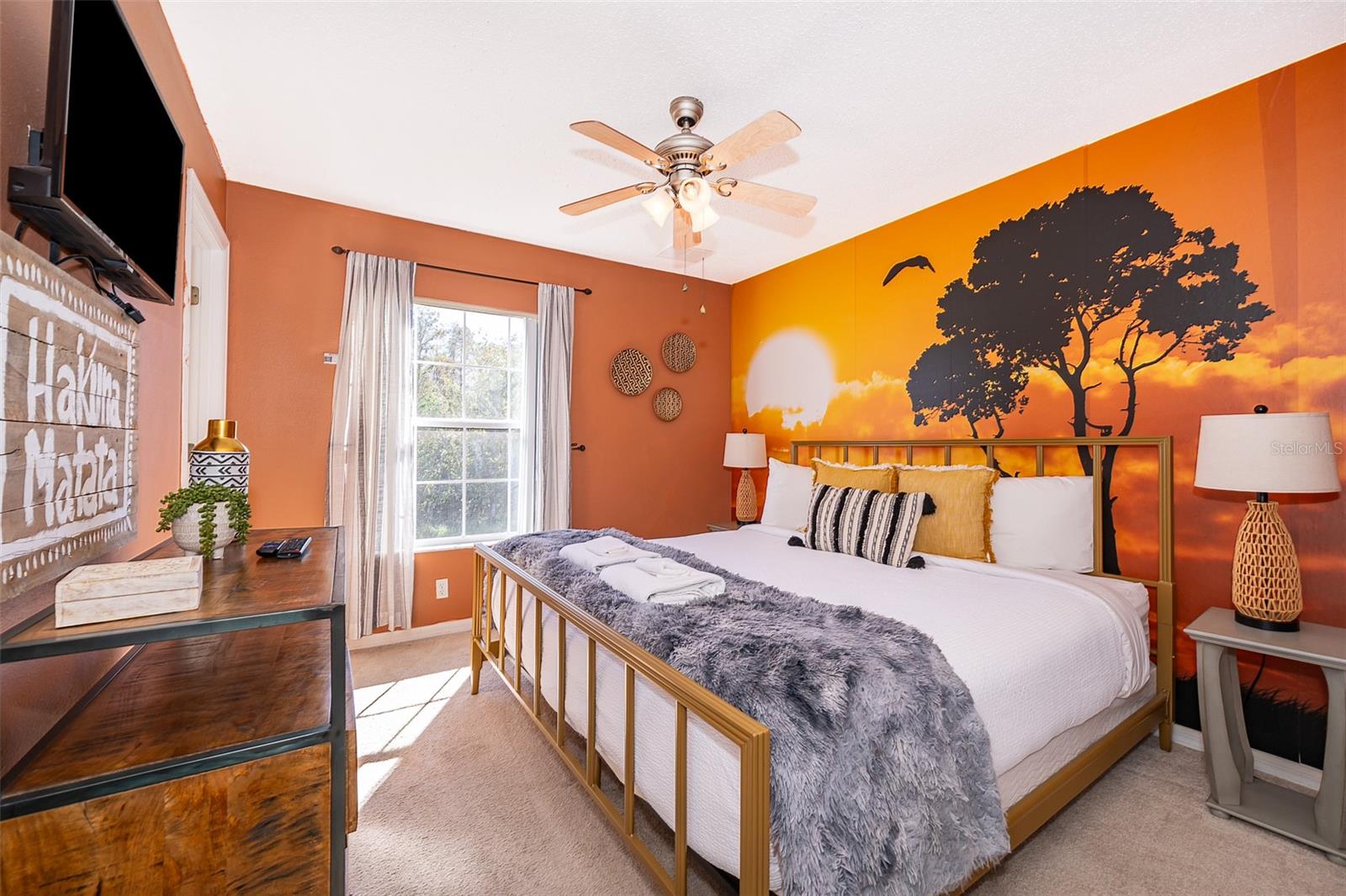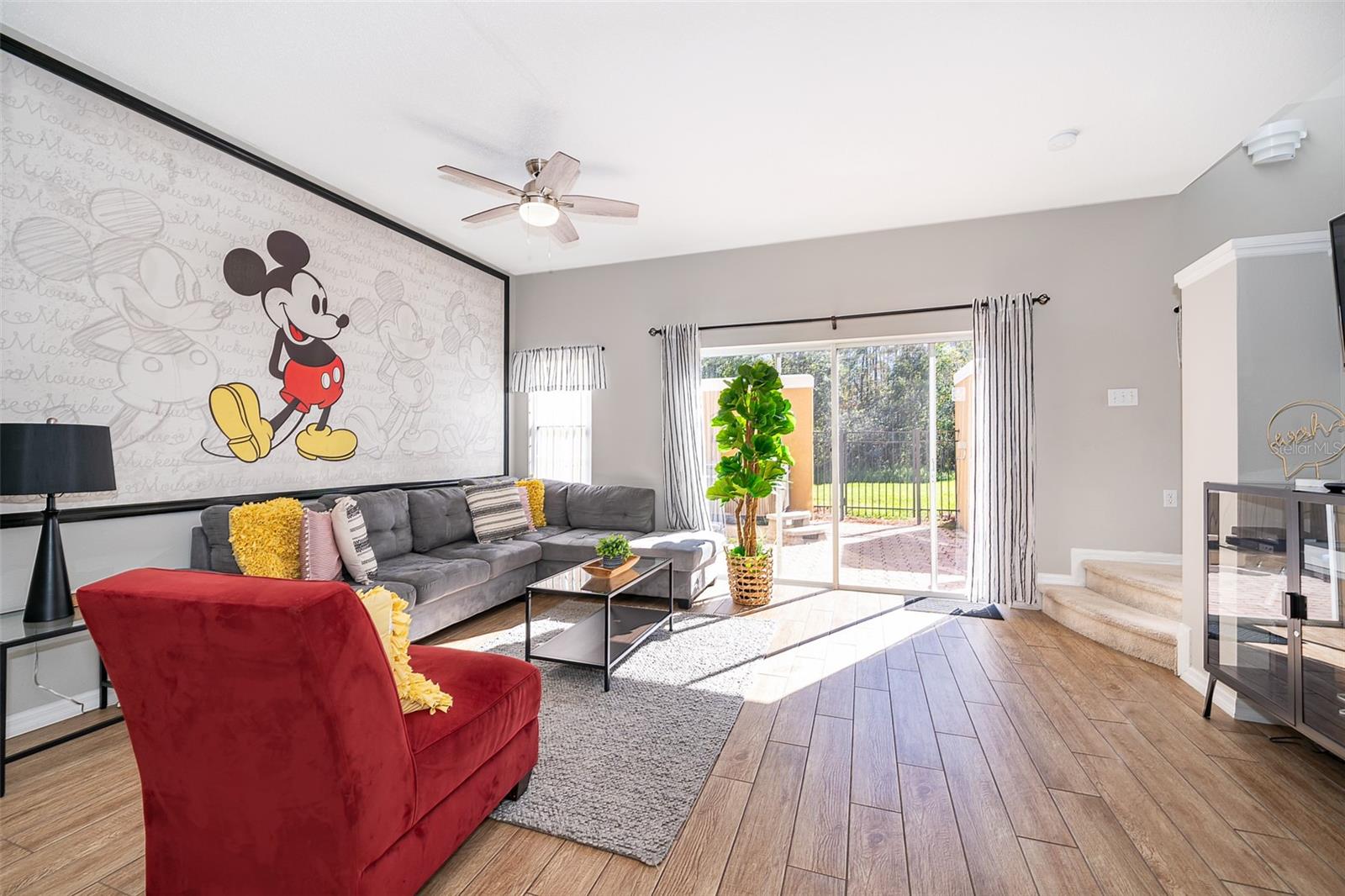 Charming 3-Bedroom, 2.5-Bathroom Townhome in Terra Verde Resort Community – Less than 10 Miles from Disney! Welcome to your dream vacation home! Nestled in the highly sought-after Terra Verde Resort community, this fully furnished, 3-bedroom, 2.5-bath townhome offers the perfect getaway. Just under 10 miles from Disney, it's an ideal location for vacationers or those seeking a second home. As you step inside, you'll find a beautifully designed space with stunning wood plank tile in the living areas and tile in the kitchen. The spacious kitchen is a chef’s delight, featuring sleek granite countertops and stainless steel appliances. The open-concept living and dining areas offer plenty of space to relax or entertain, while the convenient laundry room and half bath complete the first floor. Step outside to your private patio, where you can soak up the sun, enjoy the warm Florida weather, or unwind in your personal hot tub. Upstairs, the home boasts three creatively themed bedrooms, each with a flat-screen TV. Enjoy an out-of-this-world experience in the Star Wars-themed room, a royal escape in the Princess room, or embark on a safari in the Lion King room. Two full bathrooms serve the upstairs, providing ample space and convenience. The Terra Verde community offers an exceptional array of amenities, including a gorgeous clubhouse, tiki bar and lounge, basketball and tennis courts, sauna, mini golf, volleyball, fishing ponds, walking trails, and much more. You'll also enjoy the large community pool, movie theater, fitness center, and playground. The homeowners association covers cable & internet as well as grounds care, making life here effortless. Don't miss your chance to own this exquisite townhome in one of the most desirable resort communities around! Come see everything Terra Verde has to offer before it’s gone!