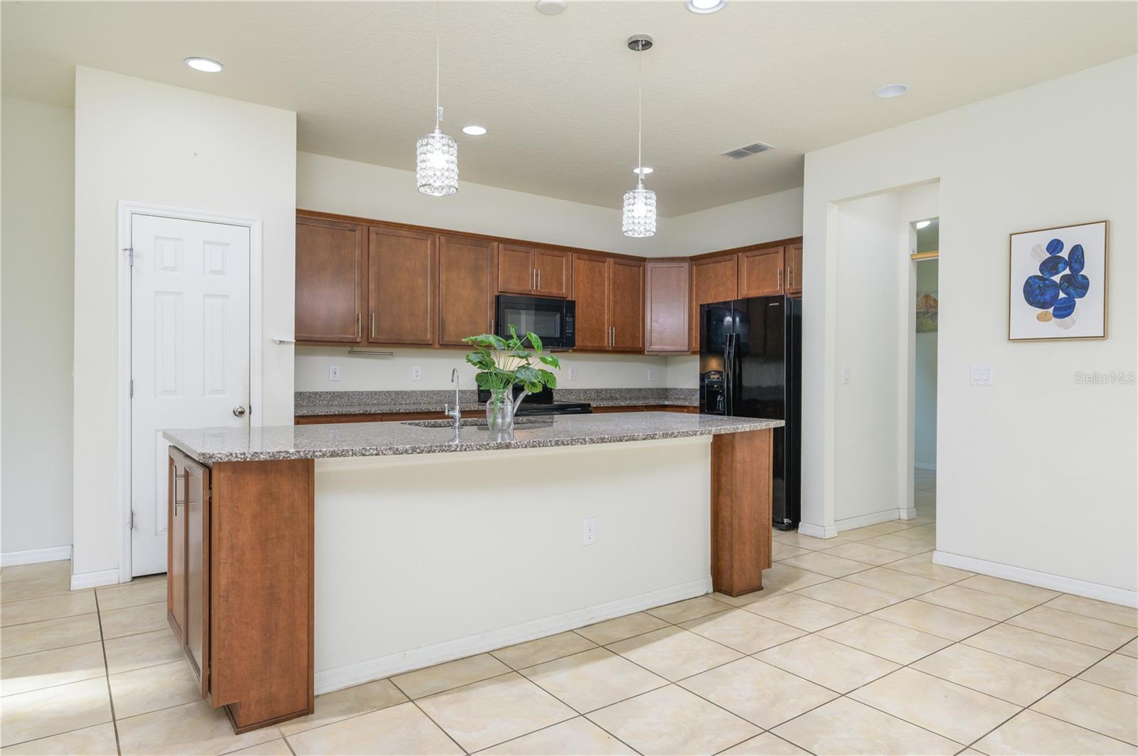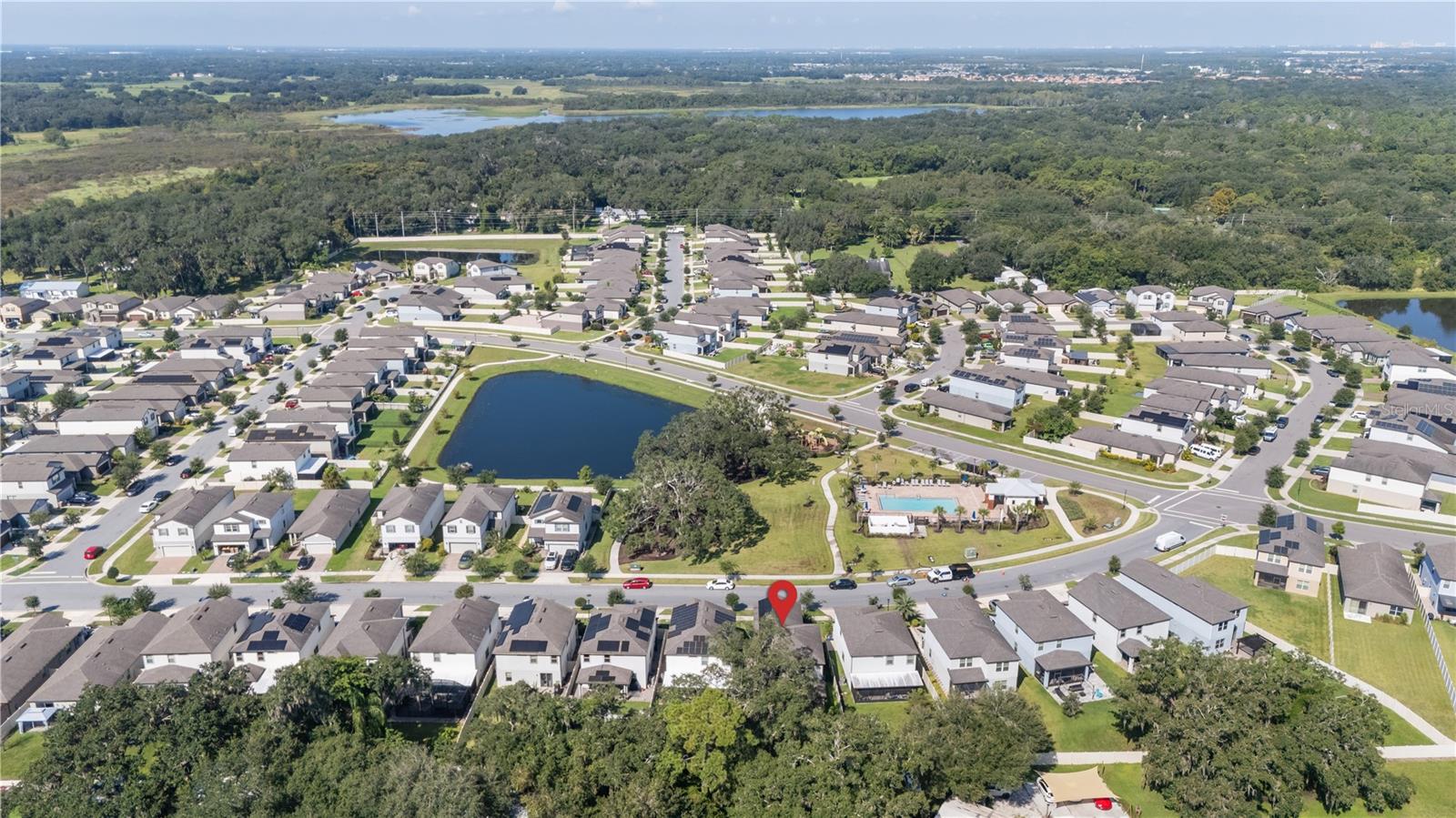 This property offers an open view with a park and community pool across the street. It has a fenced backyard with a screened patio suitable for afternoon use. The main floor is tiled throughout and includes large granite countertops and stainless steel appliances. The owner's suite is private and includes a walk-in closet, dual sinks, and a walk-in shower. A den/room located on the first floor can serve as a flex space, bonus room, media room, or be converted to another guest bedroom. Additionally, this home is close to Hwy 417, the VA Hospital in Lake Nona, and Orlando International Airport. The property is equipped with solar panels, which can contribute to savings on power bills. For more details or to schedule a showing, please contact the agent.