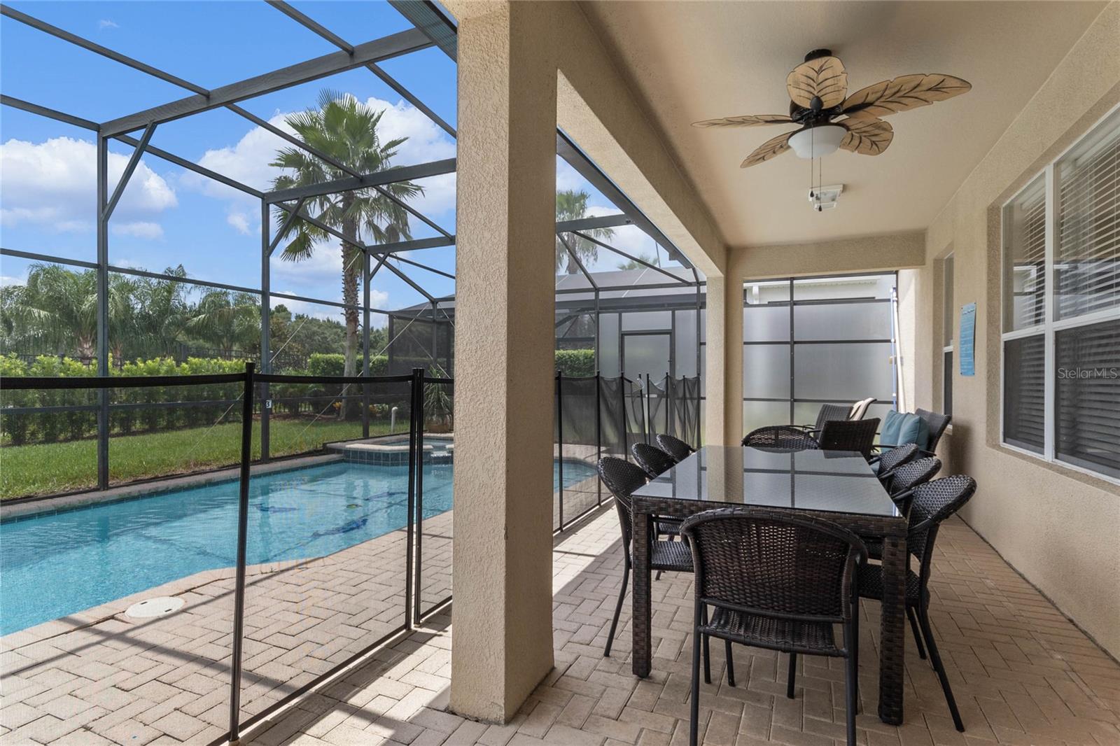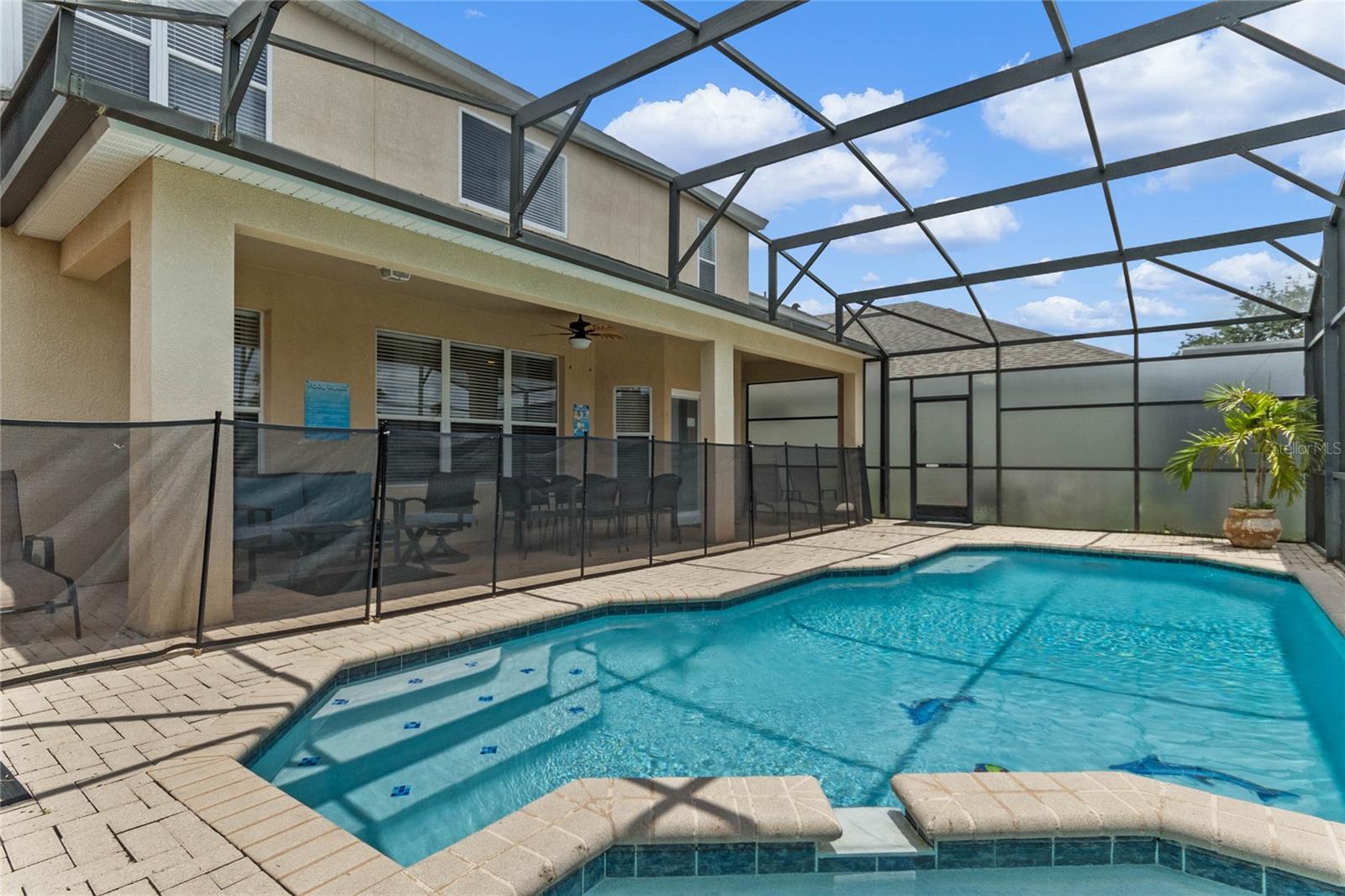 Presenting the Exquisite Windsor Estate, an embodiment of unparalleled luxury and refined living. This stunning 6-bedroom, 4-bathroom property stands as a testament to opulence at its finest. Immerse yourself in the grandeur of a large south-facing heated pool and whirlpool, encased within a screened-in sanctuary of privacy. With no rear neighbors and meticulously placed privacy screens on both sides of the pool deck, an exclusive and serene ambiance is guaranteed. The lavish estate has been thoughtfully curated, boasting a professionally decorated Game Room with its own dedicated air conditioning unit, ensuring optimal comfort for your entertainment pleasures. A main floor bedroom and a luxurious master suite, accompanied by four additional bedrooms upstairs, provide generous space for ultimate relaxation. The expansive master bathroom serves as a sanctuary of indulgence, while flat-screen televisions adorn each bedroom, the family room, and the living room, enhancing the ambiance of innovative entertainment. This magnificent property is offered fully furnished, presenting an exceptional investment opportunity as a luxurious Airbnb, ready to welcome discerning vacationers. With a new roof installed in April 2019 and a history of meticulous owner use, this residence showcases impeccable maintenance and is in impeccable condition. Additional upsides include brand new AC units ($15k each) and a pool pump replaced only three years ago. The widened driveway, mature landscaping, and no rear neighbors, coupled with the allure of a south-facing pool, add to the property's allure. Nestled within the distinguished Windsor community, residents enjoy access to a wealth of resort-style amenities, including a large pool, exhilarating slide, rejuvenating whirlpool, well-equipped gym, tennis courts, volleyball, putting green, barbecue area, movie room, and a convenient sundry shop. The community's guarded gate ensures utmost safety and security, creating an environment of tranquility and peace of mind. Embrace a truly extraordinary atmosphere and elevate your lifestyle to unparalleled heights at the Exquisite Windsor Estate.