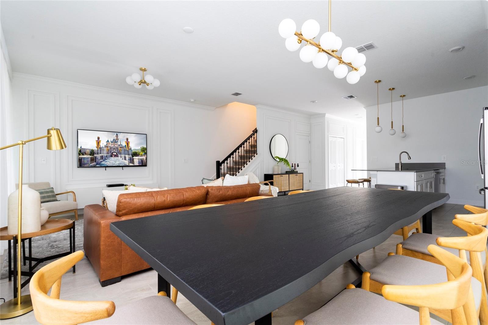 Luxury 5 bedroom 4 bathrooms property with heated pool. This Stunning townhouse is available in one of the most desirable short-term rental communities resort in Orlando! This income producing vacation home is professionally decorated with high-end furniture. The kitchen is fully equipped with stainless steel appliances. Covered patio area and a heated pool, where the deck offers plenty of room to relax or do a BBQ. The Clubhouse offers a resort style pool and lazy river, two water slides and a huge splash park. Kayak rentals are available. Mini Golf and sand volleyball courts, fitness center and Tiki Bar. This amazing vacation/investment home is being sold fully furnished with future bookings that can convey with the sale. This home is located in a gated and guarded community minutes from Theme Parks, supermarkets, shopping malls, outlets, restaurants, and much more.