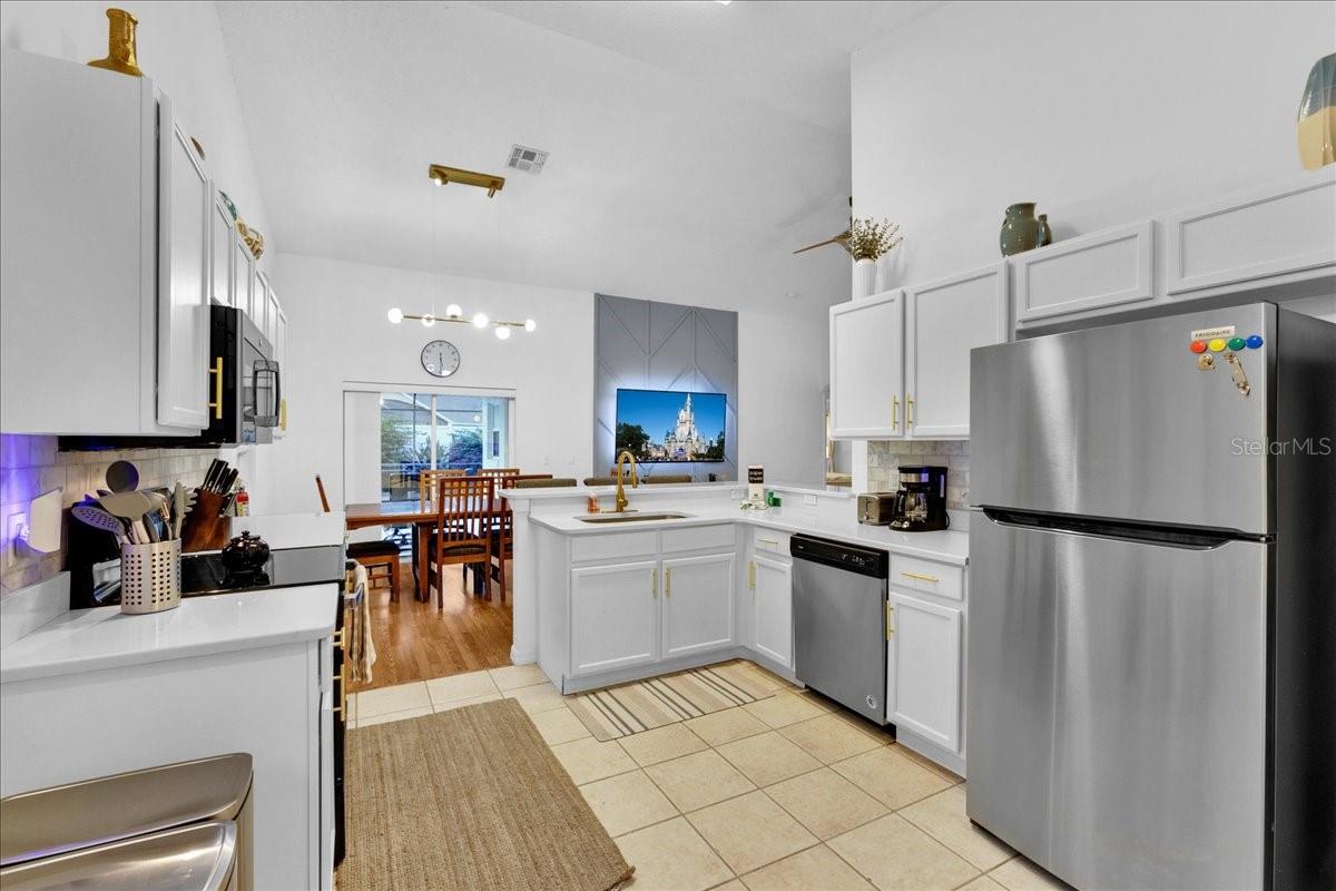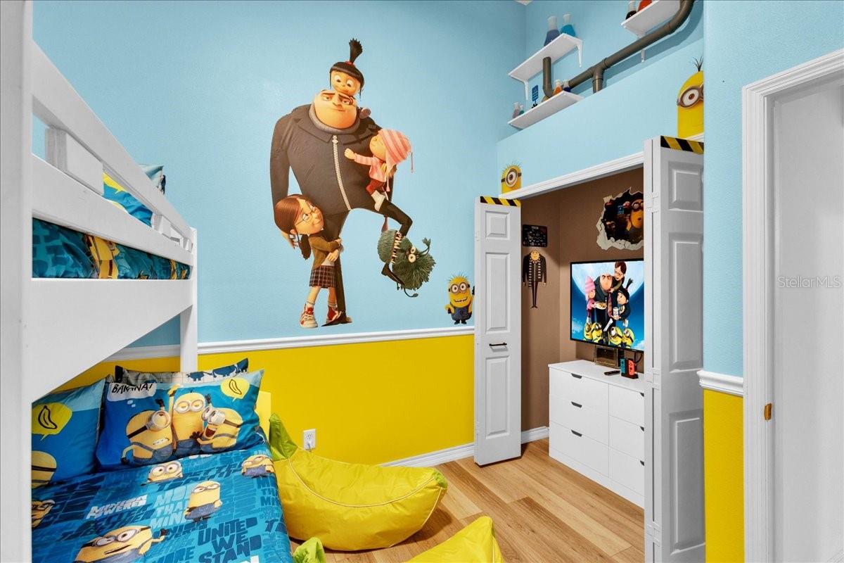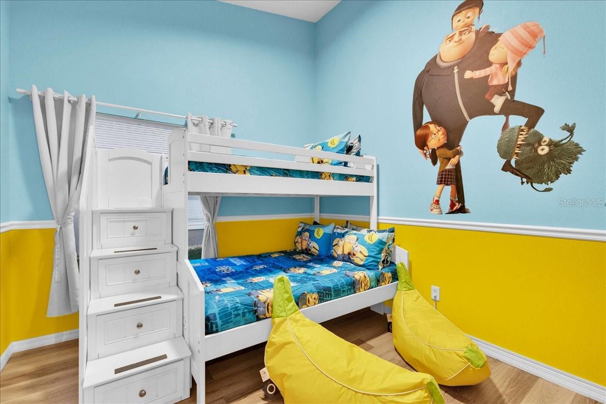 TOP-PRODUCING TURNKEY VACATION RENTAL less than 9 miles from Disney World! This Top 95/100 Airbnb has a 4.97-star rating with Super Host and “Guest Favorite” status. $43,000 in bookings in 2024 with only over 26 weeks occupancy (opportunity for DOUBLE income). This fully furnished, turnkey retreat blends comfort with entertainment seamlessly. Tall ceilings, private heated saltwater pool, large eat-in kitchen with quartz counters that leads to the family room with spacious seating. 4 bedrooms, 2 bathrooms. 2 Themed bedrooms (Star Wars and Minions) with connecting Nintendo Switch gaming stations. Master bedroom has ensuite bath that walks out to pool. Multiple bookings already secured into 2025. Recently renovated in 2024 with FULL roof replacement, new HVAC, new hot water heater, updated appliances, refinished cabinets, freshly painted bedrooms/bathrooms, updated bedroom flooring, and updated fixtures. TURNKEY property has camera security, smart locks, wifi thermostat, landscapers, pool maintenance, and cleaning service already in place. Close to Margaritaville, dozens of golf courses, great food, and all Disney parks! Universal Studios and other theme parks nearby. Price includes all furnishings, kitchen items, and linens.