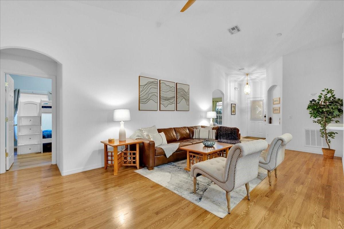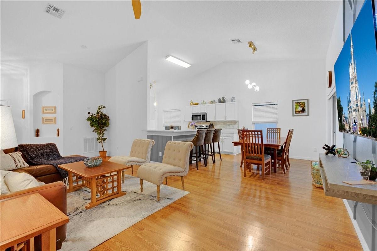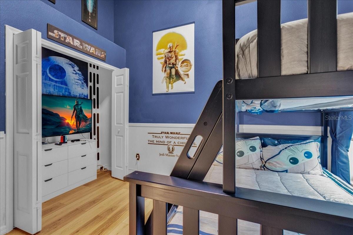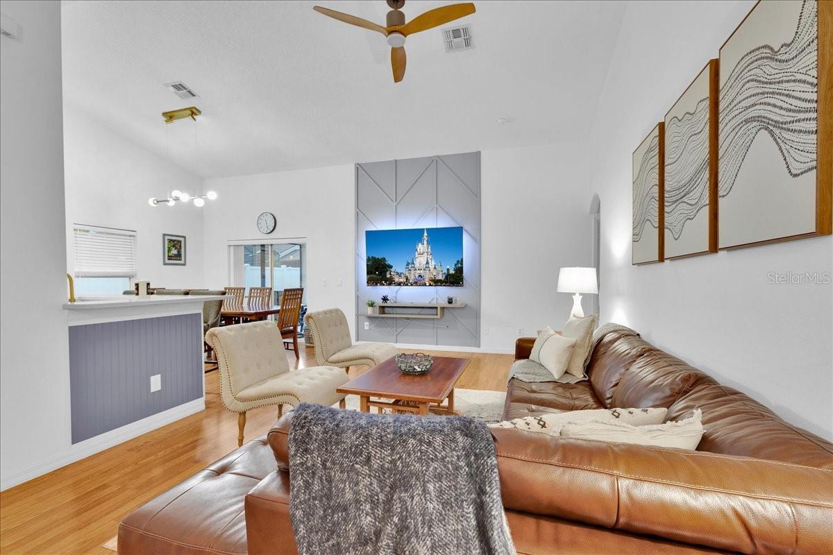 TOP-PRODUCING TURNKEY VACATION RENTAL less than 9 miles from Disney World! This Top 95/100 Airbnb has a 4.97-star rating with Super Host and “Guest Favorite” status. $43,000 in bookings in 2024 with only over 26 weeks occupancy (opportunity for DOUBLE income). This fully furnished, turnkey retreat blends comfort with entertainment seamlessly. Tall ceilings, private heated saltwater pool, large eat-in kitchen with quartz counters that leads to the family room with spacious seating. 4 bedrooms, 2 bathrooms. 2 Themed bedrooms (Star Wars and Minions) with connecting Nintendo Switch gaming stations. Master bedroom has ensuite bath that walks out to pool. Multiple bookings already secured into 2025. Recently renovated in 2024 with FULL roof replacement, new HVAC, new hot water heater, updated appliances, refinished cabinets, freshly painted bedrooms/bathrooms, updated bedroom flooring, and updated fixtures. TURNKEY property has camera security, smart locks, wifi thermostat, landscapers, pool maintenance, and cleaning service already in place. Close to Margaritaville, dozens of golf courses, great food, and all Disney parks! Universal Studios and other theme parks nearby. Price includes all furnishings, kitchen items, and linens.