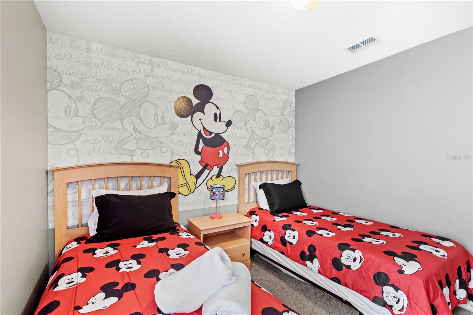 Welcome to 2220 Wyndham Palms, a stunning turnkey, fully furnished vacation home or investment property located in the highly sought-after, gated community of Windsor Palms. This successful rental comes with established bookings, making it the perfect choice for a seamless transition. Just minutes from Disney, this home offers unrivaled proximity to the parks, making it an ideal choice for guests seeking the ultimate Disney experience. The community itself boasts top-tier amenities, including a resort-style pool with a tiki bar, a clubhouse, fitness center, cinema, arcade, tennis courts, and more—ensuring both you and your guests will enjoy the best in entertainment and relaxation. As you approach your new home, the lush landscaping and immaculately maintained lawns will immediately catch your eye—beautifully taken care of and included in your HOA payment. Upon entering, you’ll be delighted by the thoughtful layout and impeccable upkeep of this home. The kitchen has been upgraded with stainless steel appliances, a cozy breakfast nook, a large pantry, and comes fully stocked with all the cooking ware and smaller appliances you’ll need. As you move into the family room, you’ll appreciate the spacious, open-concept design, complete with a dining area and living space, all upgraded with brand new furnishings that blend comfort and style. The primary suite offers a relaxing retreat, featuring new furnishings, a new mattress, a TV, and more. The ensuite bathroom is generously sized and features double sinks, a vanity, a walk-in shower, and a large walk-in closet. The split floorplan offers perfect privacy and functionality for all guests. Across the home, you’ll find three additional themed bedrooms, each thoughtfully designed to deliver an unforgettable vacation experience. Bedroom two, the Mickey room, is a magical space with two twin beds, new mattresses, a dresser, TV, and Mickey-themed linens. Bedroom three is a whimsical Princess room, complete with two twin beds, new mattresses, and enchanting décor. Bedroom four is a beautifully decorated queen bedroom, also featuring new linens, a new mattress, and stylish décor. A second full bathroom ensures convenience for all guests, and ample storage throughout the home adds to its functionality. Step out into the heart of the home—the Pool and Spa patio. This outdoor space is perfect for relaxation and entertainment, featuring a large pool, new water heater and pool system, and a spa for ultimate enjoyment. The expansive pool deck is fitted with new patio furnishings, a baby gate for safety, and surrounded by beautiful hedges and landscaping for maximum privacy. Additionally, the converted garage offers the ultimate game room, with a pool table, foosball, and plenty of entertainment for all ages. This home has been meticulously maintained and is in move-in-ready condition. Recent updates to the roof, HVAC, and water heater offer peace of mind for years to come. Whether you're looking for the perfect vacation home or a lucrative investment property, 2220 Wyndham Palms is truly a dream come true. Don’t miss out on this incredible opportunity—schedule your showing today!