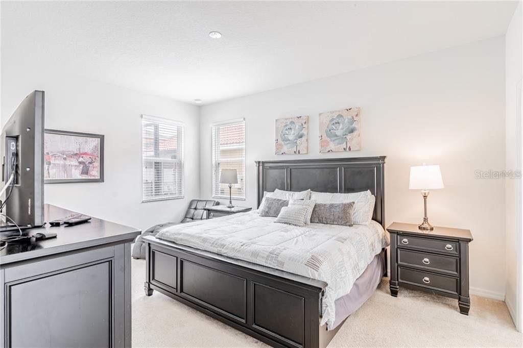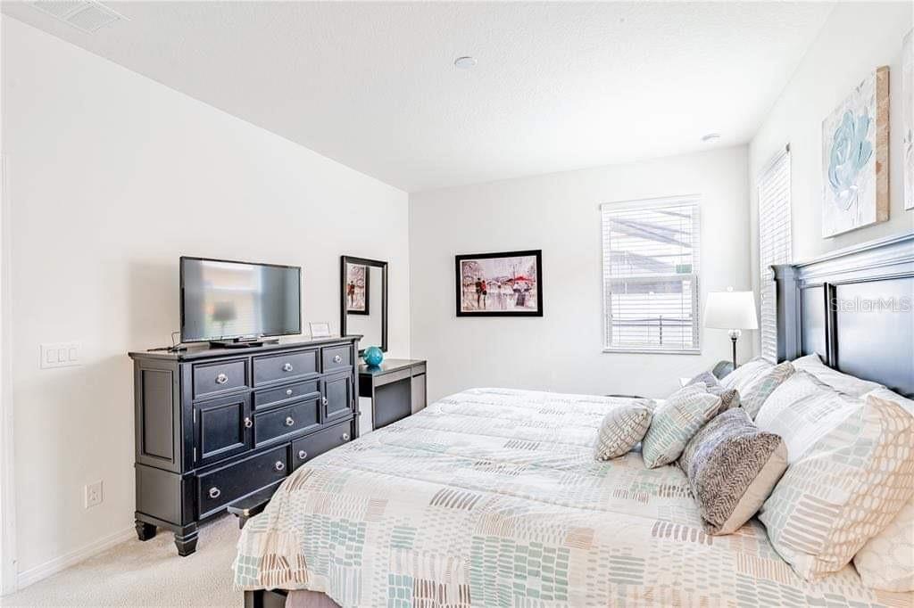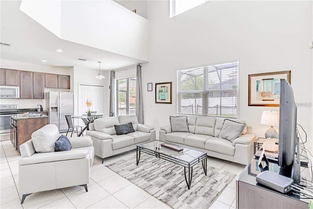 This beautifully FULL FURNISHED 6-bedroom, 5-bath pool home is located in the highly desirable gated community of Veranda Palms, just 10 minutes from Disney! With 2,874 sq ft of living space, this spacious two-story property offers an open layout perfect for families or vacation guests. The downstairs primary suite features a walk-in closet and en-suite bath, while the modern kitchen includes stainless steel appliances, pantry, and plenty of counter space. Enjoy multiple living areas, a private screened- in heated pool, and room for everyone to relax. Zoned in for short-terms rentals and packed with resort style amenities like a clubhouse, gym, this property makes an excellent opportunity for investors or a dream vacation getaway. No CDD fees and close to shopping, dining and major highways, this property is move-in ready and checks all the boxes. SCHEDULE YOUR TOUR NOW!!