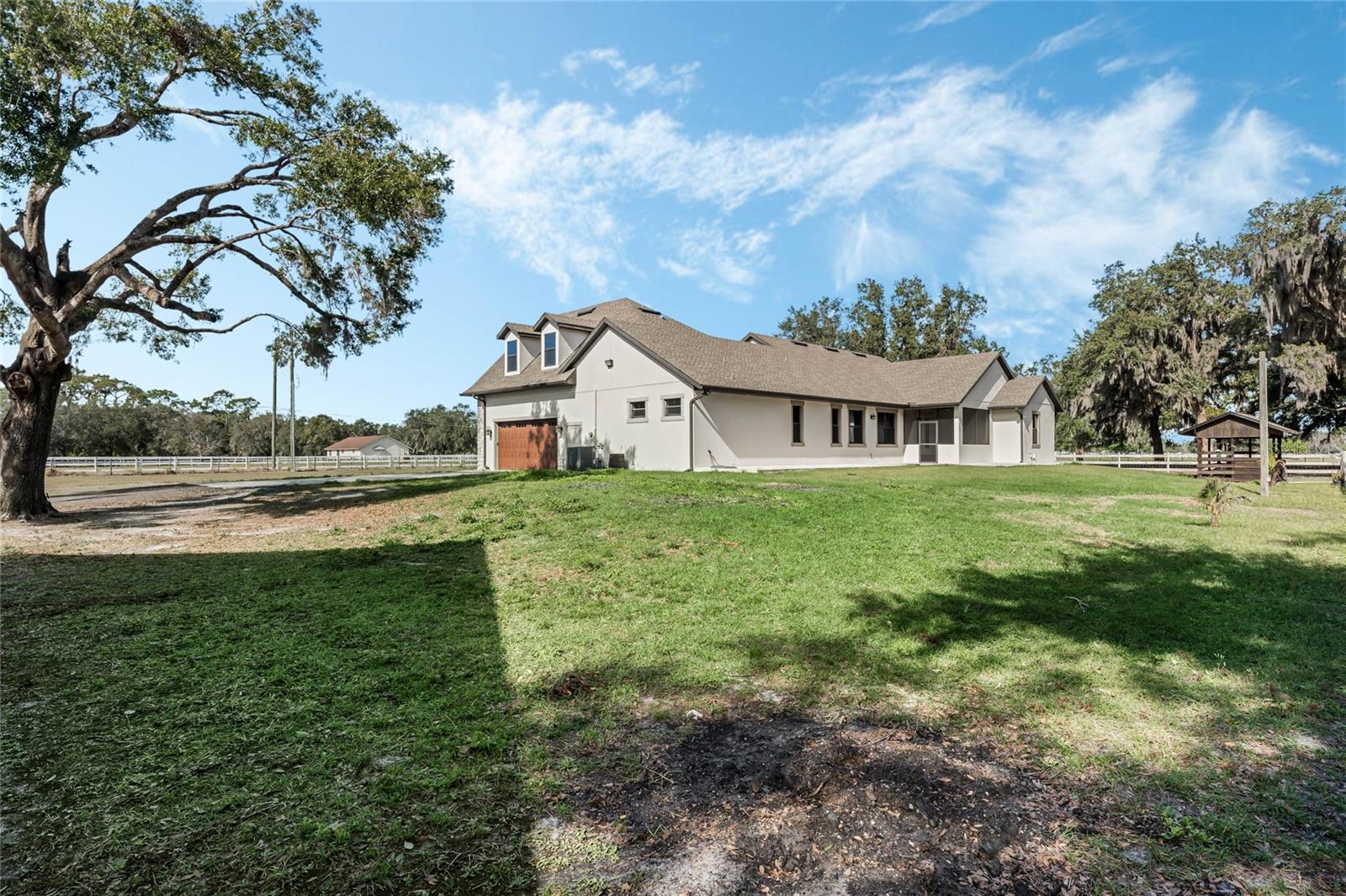***MOTIVATE SELLER***** Welcome to your dream estate! Set on 5 breathtaking acres, this extraordinary property perfectly combines modern exterior design with the charm and serenity of farm living, all while being just minutes away from major highways, popular restaurants, and Florida’s world-famous theme parks. This unique home features 4 spacious bedrooms and 4 bathrooms, showcasing a one-of-a-kind style that truly sets it apart. The exterior boasts sleek, modern architecture, while the land is ideal for raising cattle, caring for horses, or creating your own farm sanctuary. With dedicated spaces for animals and plenty of room to roam, this property is a haven for anyone seeking a true rural lifestyle. Located in an exclusive area reserved for residents of neighboring estates, the property offers a peaceful and private environment. Experience the freedom of farm life without sacrificing the conveniences of nearby urban amenities. Don’t miss this rare opportunity to own a luxurious property where your farm-life dreams can come true. Schedule your private showing today and make this exceptional estate your forever home!