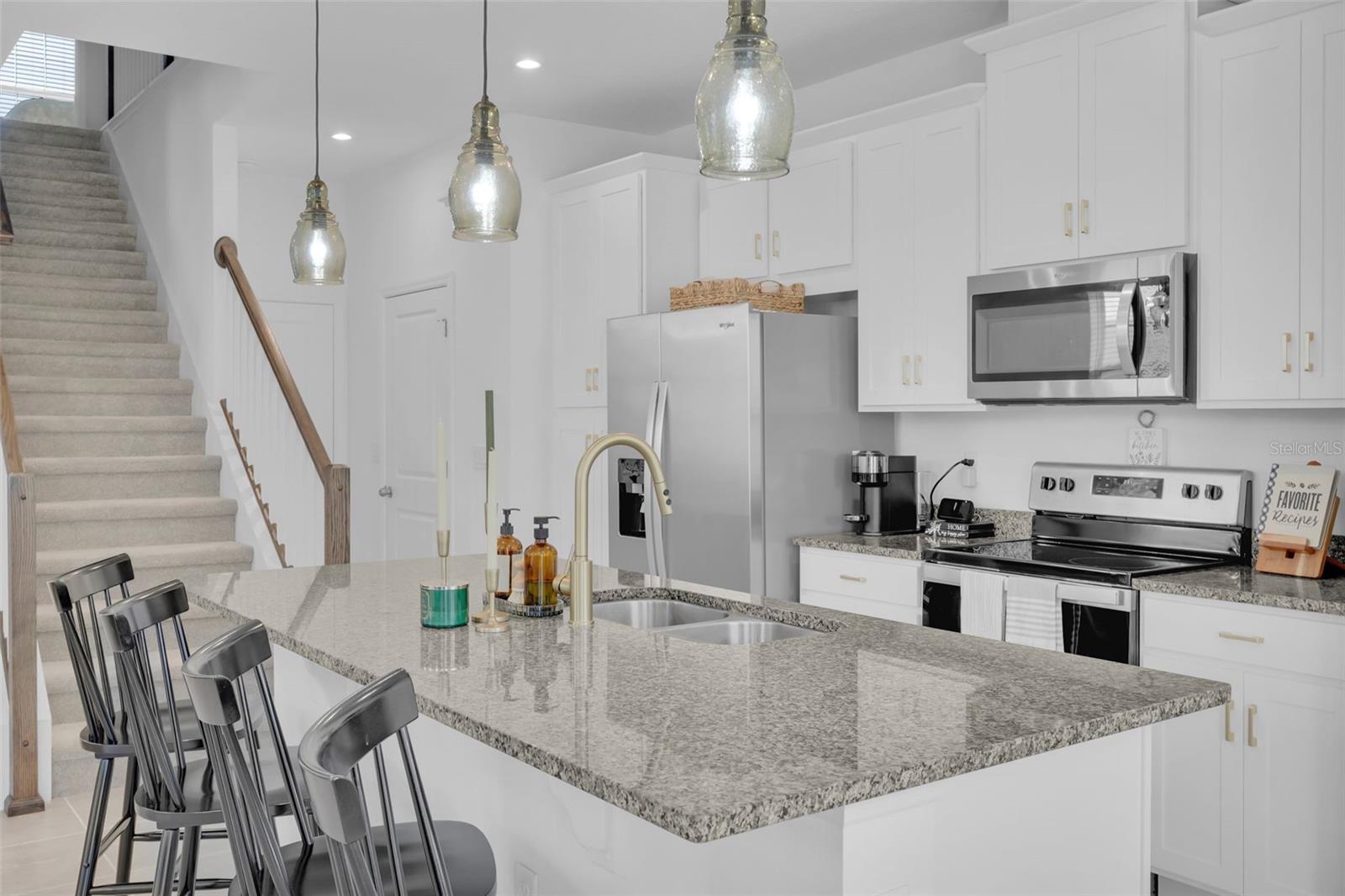 Short Sale. Welcome to your new home! This beautiful end-unit townhome with an open floor plan will captivate you from the moment you step inside. The spacious Great Room is perfect for relaxing or entertaining guests, while the gourmet kitchen with breakfast bar and dining area create an ideal space for daily living and social gatherings. Head upstairs to the luxurious owner's suite, featuring two large walk-in closets and a dual vanity, offering a serene private retreat. Bedrooms 2 and 3 are equally cozy, with Bedroom 2 featuring its own walk-in closet for added convenience! This home is in pristine condition, nearly brand new, with a spacious 2-car garage and ample driveway space for 2 additional cars, offering both comfort and practicality. Located in the highly sought-after Four Corners area, just minutes from world-famous theme parks, shopping, dining, and entertainment, this home combines style, comfort, and a prime location. Don't miss out on the opportunity to live in your dream home! Schedule your private tour today.
