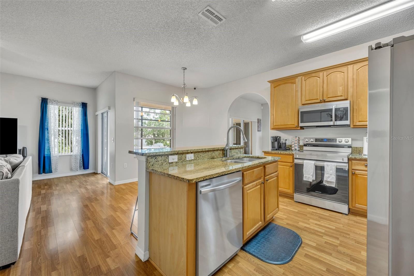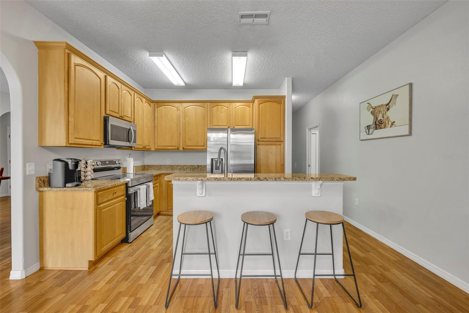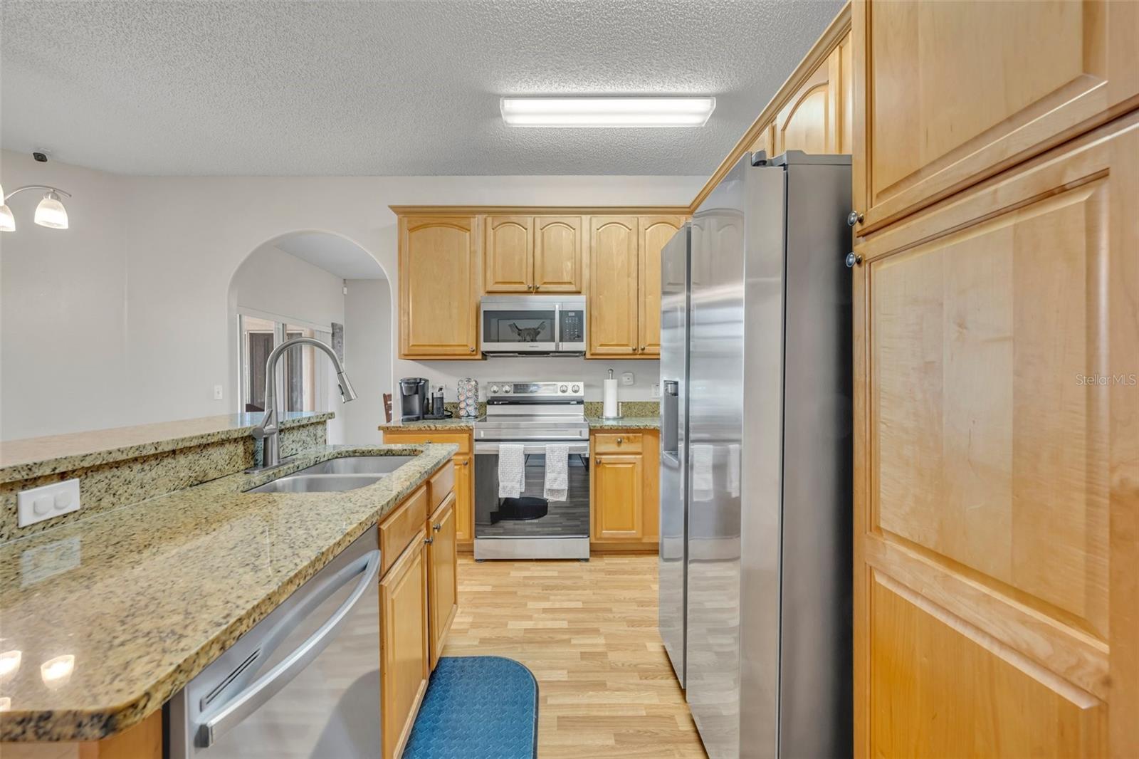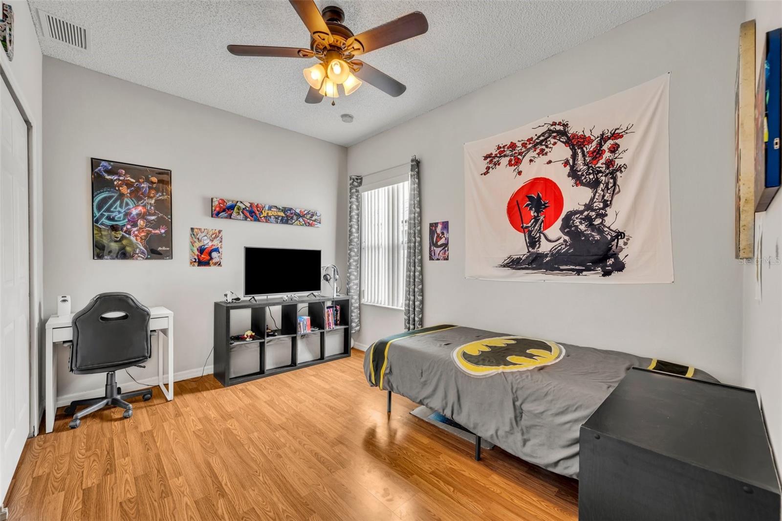 Welcome to this stunning 4-bedroom, 3-bath home with over 2,300 square feet of living space, offering a unique layout designed for privacy and comfort. As you approach, you'll be greeted by a paved driveway and lush palm trees, giving the property a vacation-like feel. Step inside and immediately notice the open design, complemented by light wood flooring that enhances the natural brightness of the space. To the right, a private hallway leads to two bedrooms with their own full bathroom, perfect for an in-law suite or a private retreat. On the opposite side, the spacious primary suite awaits, complete with its own luxurious bath. The formal dining area flows seamlessly into the kitchen, which features space for a dinette or casual seating at the counter. From the kitchen, you’ll enjoy a clear view of the expansive family room, ideal for hosting or relaxing. The fourth bedroom is thoughtfully located on the other side of the home, along with the third full bathroom, ensuring privacy and functionality. Step outside to the screened-in patio, accessible through three sliding doors, and discover the large backyard. Filled with mature, fruit-bearing trees, it’s a paradise for those who enjoy gardening or outdoor living. The open yard offers plenty of space to bring your creative visions to life. This home’s distinctive floor-plan is truly one-of-a-kind and provides a perfect blend of comfort, functionality, and charm. Schedule your showing today and experience it for yourself!
