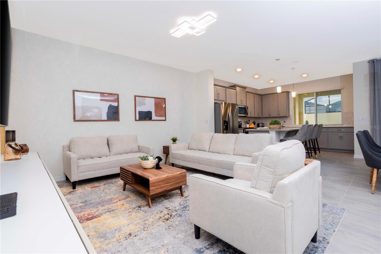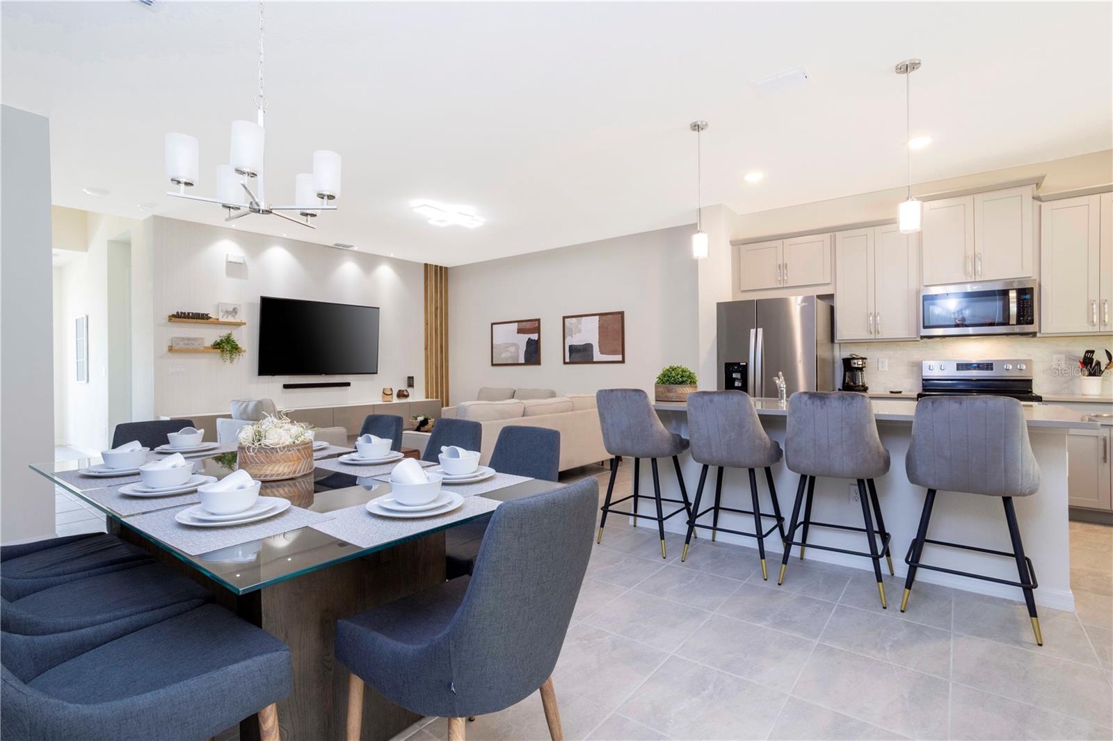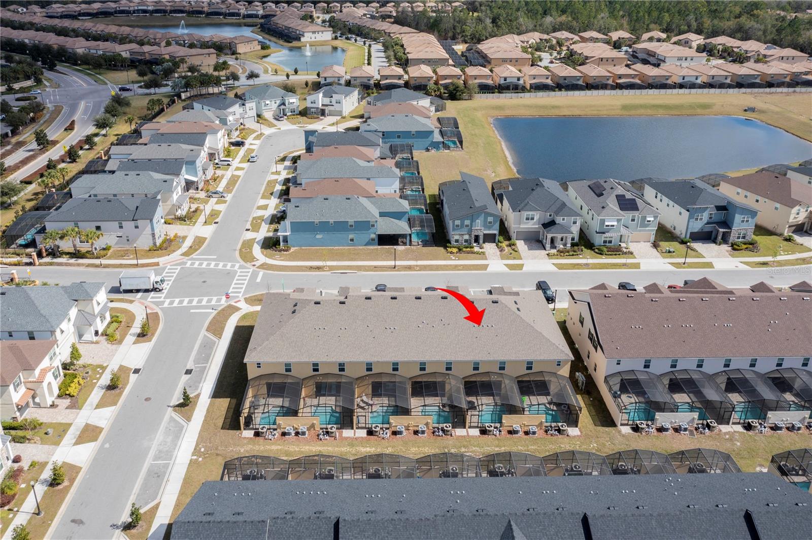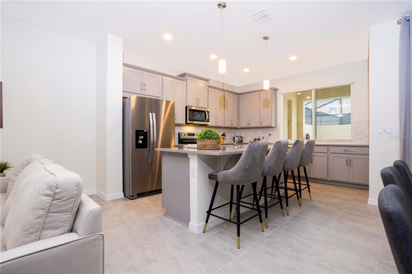 Be captivated by this stunning 4-bedroom, 4.5-bathroom townhouse located in the heart of the Solara Resort! Built in 2021, this modern masterpiece is fully furnished and blends elegance with a welcoming open-concept layout. The state-of-the-art kitchen, equipped with top-tier appliances, seamlessly connects to the dining and living areas, creating the perfect space for hosting family and friends. Sliding glass doors open to your private outdoor retreat, featuring a cozy covered lanai, a charming screened-in pool for sunny days, and a convenient cabana bath. The primary suite is conveniently located on the ground floor and boasts a spacious bathroom with double vanities and a large walk-in shower. Upstairs, a versatile loft offers the perfect space for entertainment or relaxation. You’ll also find three additional bedrooms and three full bathrooms, including a secondary master suite with a private bath, ideal for accommodating guests. Two of the bedrooms feature fun, themed designs, adding a playful touch that’s perfect for creating lasting memories. The resort lifestyle at Solara is unparalleled, with world-class amenities. Enjoy a resort-style pool, a wave simulator, a fully equipped fitness center, and sports courts, including basketball, volleyball, and a full-size soccer field. Ideally situated near major theme parks, restaurants, and grocery stores, this home is perfect as a magical vacation getaway or as a lucrative short-term rental investment. It’s an opportunity that combines comfort, fun, and convenience all in one!