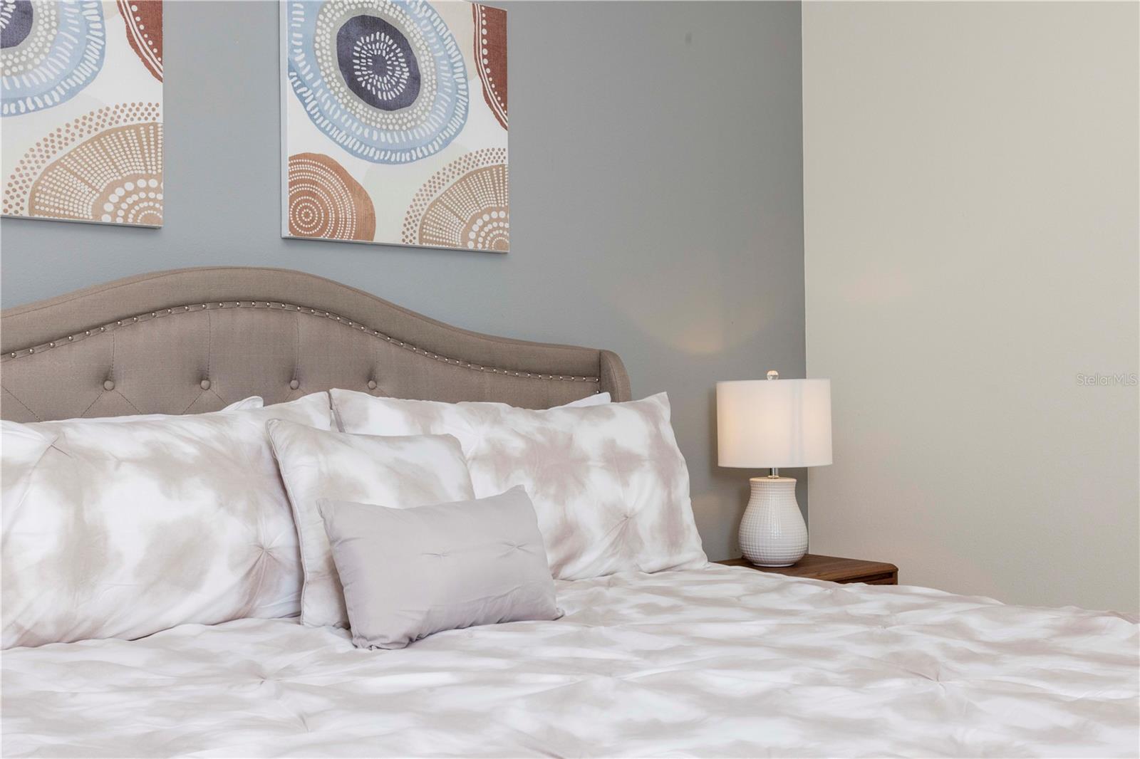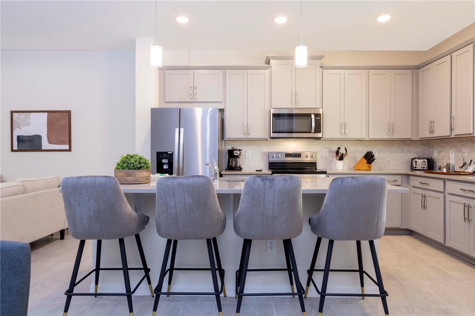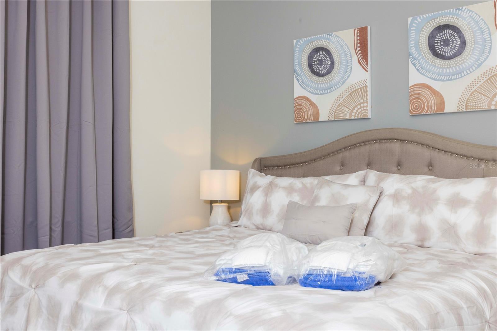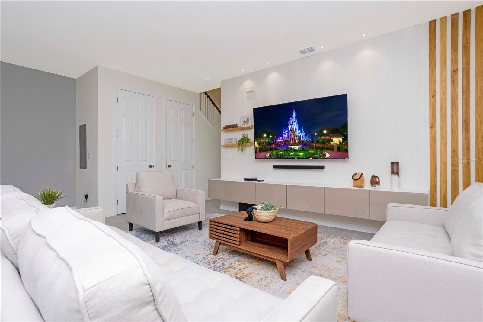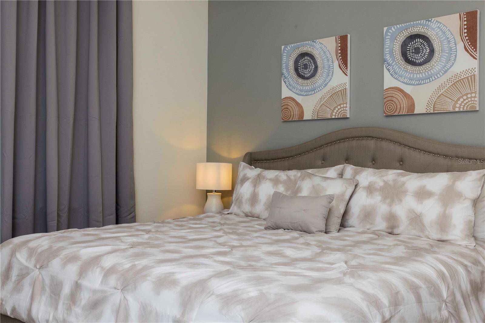 Be captivated by this stunning 4-bedroom, 4.5-bathroom townhouse located in the heart of the Solara Resort! Built in 2021, this modern masterpiece is fully furnished and blends elegance with a welcoming open-concept layout. The state-of-the-art kitchen, equipped with top-tier appliances, seamlessly connects to the dining and living areas, creating the perfect space for hosting family and friends. Sliding glass doors open to your private outdoor retreat, featuring a cozy covered lanai, a charming screened-in pool for sunny days, and a convenient cabana bath. The primary suite is conveniently located on the ground floor and boasts a spacious bathroom with double vanities and a large walk-in shower. Upstairs, a versatile loft offers the perfect space for entertainment or relaxation. You’ll also find three additional bedrooms and three full bathrooms, including a secondary master suite with a private bath, ideal for accommodating guests. Two of the bedrooms feature fun, themed designs, adding a playful touch that’s perfect for creating lasting memories. The resort lifestyle at Solara is unparalleled, with world-class amenities. Enjoy a resort-style pool, a wave simulator, a fully equipped fitness center, and sports courts, including basketball, volleyball, and a full-size soccer field. Ideally situated near major theme parks, restaurants, and grocery stores, this home is perfect as a magical vacation getaway or as a lucrative short-term rental investment. It’s an opportunity that combines comfort, fun, and convenience all in one!