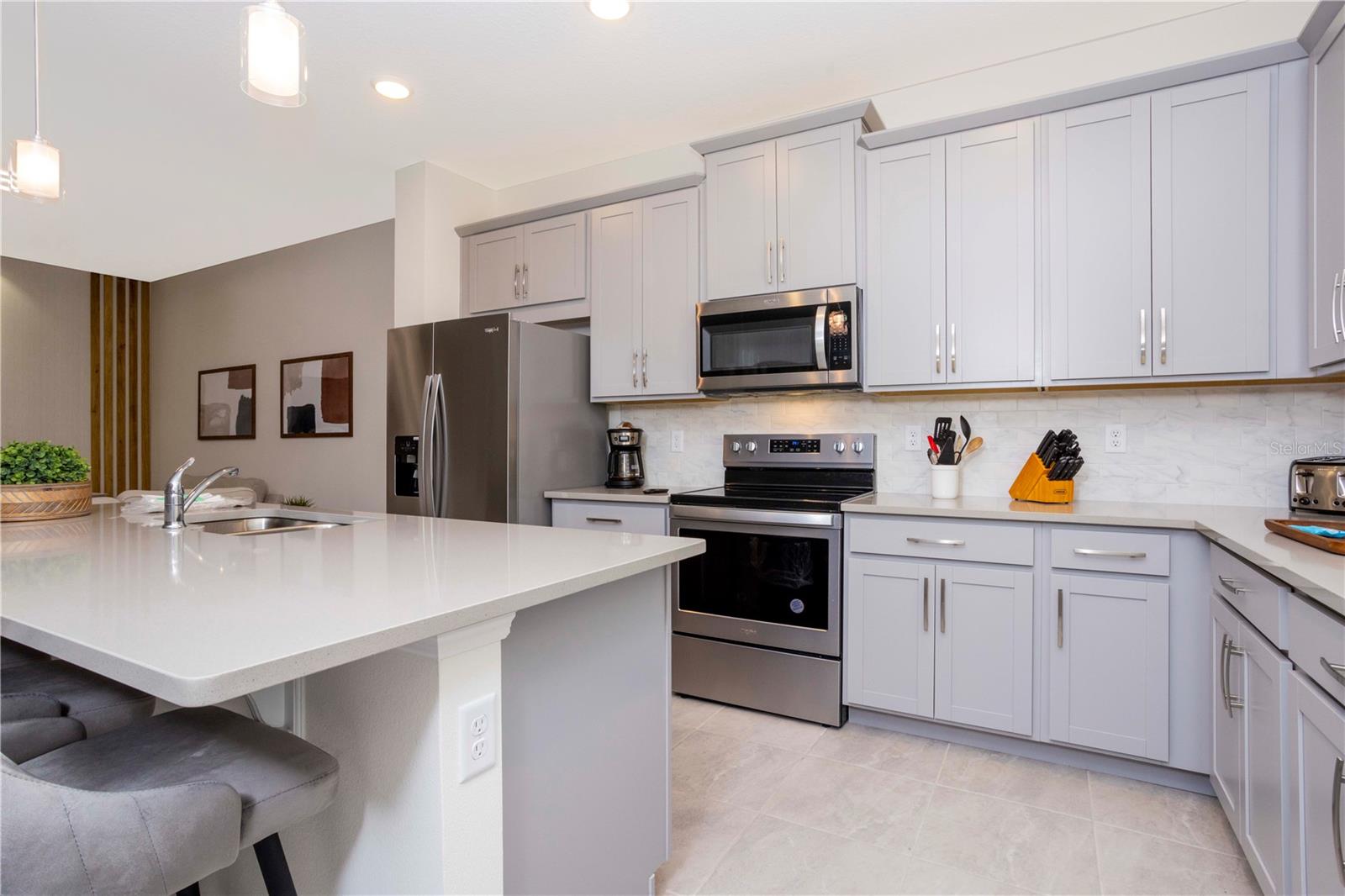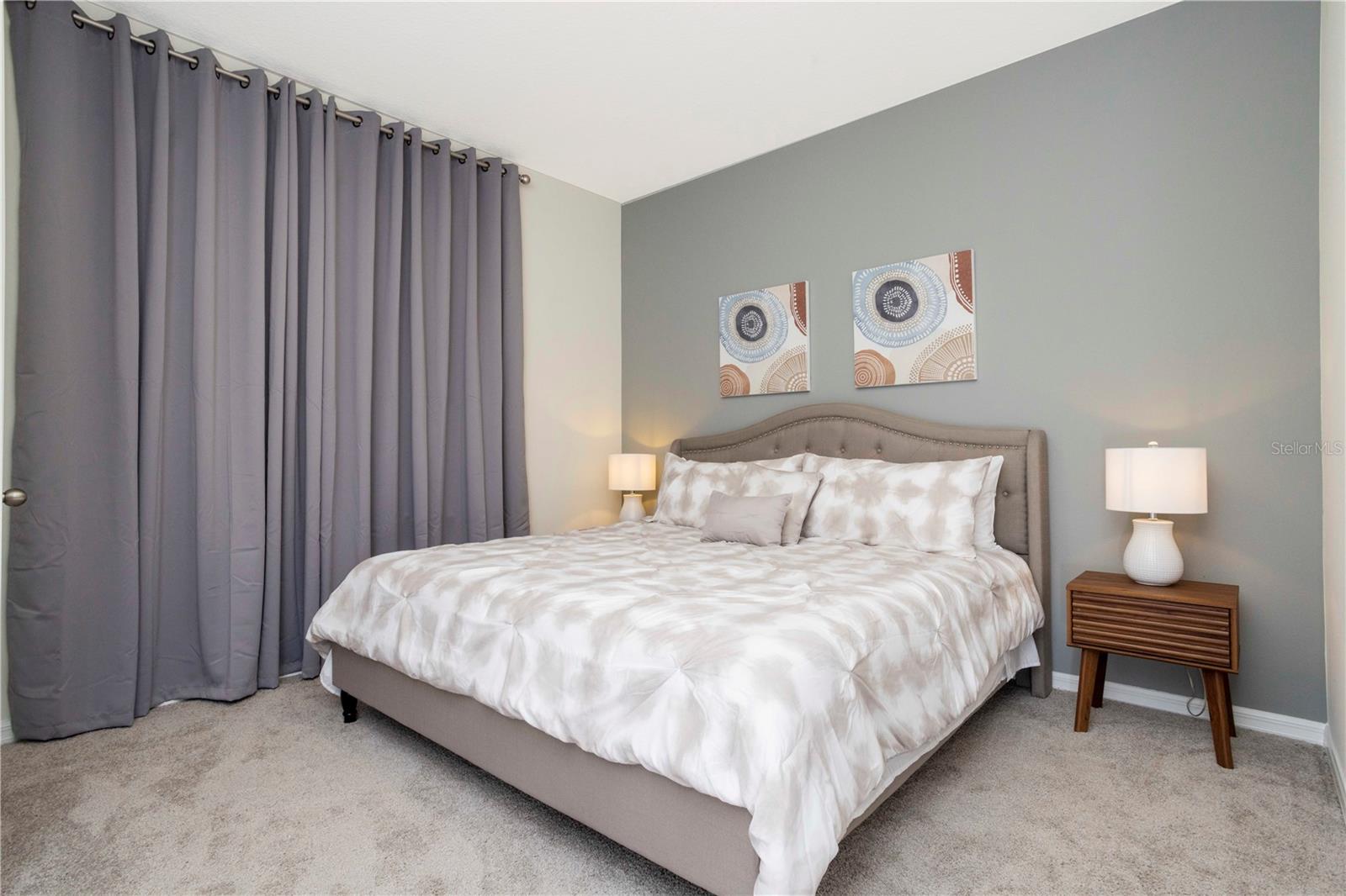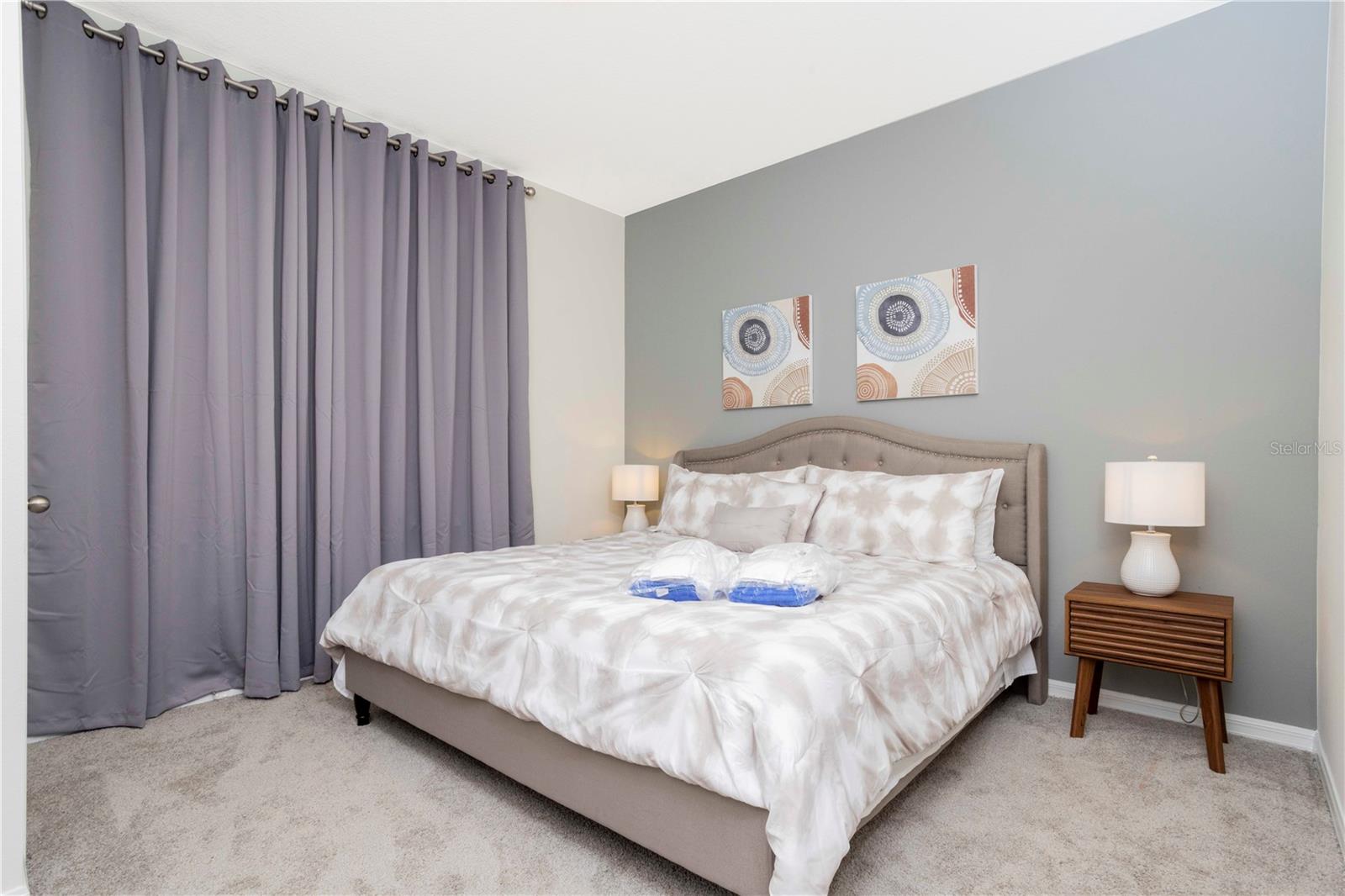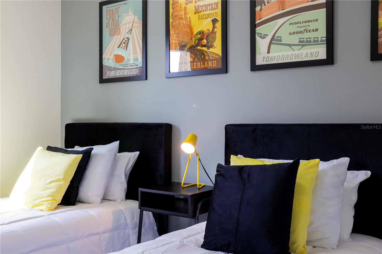 Be captivated by this stunning 4-bedroom, 4.5-bathroom townhouse located in the heart of the Solara Resort! Built in 2021, this modern masterpiece is fully furnished and blends elegance with a welcoming open-concept layout. The state-of-the-art kitchen, equipped with top-tier appliances, seamlessly connects to the dining and living areas, creating the perfect space for hosting family and friends. Sliding glass doors open to your private outdoor retreat, featuring a cozy covered lanai, a charming screened-in pool for sunny days, and a convenient cabana bath. The primary suite is conveniently located on the ground floor and boasts a spacious bathroom with double vanities and a large walk-in shower. Upstairs, a versatile loft offers the perfect space for entertainment or relaxation. You’ll also find three additional bedrooms and three full bathrooms, including a secondary master suite with a private bath, ideal for accommodating guests. Two of the bedrooms feature fun, themed designs, adding a playful touch that’s perfect for creating lasting memories. The resort lifestyle at Solara is unparalleled, with world-class amenities. Enjoy a resort-style pool, a wave simulator, a fully equipped fitness center, and sports courts, including basketball, volleyball, and a full-size soccer field. Ideally situated near major theme parks, restaurants, and grocery stores, this home is perfect as a magical vacation getaway or as a lucrative short-term rental investment. It’s an opportunity that combines comfort, fun, and convenience all in one!