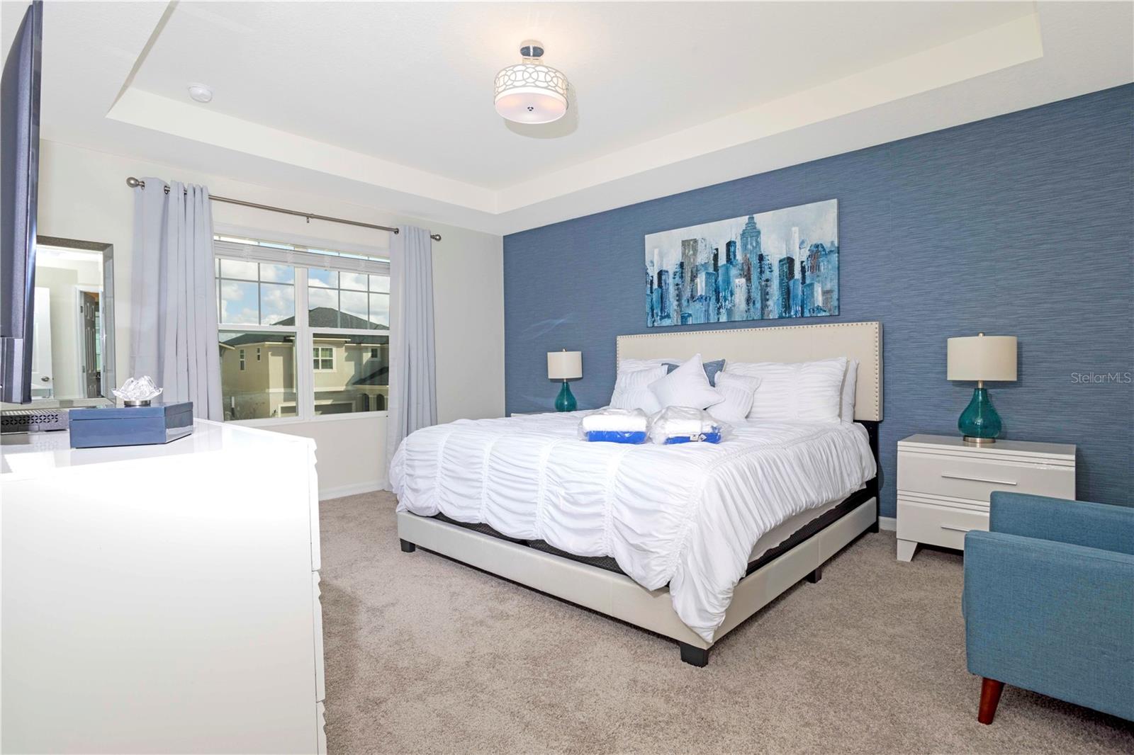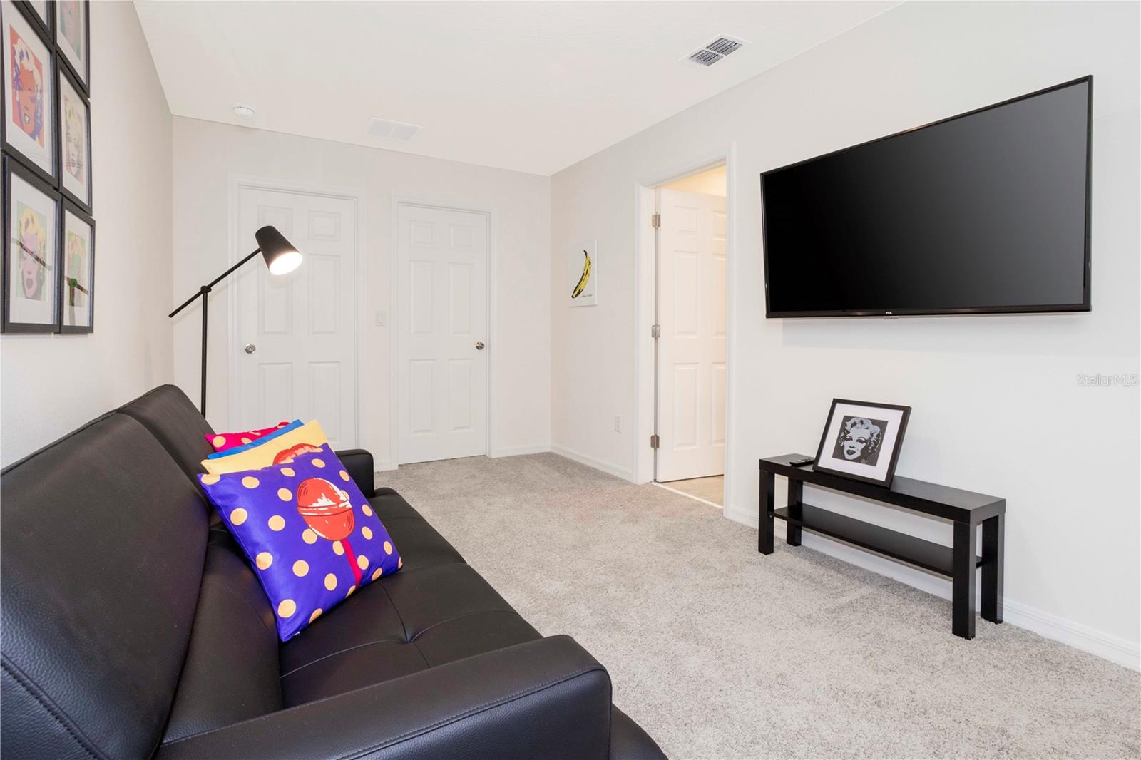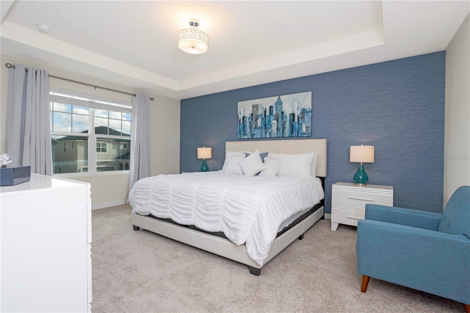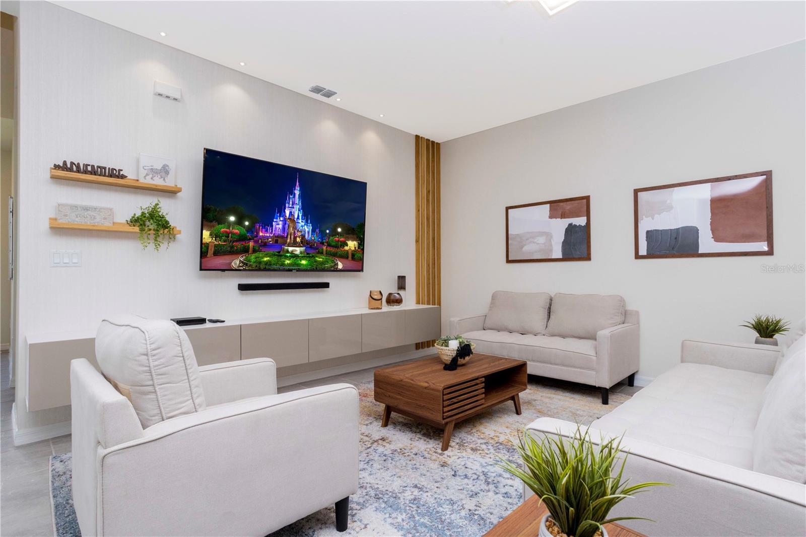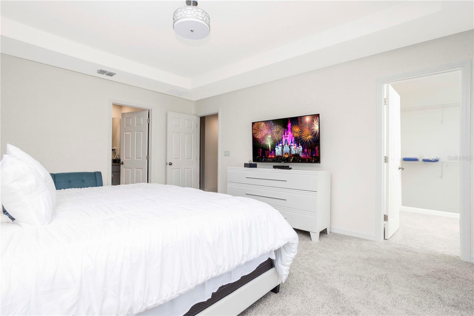 Be captivated by this stunning 4-bedroom, 4.5-bathroom townhouse located in the heart of the Solara Resort! Built in 2021, this modern masterpiece is fully furnished and blends elegance with a welcoming open-concept layout. The state-of-the-art kitchen, equipped with top-tier appliances, seamlessly connects to the dining and living areas, creating the perfect space for hosting family and friends. Sliding glass doors open to your private outdoor retreat, featuring a cozy covered lanai, a charming screened-in pool for sunny days, and a convenient cabana bath. The primary suite is conveniently located on the ground floor and boasts a spacious bathroom with double vanities and a large walk-in shower. Upstairs, a versatile loft offers the perfect space for entertainment or relaxation. You’ll also find three additional bedrooms and three full bathrooms, including a secondary master suite with a private bath, ideal for accommodating guests. Two of the bedrooms feature fun, themed designs, adding a playful touch that’s perfect for creating lasting memories. The resort lifestyle at Solara is unparalleled, with world-class amenities. Enjoy a resort-style pool, a wave simulator, a fully equipped fitness center, and sports courts, including basketball, volleyball, and a full-size soccer field. Ideally situated near major theme parks, restaurants, and grocery stores, this home is perfect as a magical vacation getaway or as a lucrative short-term rental investment. It’s an opportunity that combines comfort, fun, and convenience all in one!