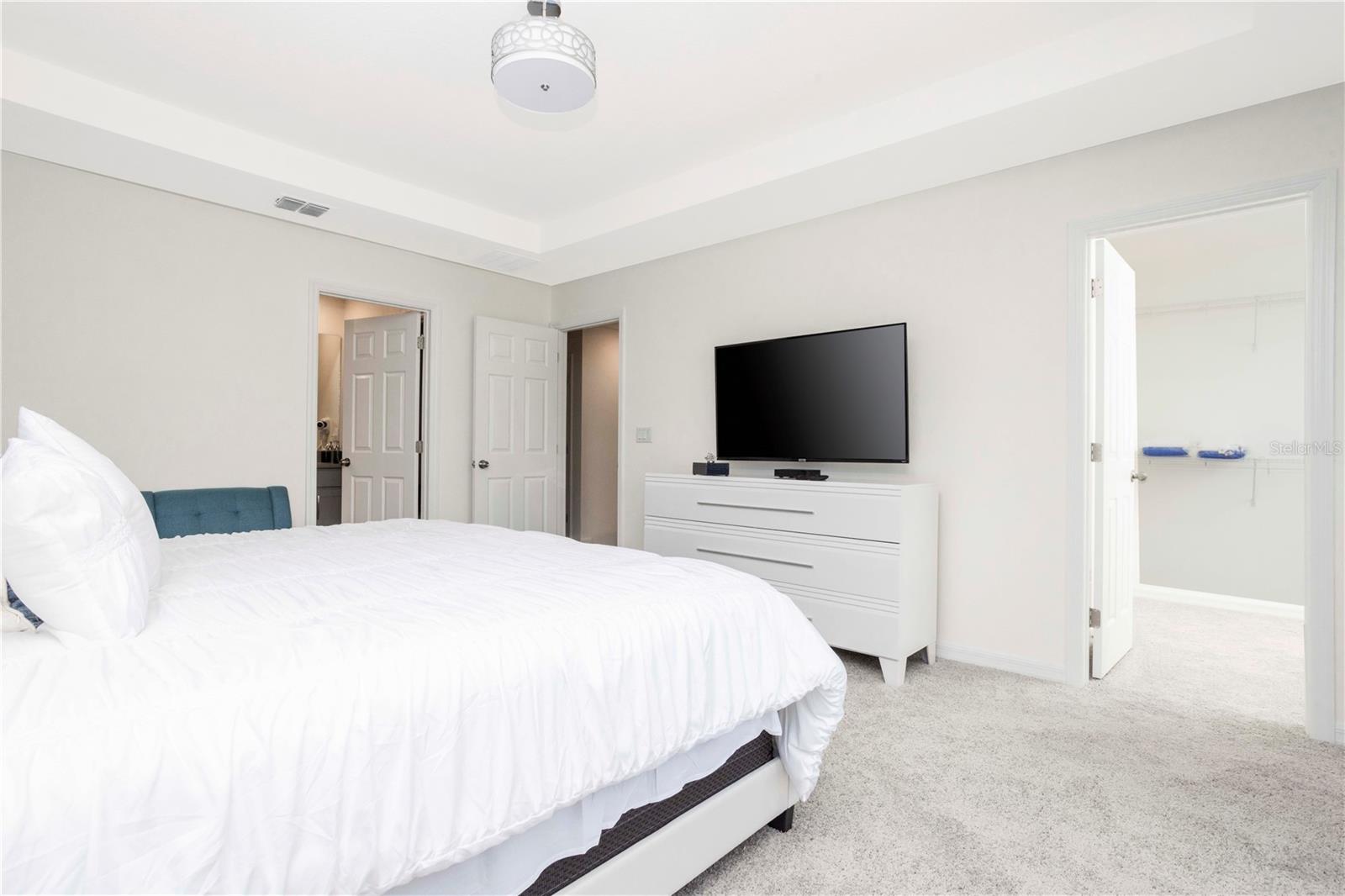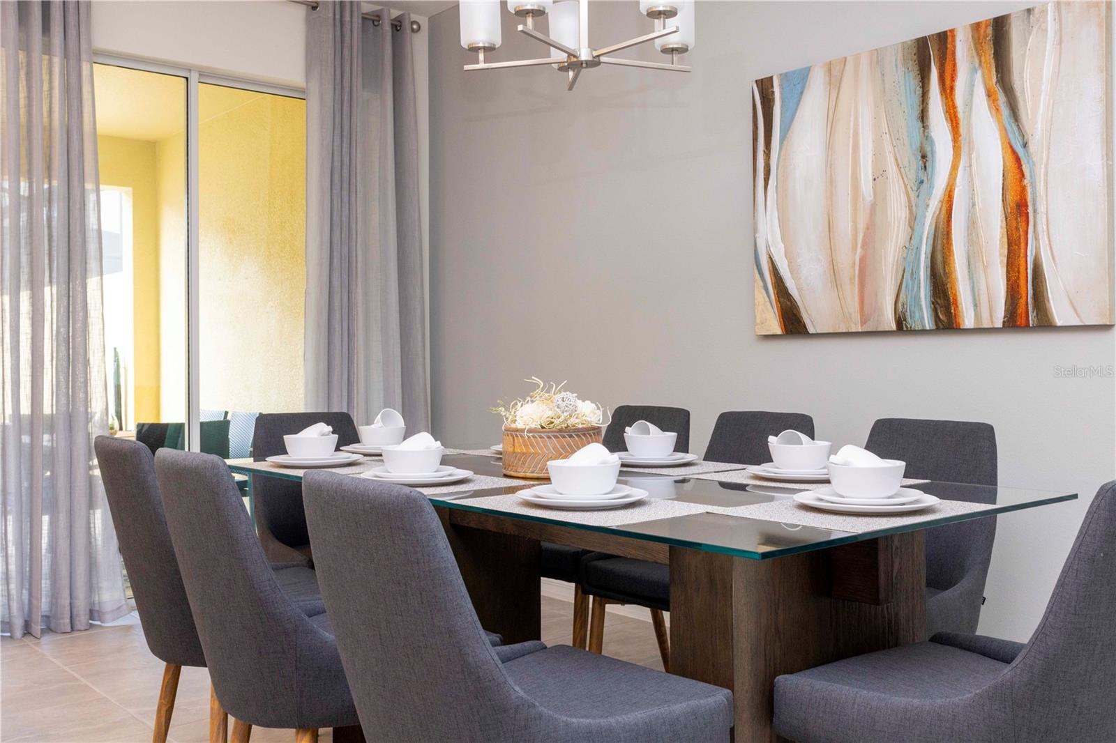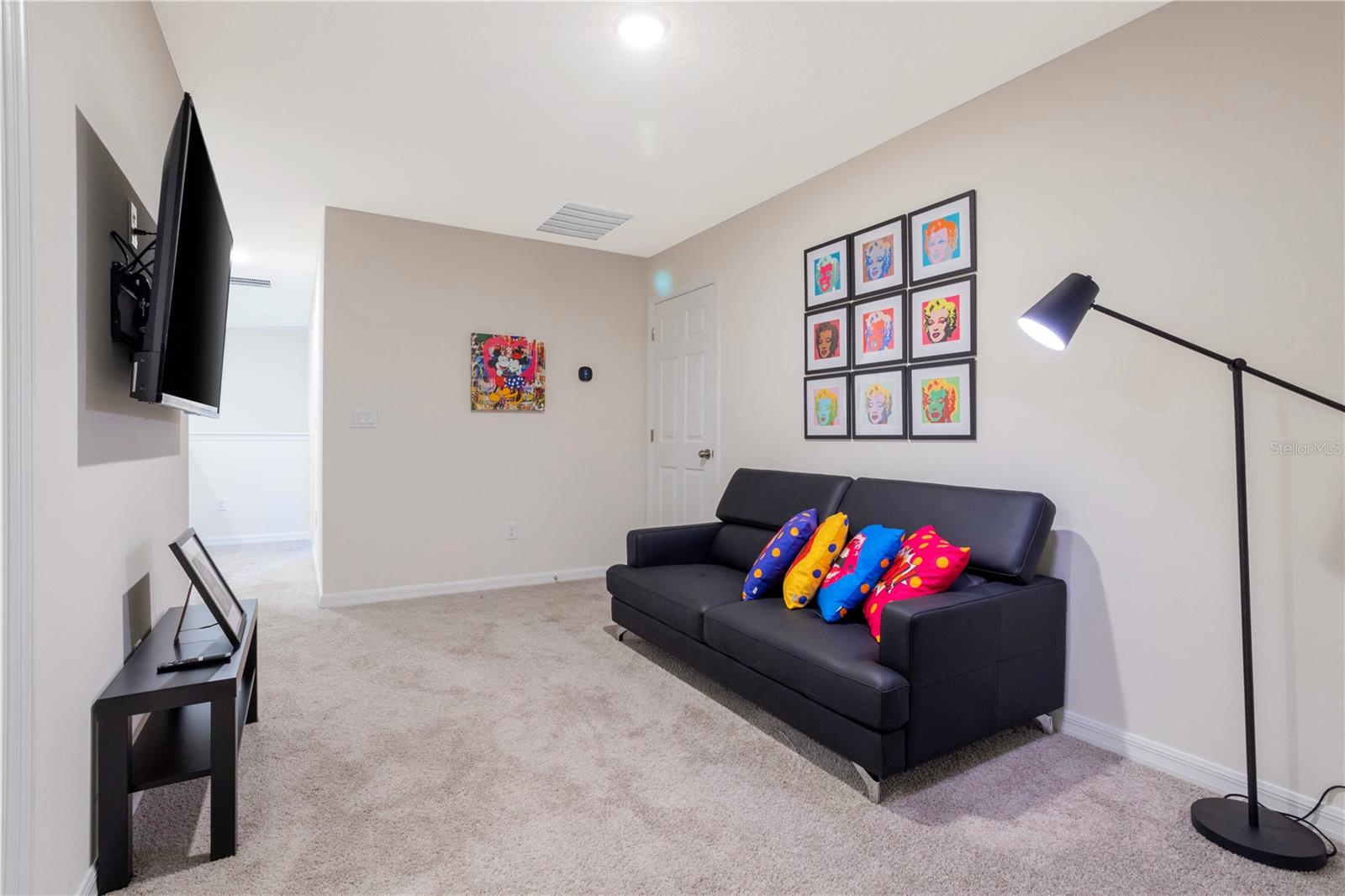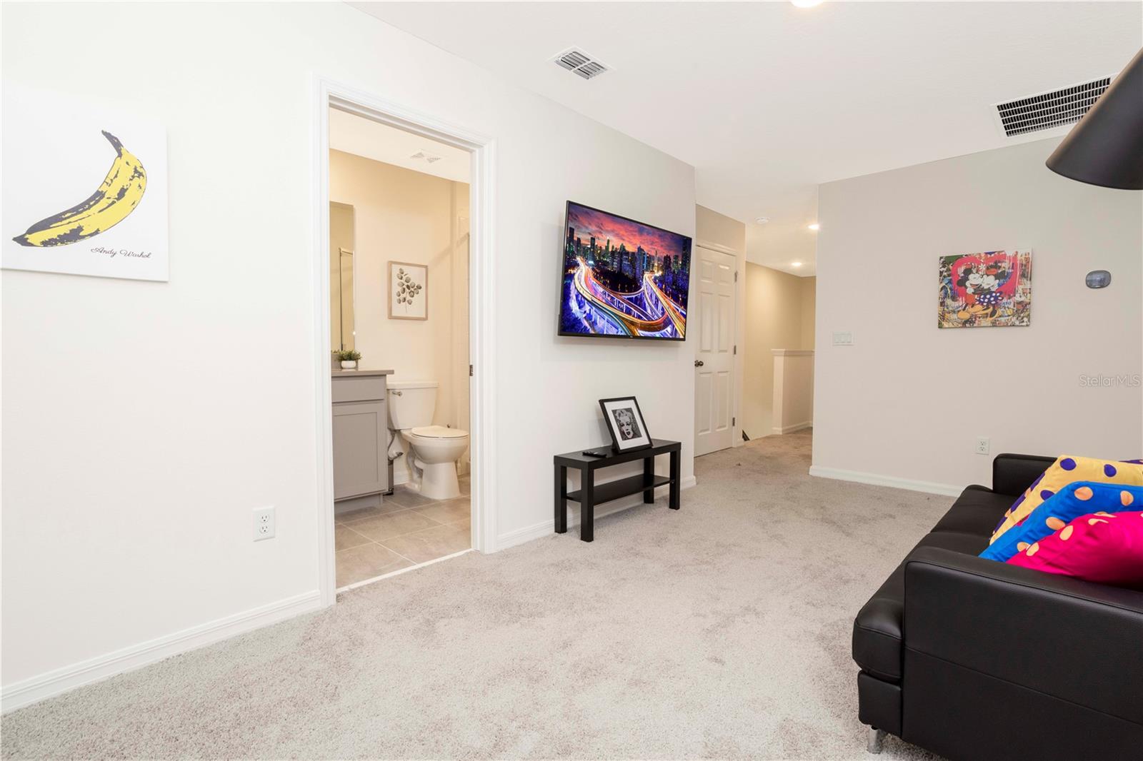 Be captivated by this stunning 4-bedroom, 4.5-bathroom townhouse located in the heart of the Solara Resort! Built in 2021, this modern masterpiece is fully furnished and blends elegance with a welcoming open-concept layout. The state-of-the-art kitchen, equipped with top-tier appliances, seamlessly connects to the dining and living areas, creating the perfect space for hosting family and friends. Sliding glass doors open to your private outdoor retreat, featuring a cozy covered lanai, a charming screened-in pool for sunny days, and a convenient cabana bath. The primary suite is conveniently located on the ground floor and boasts a spacious bathroom with double vanities and a large walk-in shower. Upstairs, a versatile loft offers the perfect space for entertainment or relaxation. You’ll also find three additional bedrooms and three full bathrooms, including a secondary master suite with a private bath, ideal for accommodating guests. Two of the bedrooms feature fun, themed designs, adding a playful touch that’s perfect for creating lasting memories. The resort lifestyle at Solara is unparalleled, with world-class amenities. Enjoy a resort-style pool, a wave simulator, a fully equipped fitness center, and sports courts, including basketball, volleyball, and a full-size soccer field. Ideally situated near major theme parks, restaurants, and grocery stores, this home is perfect as a magical vacation getaway or as a lucrative short-term rental investment. It’s an opportunity that combines comfort, fun, and convenience all in one!
