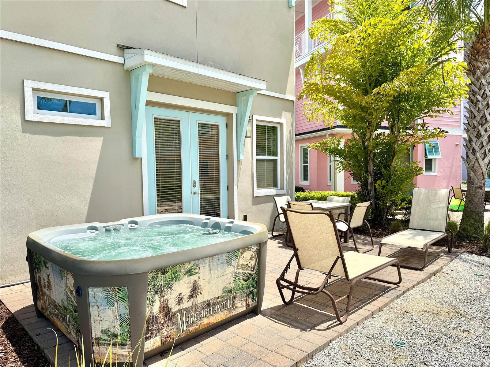 MARGARITAVILLE RESORT ORLANDO COTTAGE FOR SALE! This Two Story Home Features 3 Bedrooms and 3 Bathrooms with Additional Bonus Room with Built In Twin Bed. Gorgeous Backyard with Paved Patio with a HOT TUB Overlooking Huge Grass Area with Tiki Huts and Tropical Foliage. Primary Bedroom on First Floor with En-Suite Bathroom and French Doors that Open to Patio. The Kitchen Features Upgraded Stainless Steel Appliances and Quartz Countertops!. This Home also Features 'WOOD" Tile Flooring, Ceiling Fans Throughout, High Capacity Washer and Dryer and Abundant Natural Light. Furniture/Housewares Package is INCLUDED in List Price! Also Includes Blinds, Drapes, TVs, Artwork, Kitchen Necessities, Utensils, Dishware, Linens, and so MUCH MORE! This is a Wonderful Community to Live in Full Time, Own a Second Home or Invest in a Vacation Rental Property! This Unique First Of Its Kind Resort Has Multiple Pools, Gym, On-Site Water Park, Sunset Walk Restaurants, Bars, Live Music, Retail And More! LOCATED MINUTES FROM DISNEY PARKS!, All While Being Conveniently Close To The Best Shopping, Dining, And Entertainment Options In Florida. This Home Offers More Than Just A Place To Stay - it's A Lifestyle Of Resort-Style Living, Where Everyday Feels Like A Vacation.