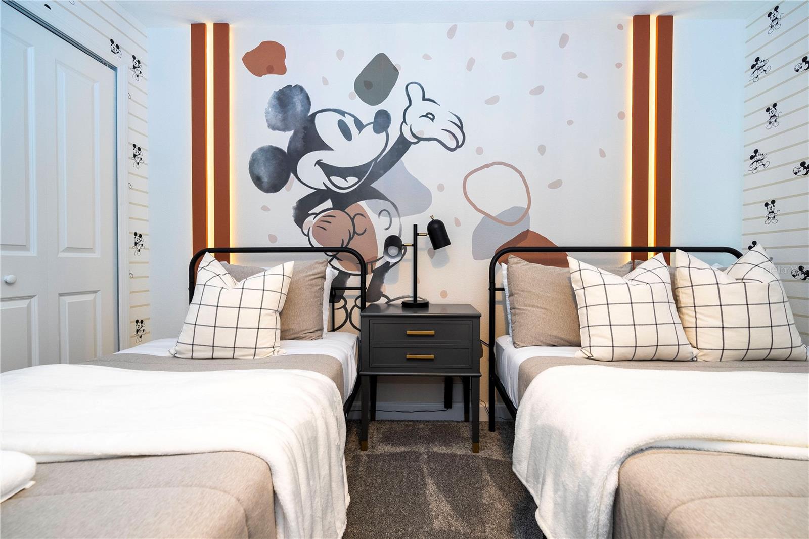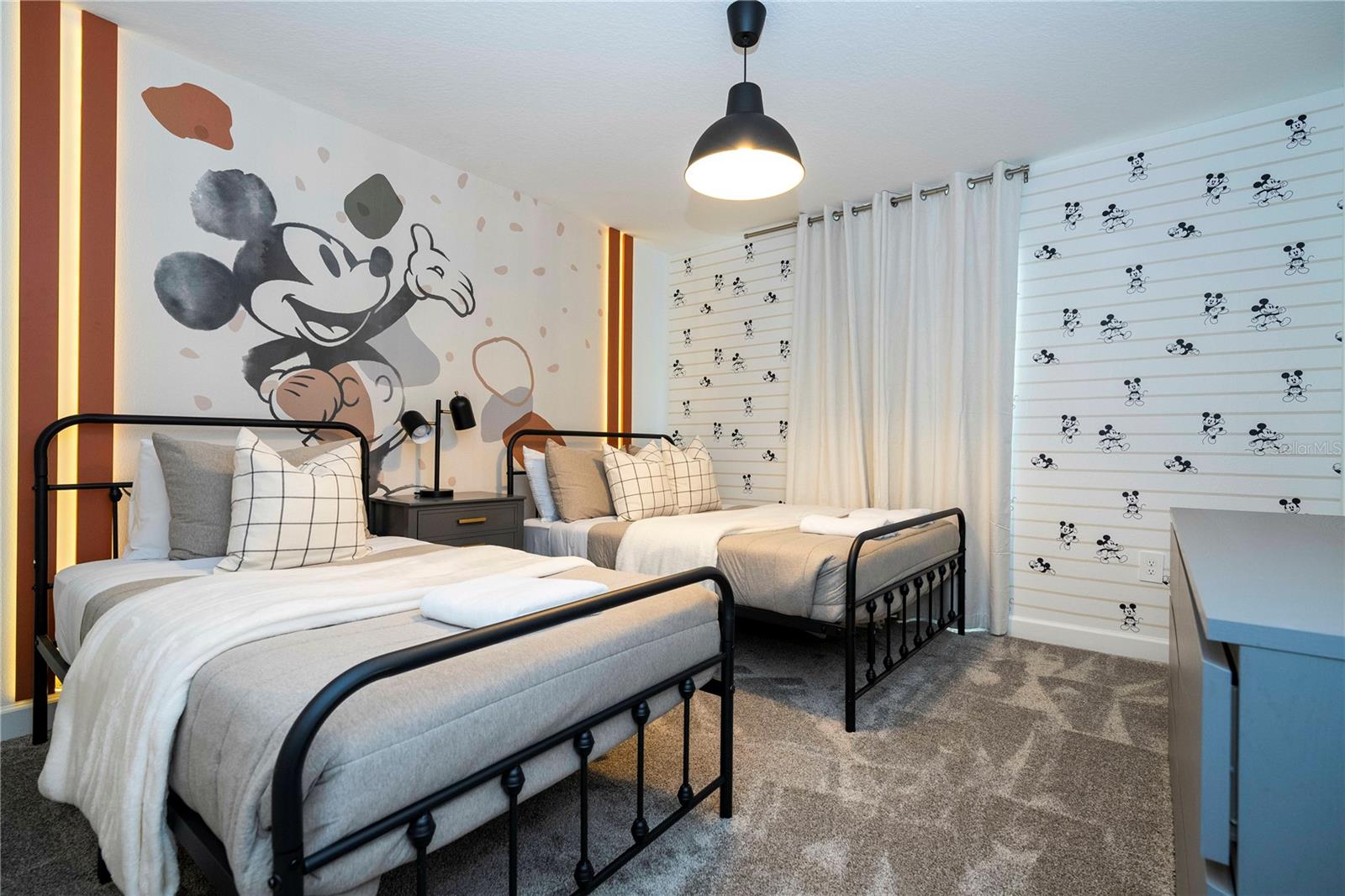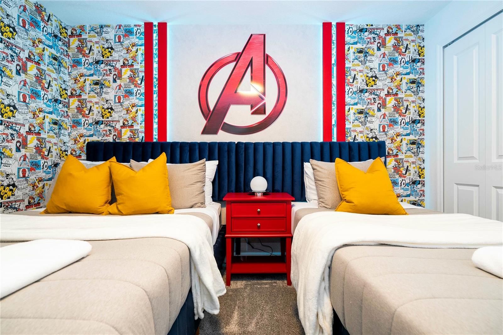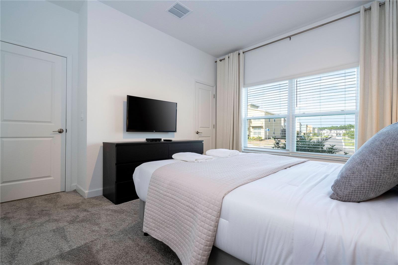 This charming townhouse, located in the desirable Storey Lake community, offers a fantastic vacation experience with a private pool and plenty of space for up to 10 guests. The home features 4 bedrooms and 3 bathrooms, with the first floor offering a cozy bedroom with a Queen bed, accommodating 2 guests with a bathroom just down the hallway. On the second floor, the master suite includes a King bed and a private bathroom, perfect for 2 guests. There are two themed rooms: one with a Mickey theme featuring a Full bed and a Twin bed (sleeps 3), and another with an Avengers theme offering a Full bed and a Twin bed (sleeps 3), both sharing a bathroom in the hallway. The home is fully equipped with everything you need for a comfortable stay, including a cozy living and dining area, a fully equipped kitchen with a dishwasher, a washer and dryer, and new linens for bed, bath, and table. Additional amenities include board games, a PS5 video game console, free high-speed Wi-Fi, cable TV, and free local calls. Guests can enjoy the private pool and access to the community’s recreational area. Please note that the use of the grill and pool heating are available for an additional fee, and certain activities in the recreational area may require on-site payment, such as arcade games, kayaking, and mini-golf. The home’s prime location makes it ideal for visiting Orlando's top attractions, with Walt Disney World just 20 minutes away (16 km) and Universal Studios around 25 minutes (22 km) from your doorstep. Whether you’re here for a family getaway or a group trip, this home offers everything you need for a relaxing and memorable stay.