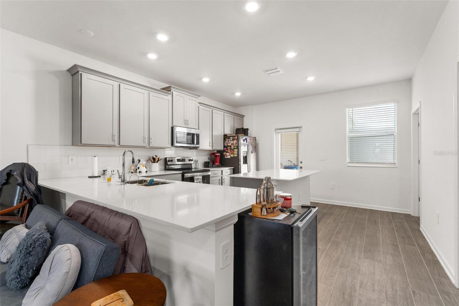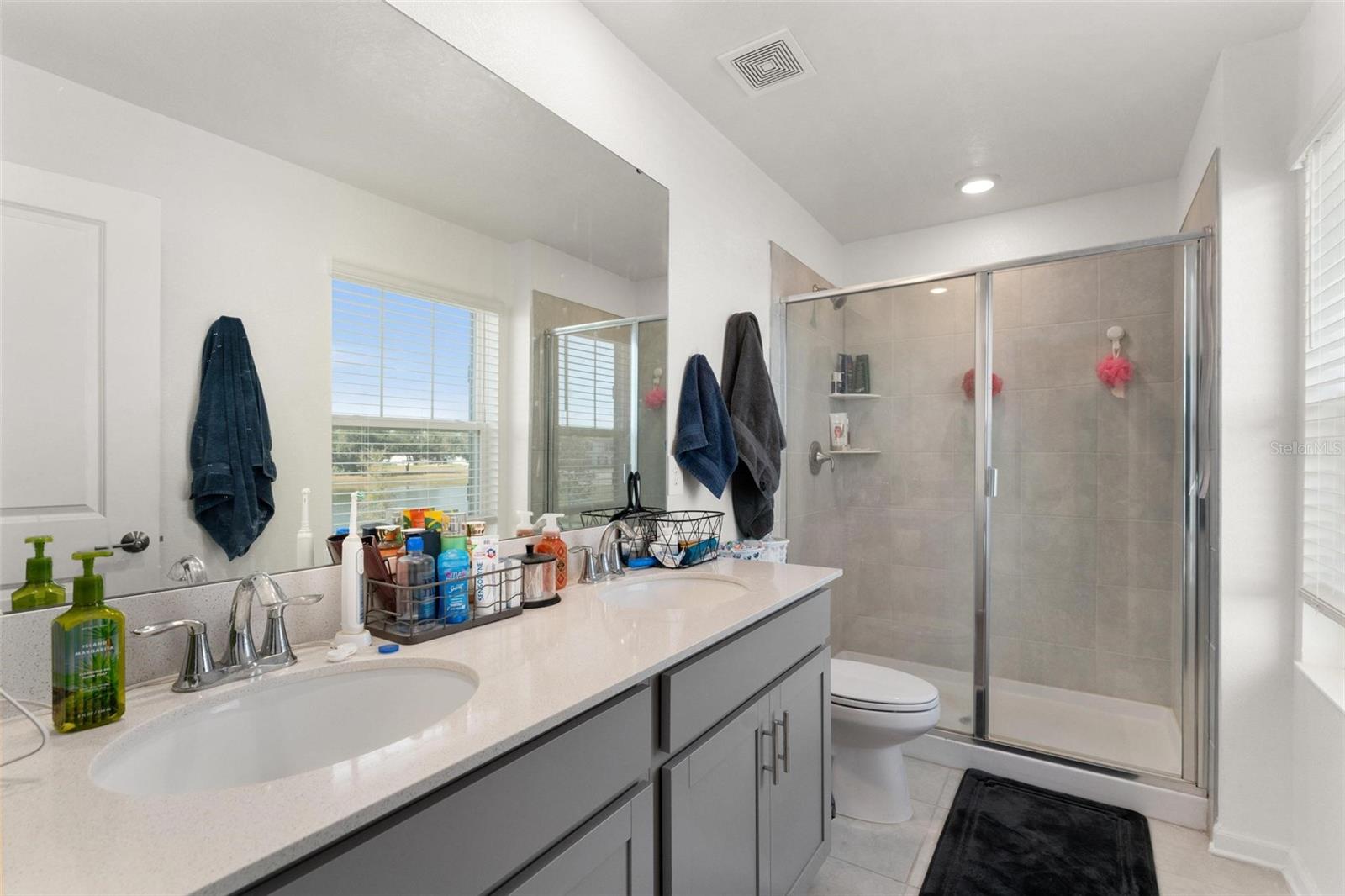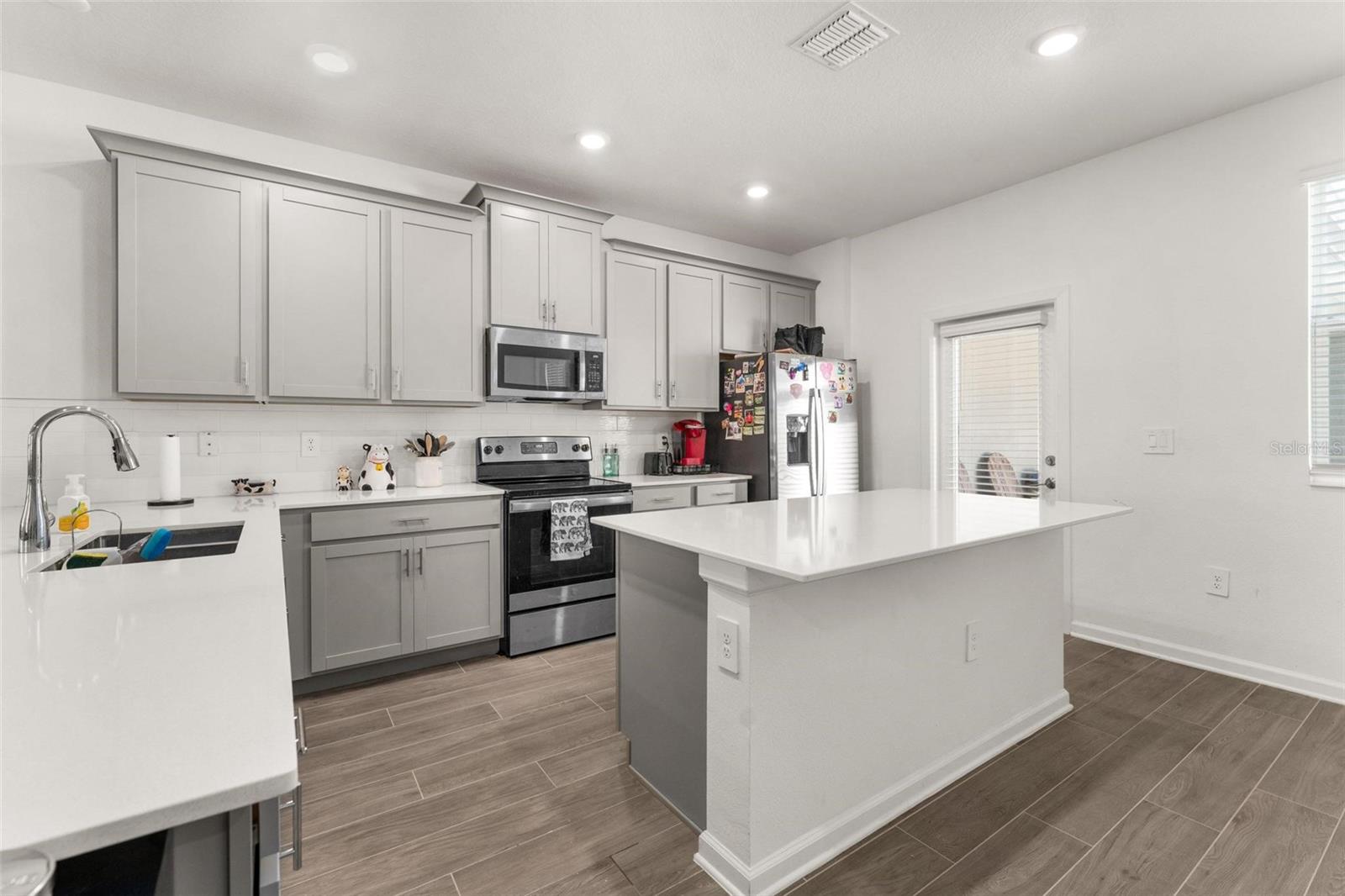 Begin your mornings with a tranquil lake view as you sip your coffee in the comfort of this gorgeous townhome. Upon entering, you’ll be welcomed into a spacious open concept living and dining area, perfect for gatherings and everyday comfort. The contemporary kitchen is equipped with stainless steel appliances, sleek gray cabinets, quartz countertops, and a center island. A conveniently located laundry room provides easy access through the kitchen. At the heart of the home, a spacious patio offers a private outdoor retreat, seamlessly connecting to the garage entrance. It’s the perfect spot to relax on warm summer nights or host memorable gatherings with family and friends. Upstairs, the Primary Bedroom features a generous walk-in closet and a luxurious en-suite bathroom with a dual-sink quartz vanity. Two additional cozy bedrooms share a well-appointed guest bathroom with a tub and a large vanity. Residents enjoy top-tier amenities, including a resort-style swimming pool, an extravagant clubhouse with a state-of-the-art fitness center, tennis and pickleball courts, and scenic walking trails throughout the community. Whether you're searching for your first home or a smart investment opportunity, this stunning townhome is a perfect choice. Explore the possibilities today!