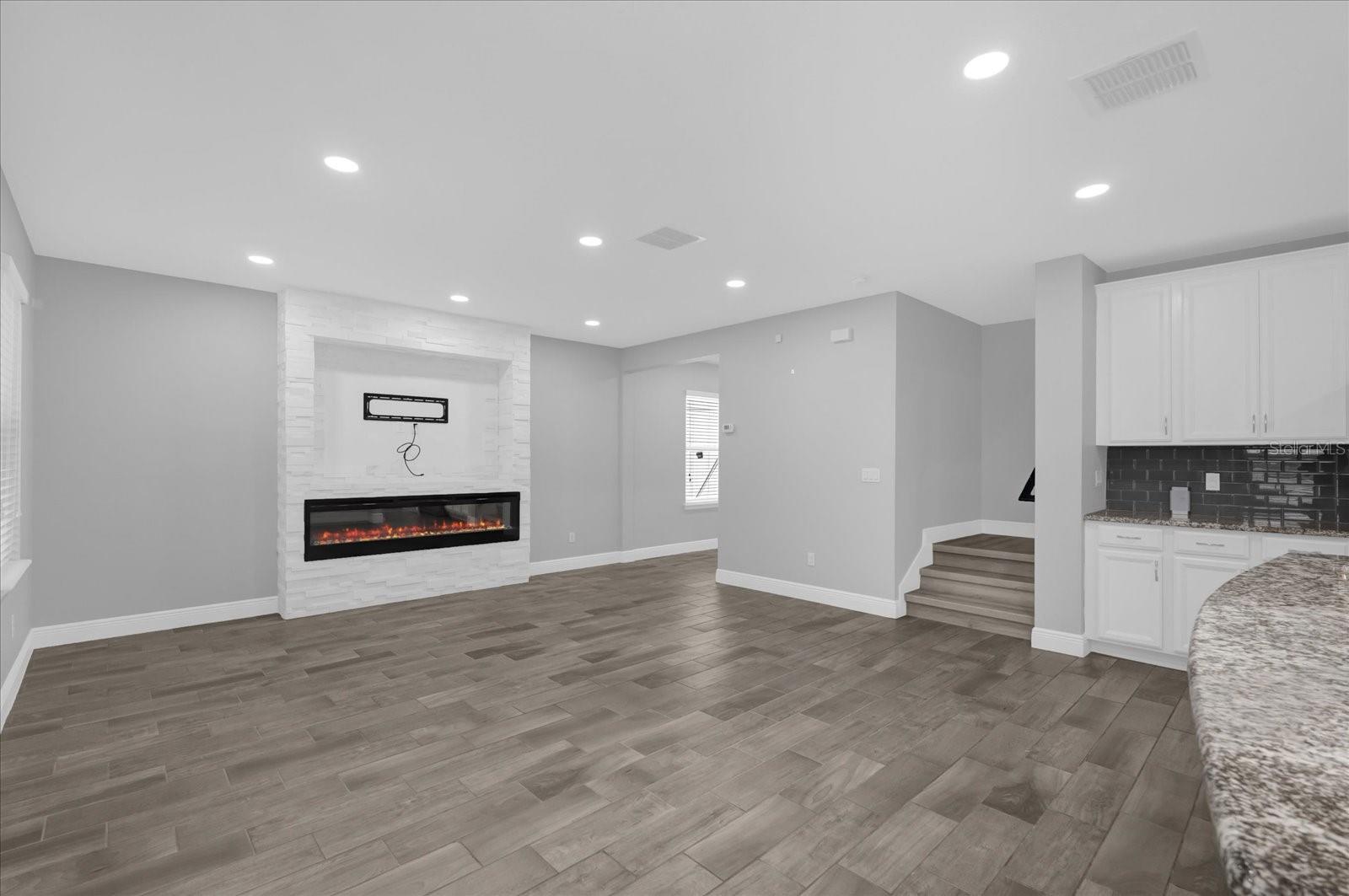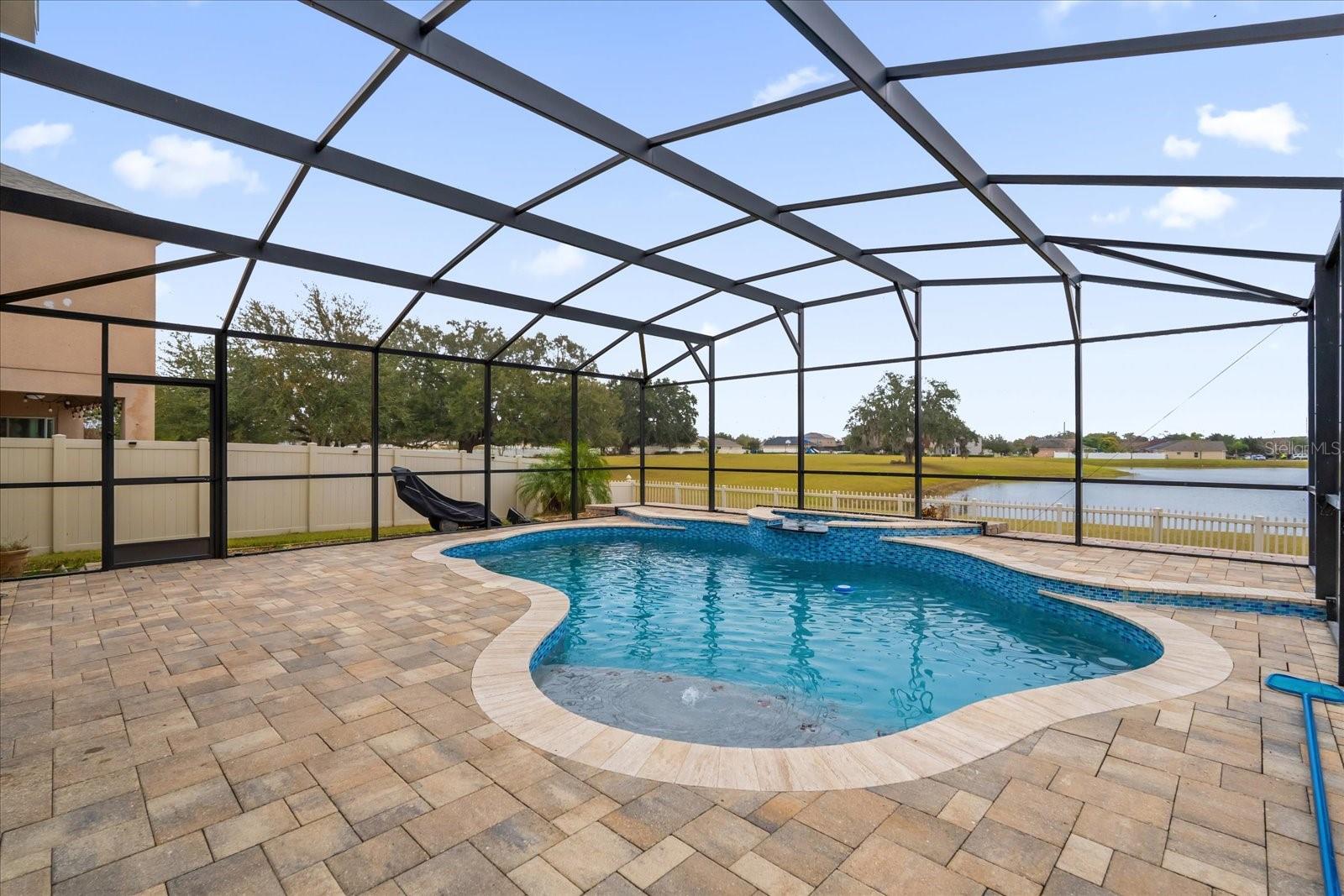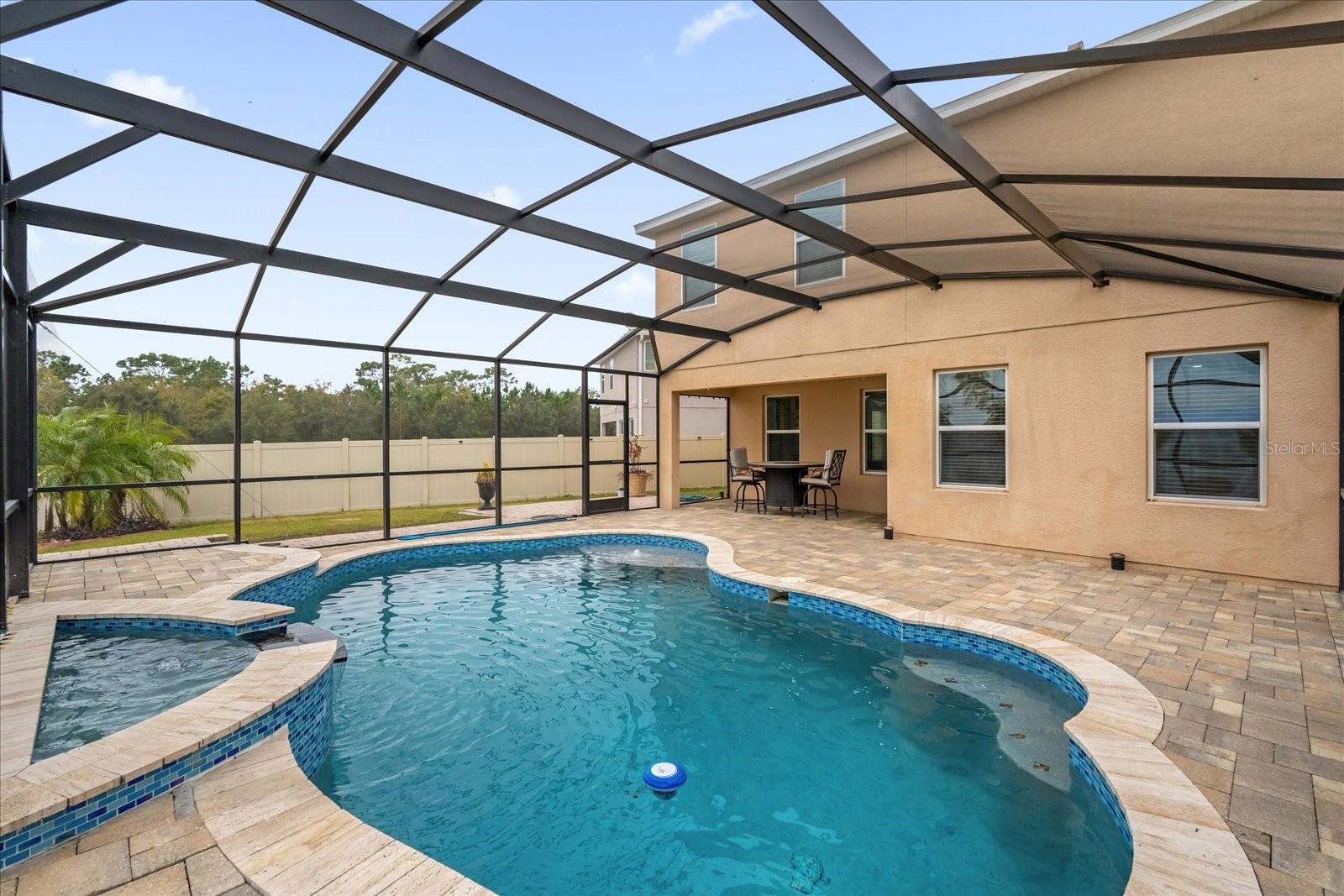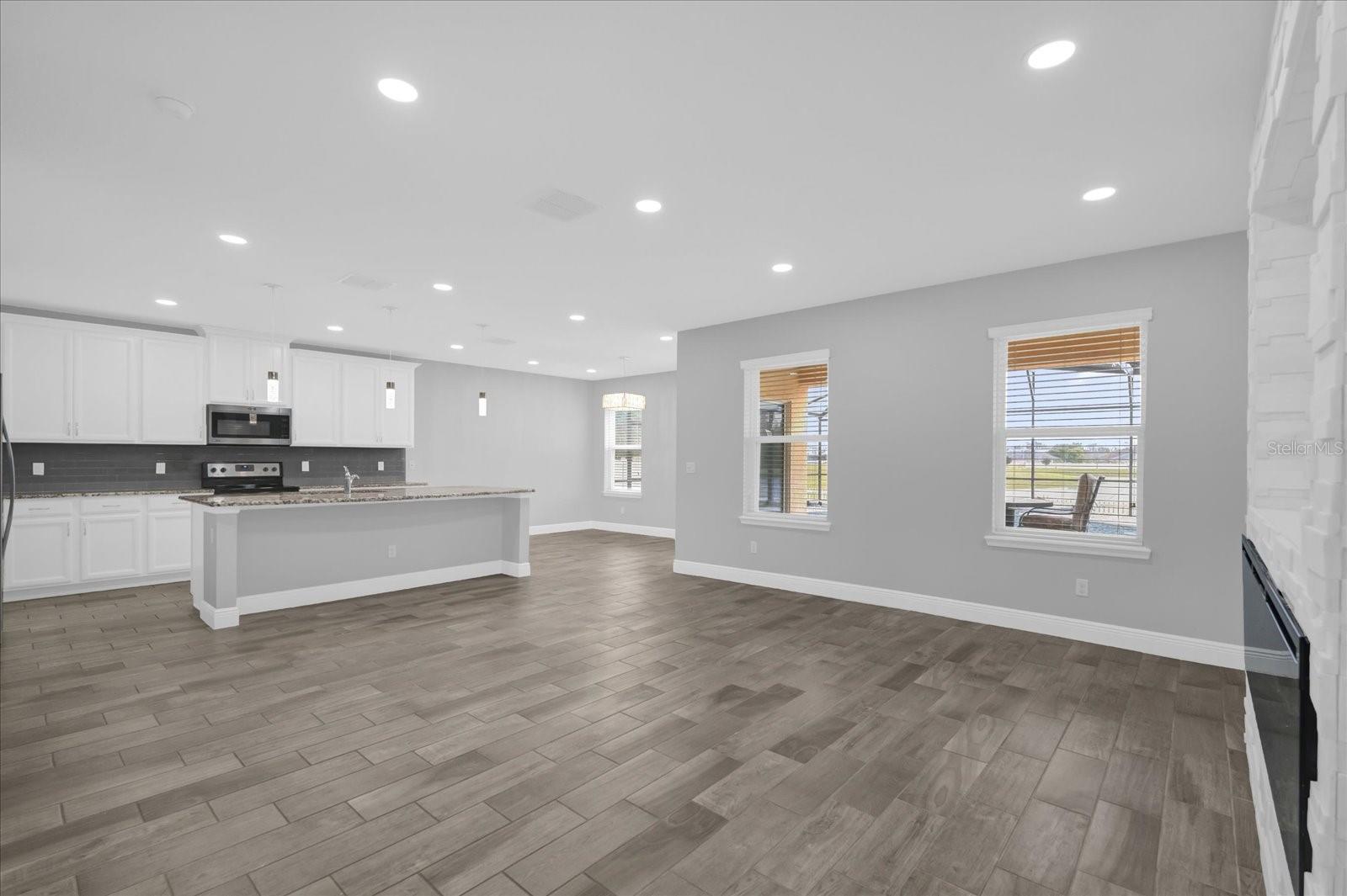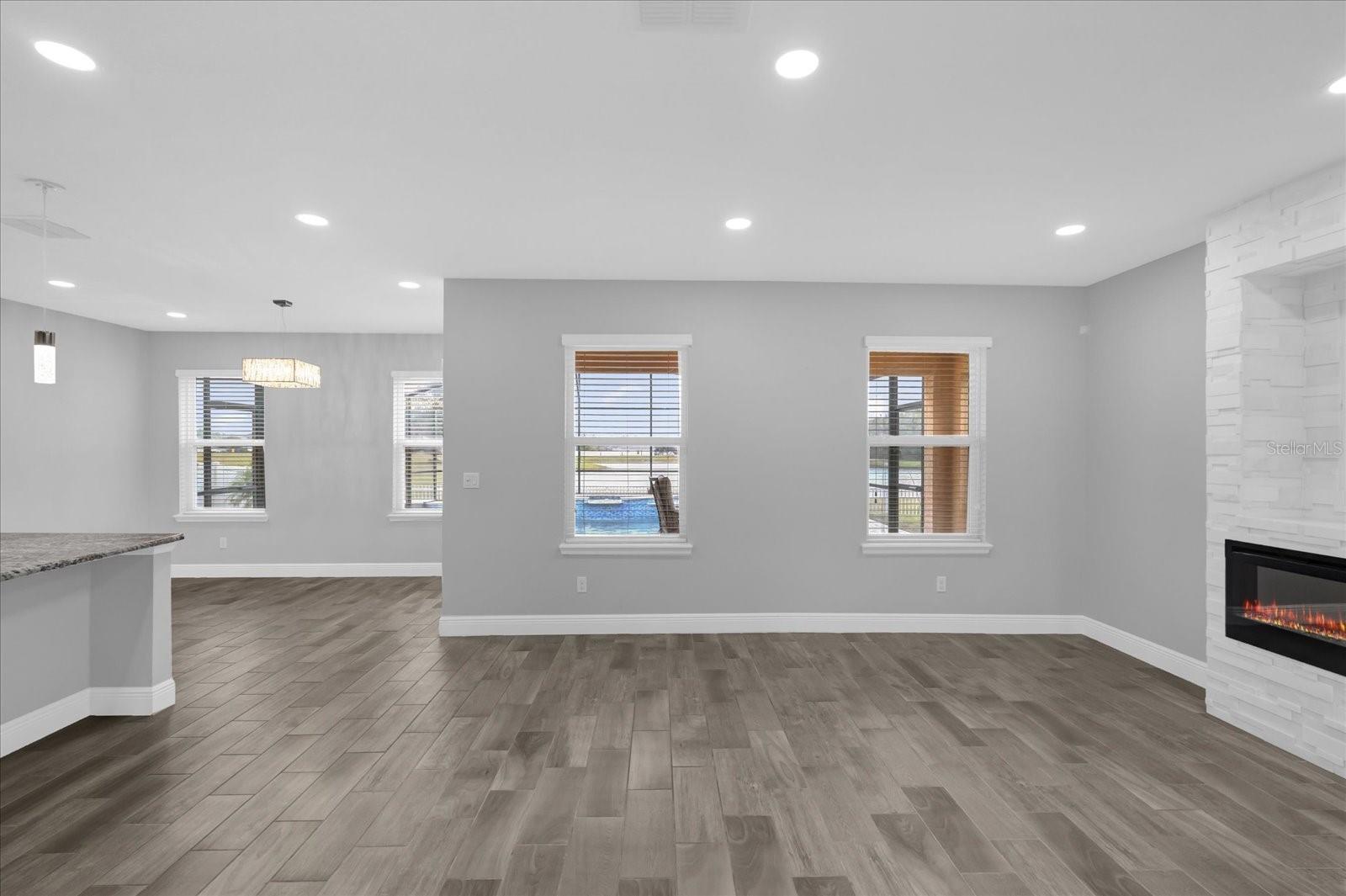 Welcome to this beautiful 2017-built home in Kissimmee, offering 2,307 square feet of thoughtfully designed living space. This 3-bedroom, 2.5-bathroom residence sits on an oversized lot and features an electric heated pool with a screen enclosure, providing the perfect spot for year-round enjoyment. The property boasts stunning views of a peaceful pond and borders wooded conservation area, creating a serene backdrop for daily living. Inside, the first floor showcases attractive wood-style tile flooring and modern lighting throughout. The well-appointed kitchen features granite countertops, upgraded cabinets, and a spacious walk-in pantry. A decorative fireplace adds character to the living area. Upstairs, you'll find luxury vinyl flooring and a versatile loft space that could easily serve as a fourth bedroom, home office, or entertainment area. The convenient second-floor laundry room adds to the home's practical layout. The primary bedroom is a true retreat, complete with a relaxing soaking tub and an impressive walk-in dressing room closet featuring custom built-in shelves and drawers. Location is key, and this home delivers with easy access to major attractions. You're just 20 minutes from the airport, 25 minutes from theme parks, and 20 minutes from Downtown Kissimmee. This move-in ready home combines modern comfort with practical living, making it an ideal choice for those seeking a spacious and well-maintained property in a desirable Kissimmee location.