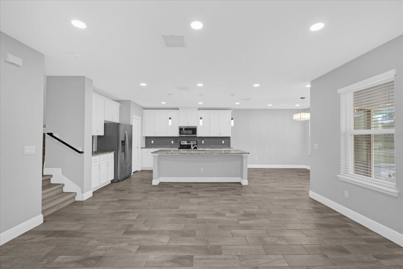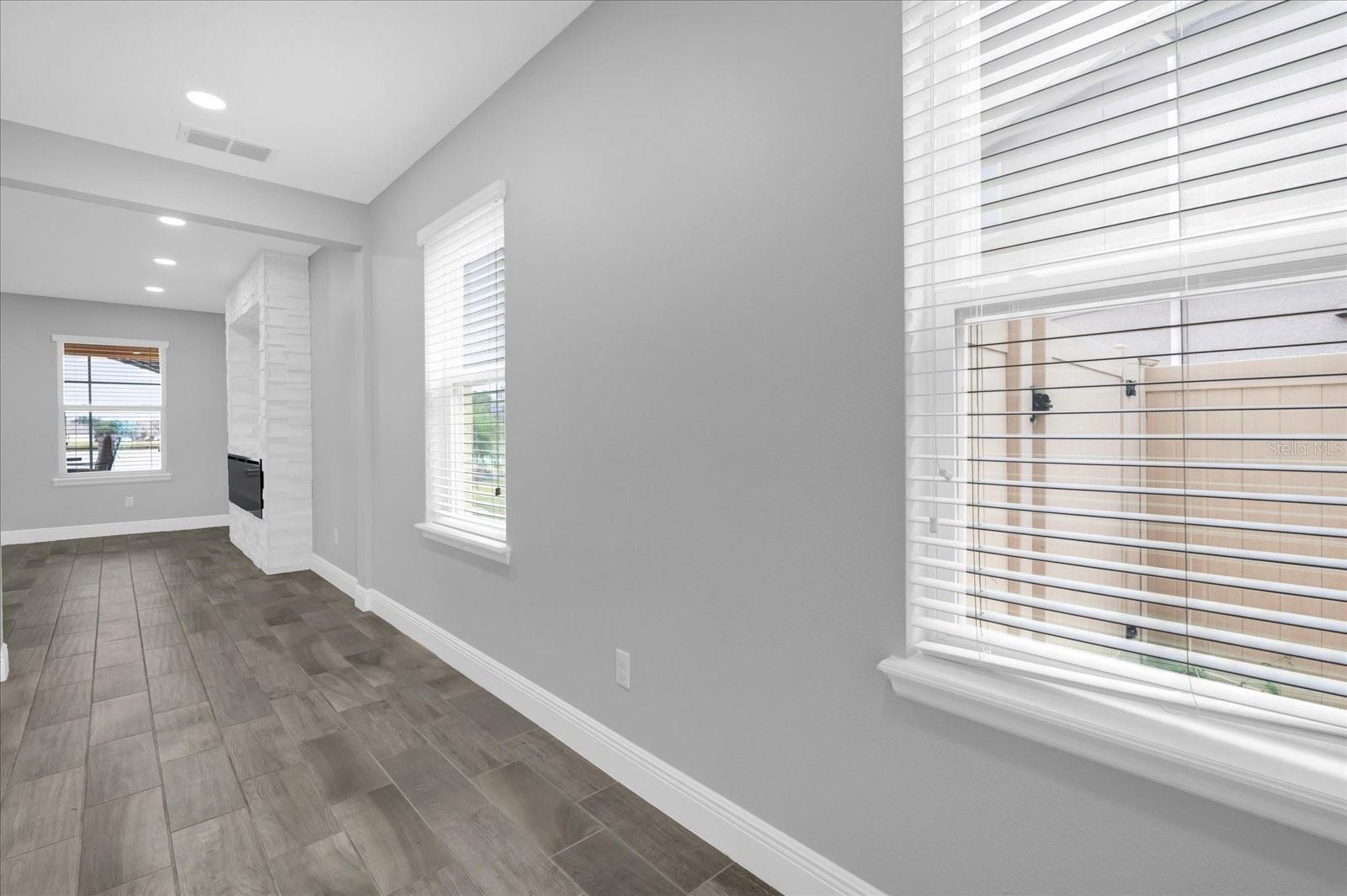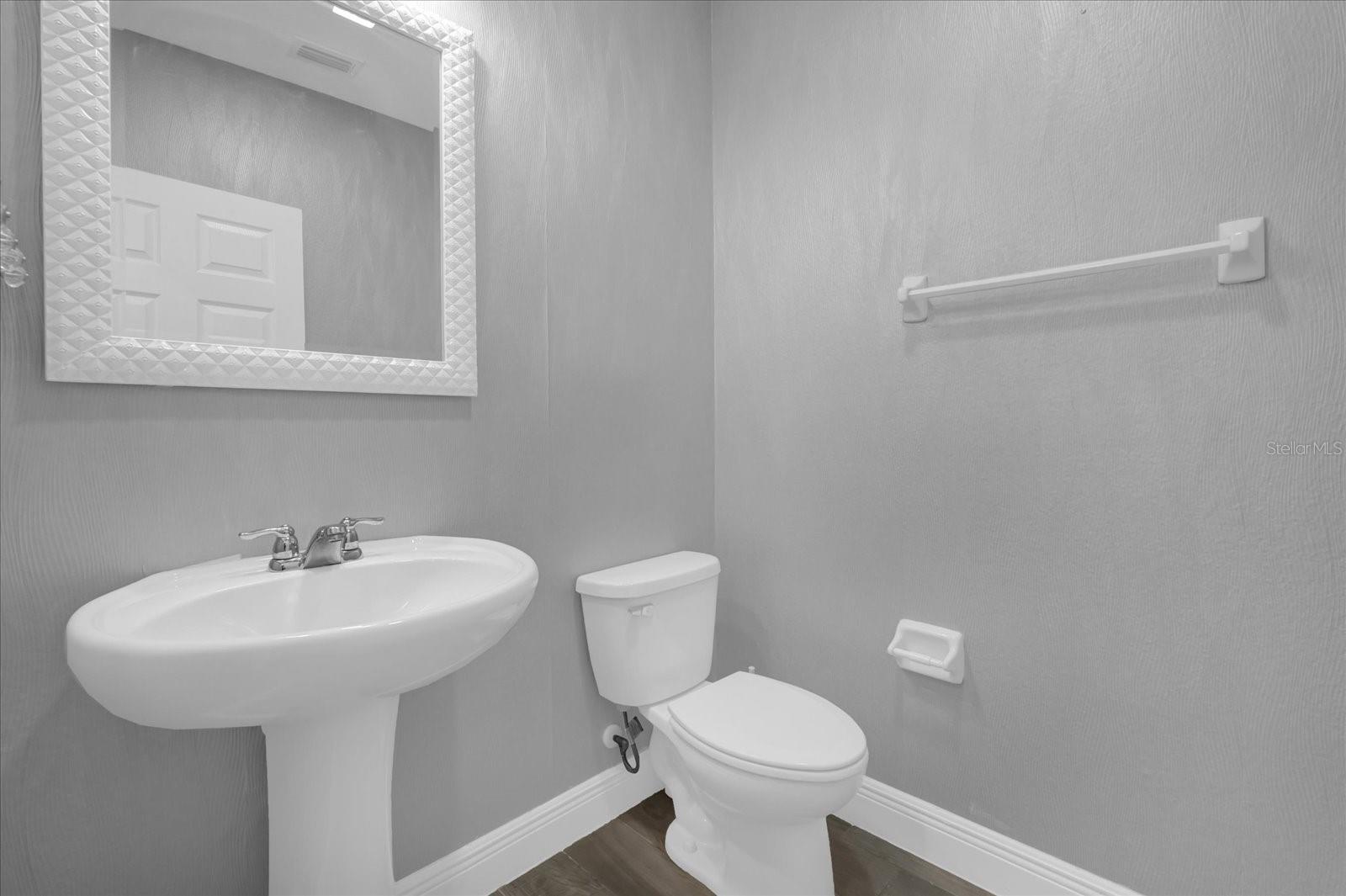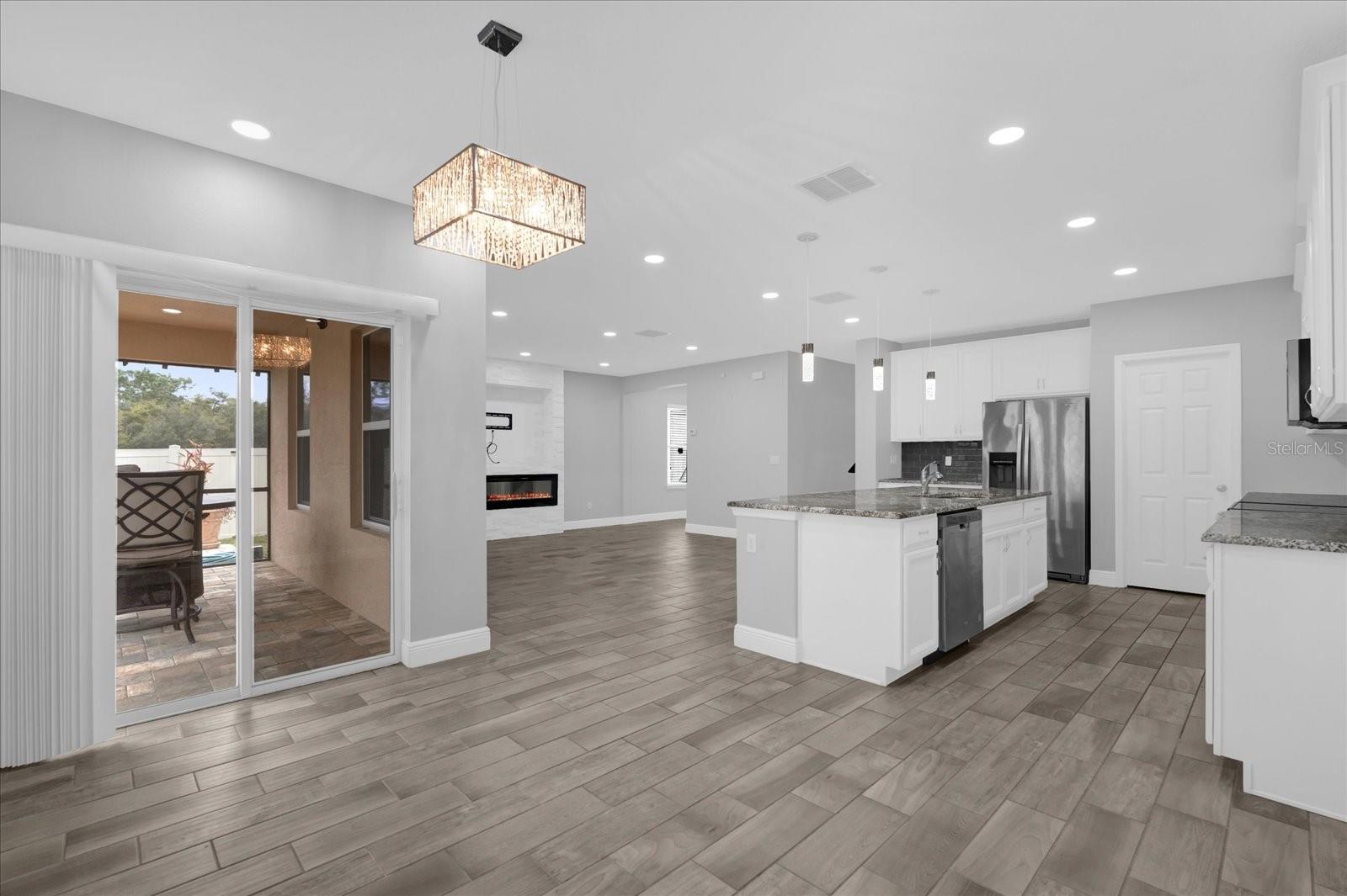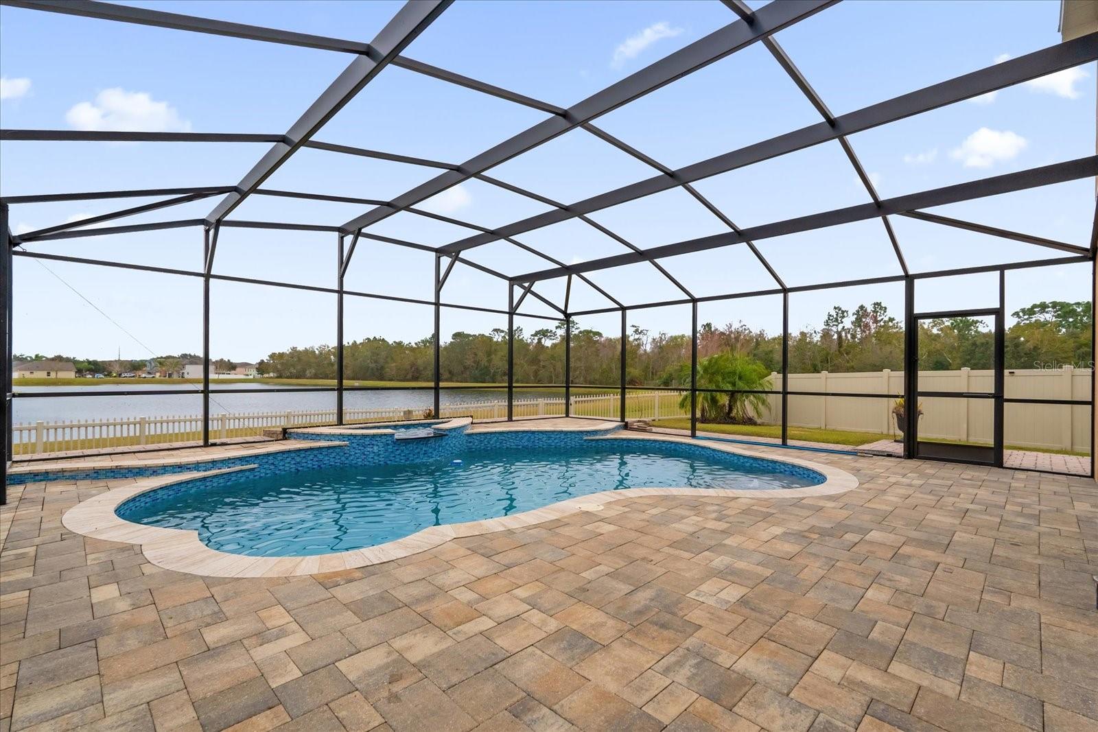 Welcome to this beautiful 2017-built home in Kissimmee, offering 2,307 square feet of thoughtfully designed living space. This 3-bedroom, 2.5-bathroom residence sits on an oversized lot and features an electric heated pool with a screen enclosure, providing the perfect spot for year-round enjoyment. The property boasts stunning views of a peaceful pond and borders wooded conservation area, creating a serene backdrop for daily living. Inside, the first floor showcases attractive wood-style tile flooring and modern lighting throughout. The well-appointed kitchen features granite countertops, upgraded cabinets, and a spacious walk-in pantry. A decorative fireplace adds character to the living area. Upstairs, you'll find luxury vinyl flooring and a versatile loft space that could easily serve as a fourth bedroom, home office, or entertainment area. The convenient second-floor laundry room adds to the home's practical layout. The primary bedroom is a true retreat, complete with a relaxing soaking tub and an impressive walk-in dressing room closet featuring custom built-in shelves and drawers. Location is key, and this home delivers with easy access to major attractions. You're just 20 minutes from the airport, 25 minutes from theme parks, and 20 minutes from Downtown Kissimmee. This move-in ready home combines modern comfort with practical living, making it an ideal choice for those seeking a spacious and well-maintained property in a desirable Kissimmee location.