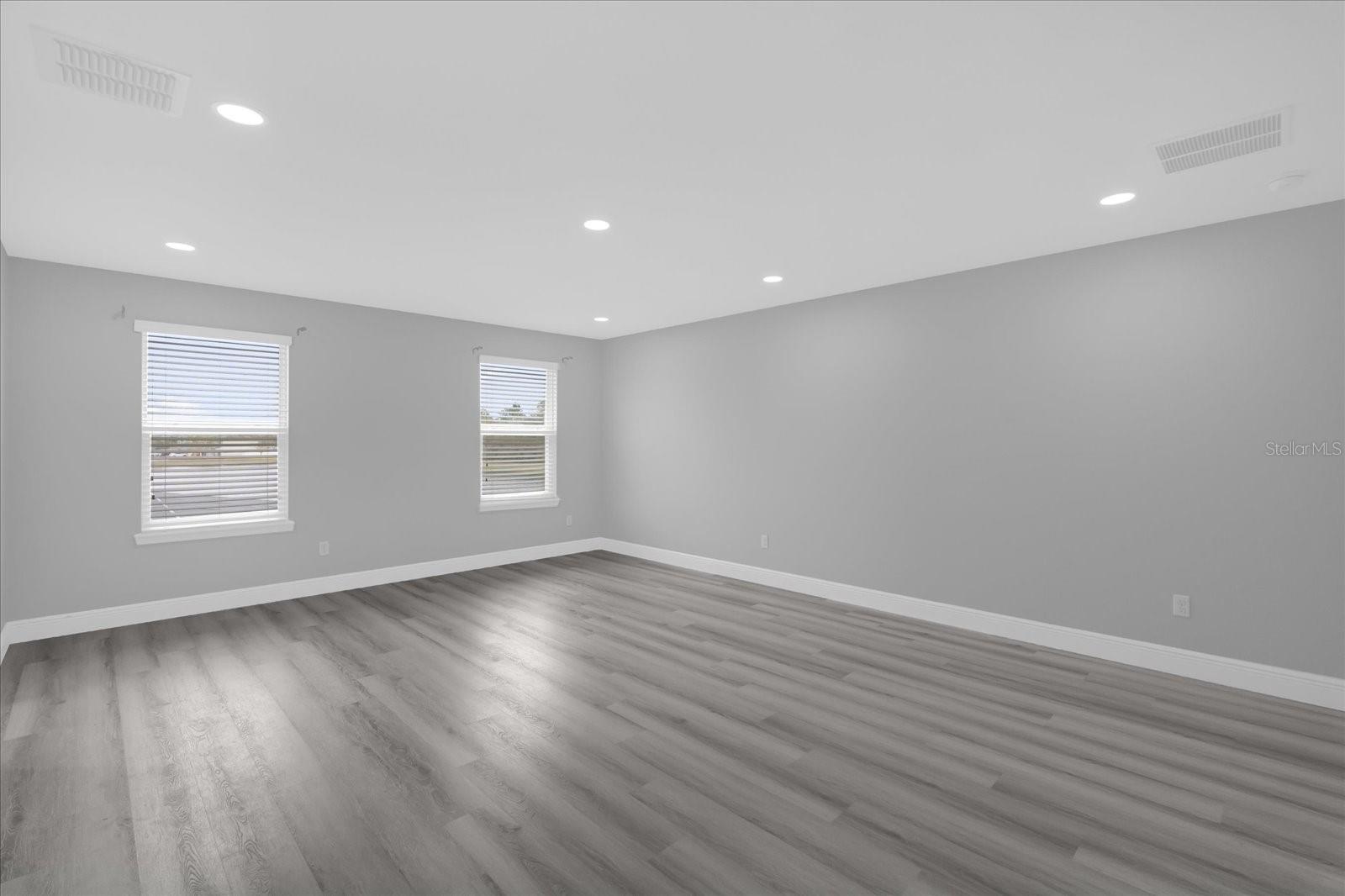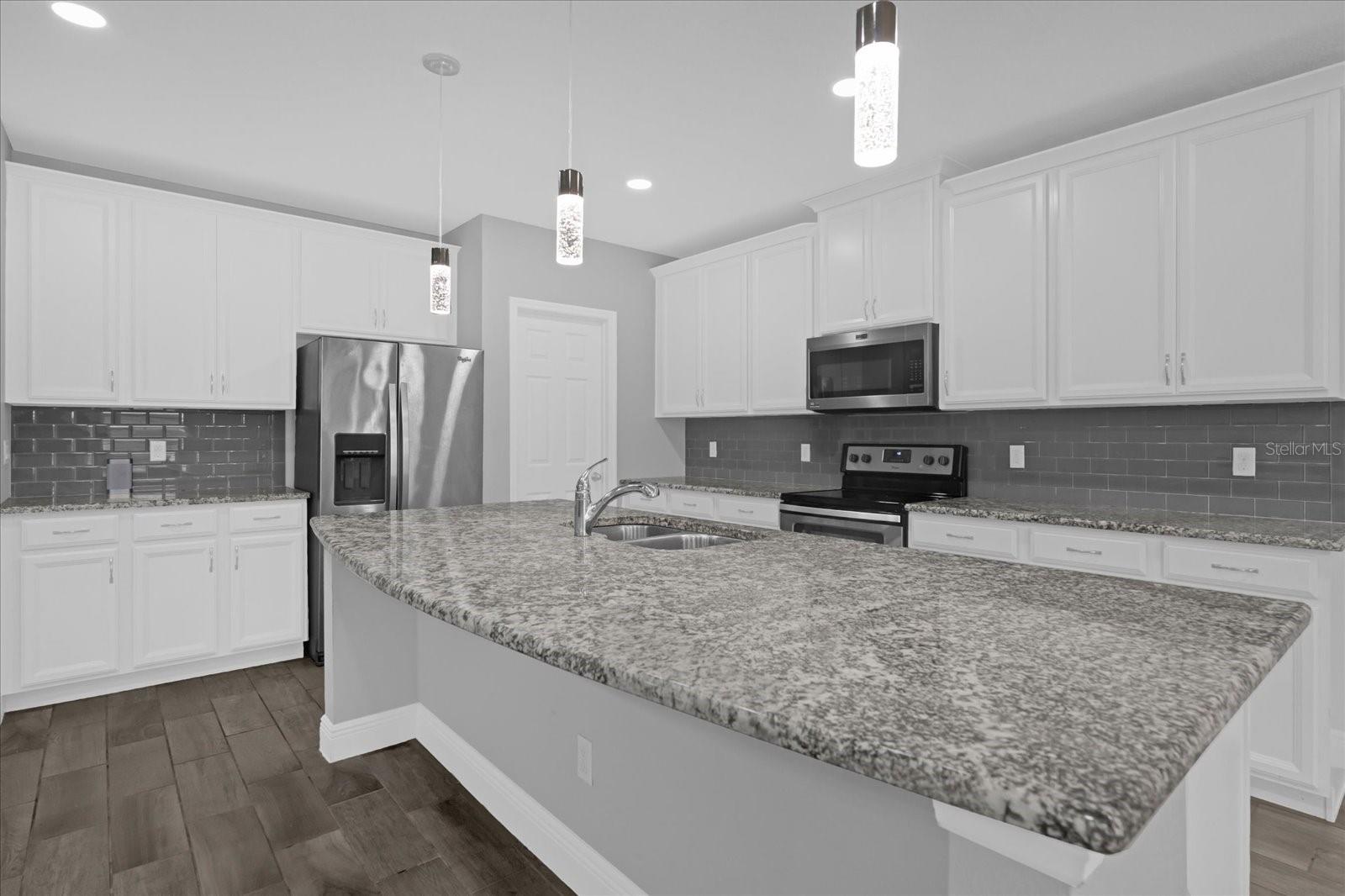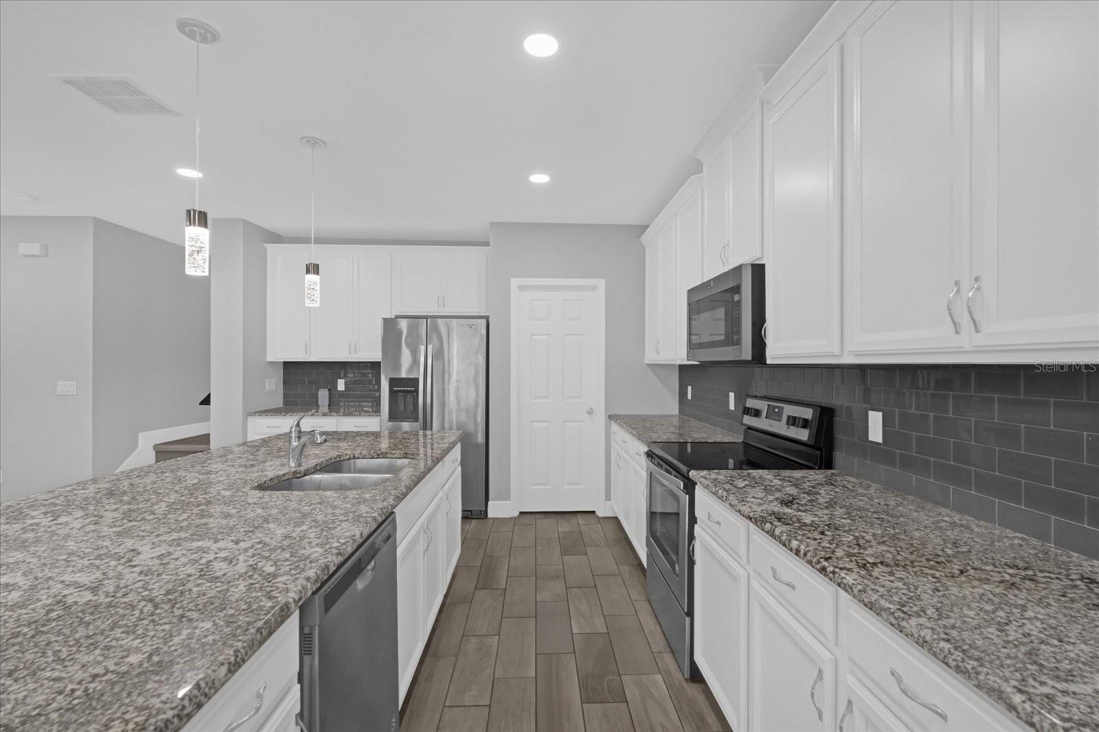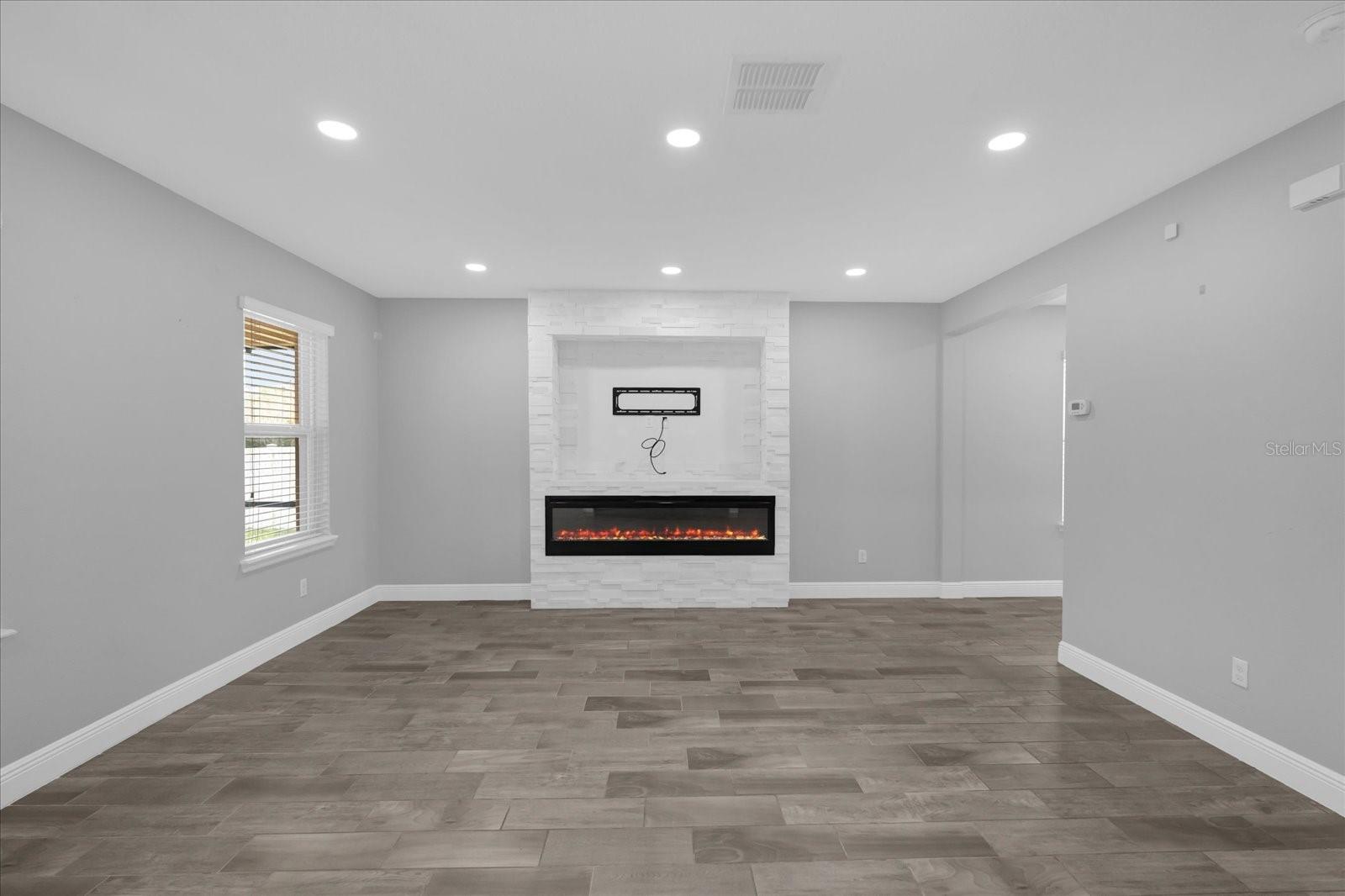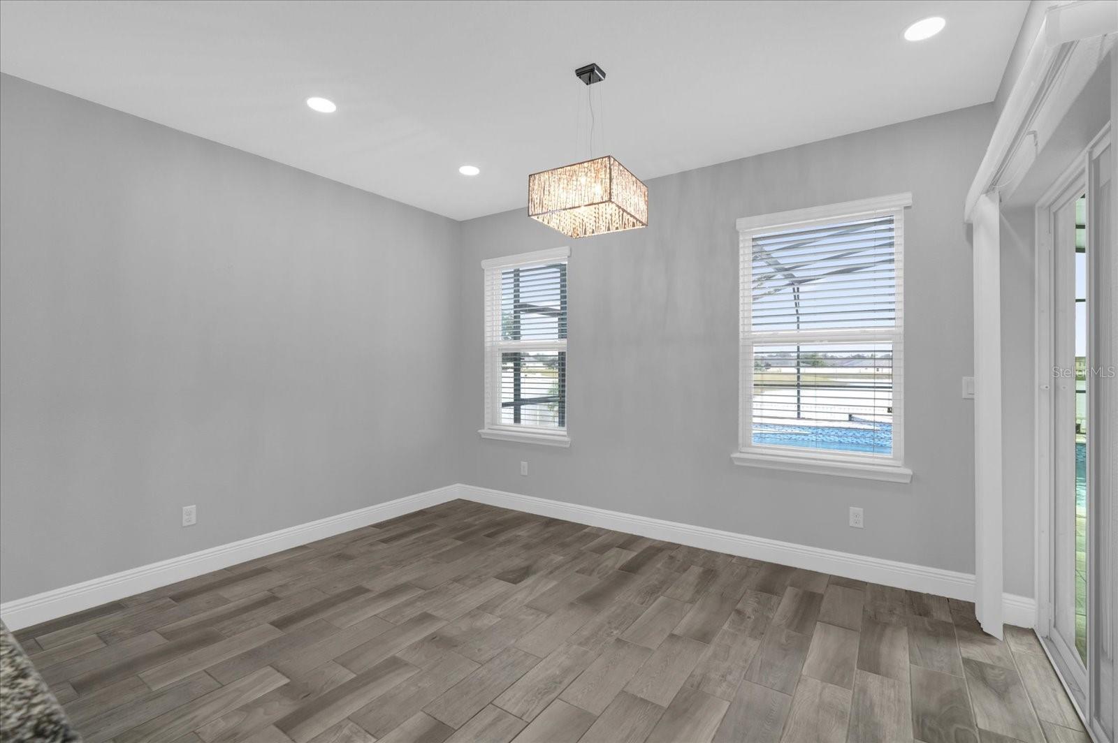 Welcome to this beautiful 2017-built home in Kissimmee, offering 2,307 square feet of thoughtfully designed living space. This 3-bedroom, 2.5-bathroom residence sits on an oversized lot and features an electric heated pool with a screen enclosure, providing the perfect spot for year-round enjoyment. The property boasts stunning views of a peaceful pond and borders wooded conservation area, creating a serene backdrop for daily living. Inside, the first floor showcases attractive wood-style tile flooring and modern lighting throughout. The well-appointed kitchen features granite countertops, upgraded cabinets, and a spacious walk-in pantry. A decorative fireplace adds character to the living area. Upstairs, you'll find luxury vinyl flooring and a versatile loft space that could easily serve as a fourth bedroom, home office, or entertainment area. The convenient second-floor laundry room adds to the home's practical layout. The primary bedroom is a true retreat, complete with a relaxing soaking tub and an impressive walk-in dressing room closet featuring custom built-in shelves and drawers. Location is key, and this home delivers with easy access to major attractions. You're just 20 minutes from the airport, 25 minutes from theme parks, and 20 minutes from Downtown Kissimmee. This move-in ready home combines modern comfort with practical living, making it an ideal choice for those seeking a spacious and well-maintained property in a desirable Kissimmee location.