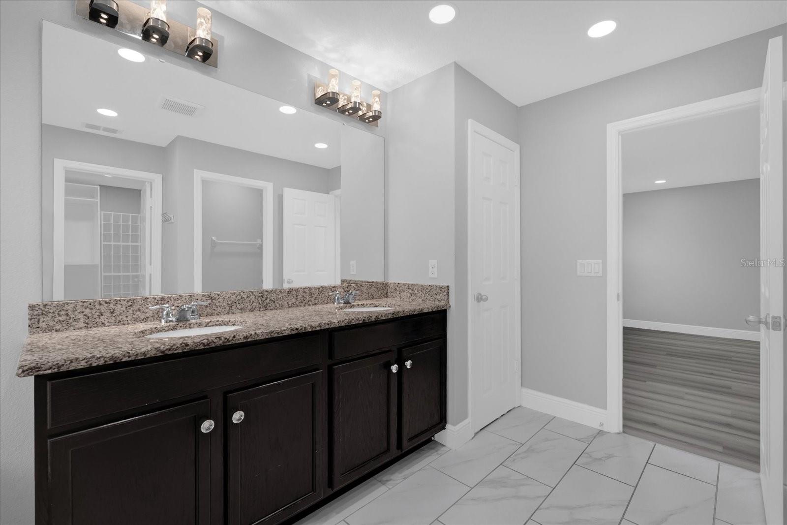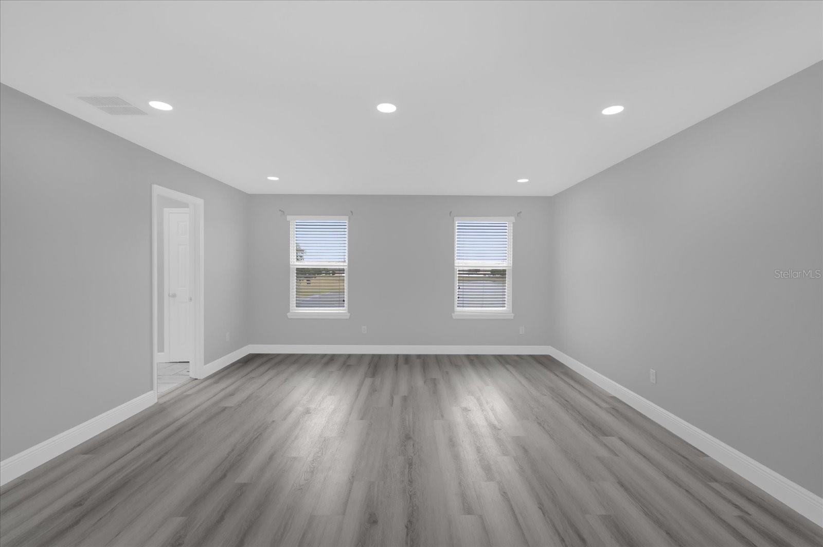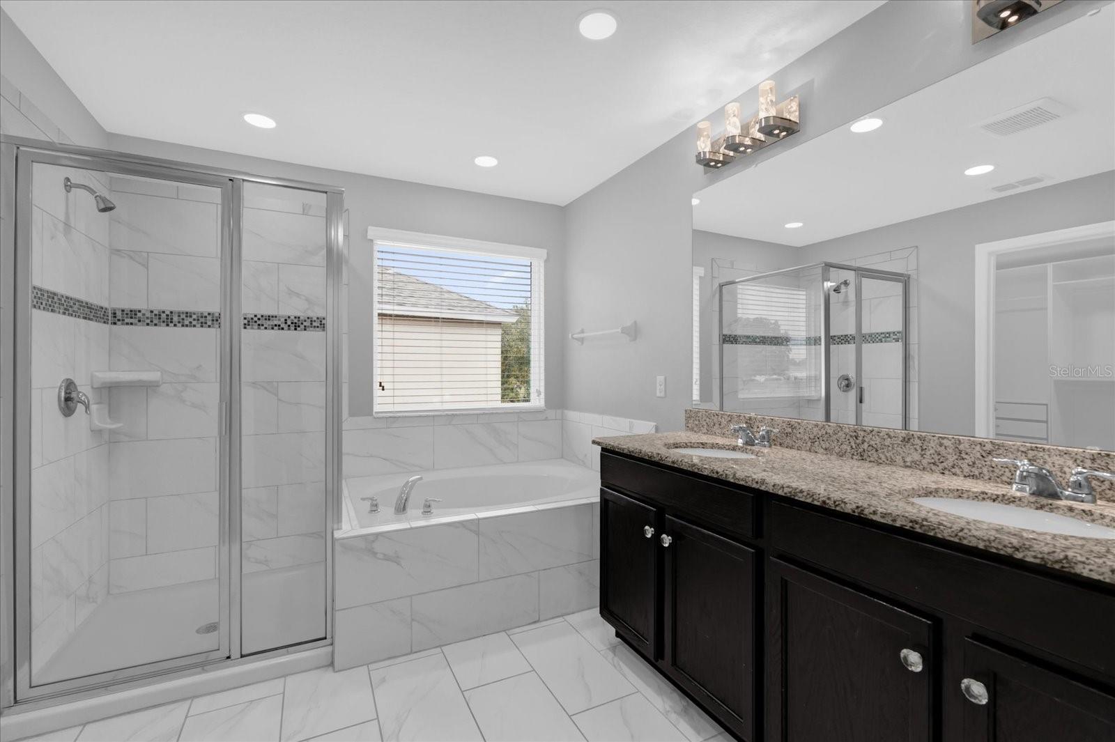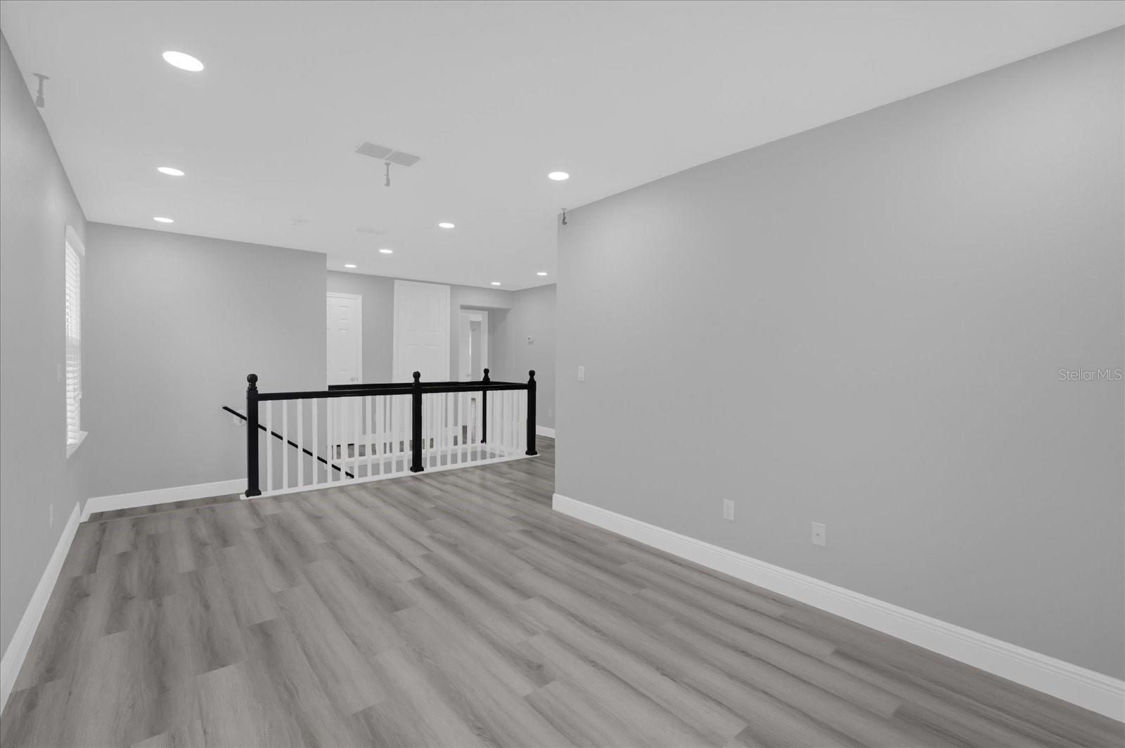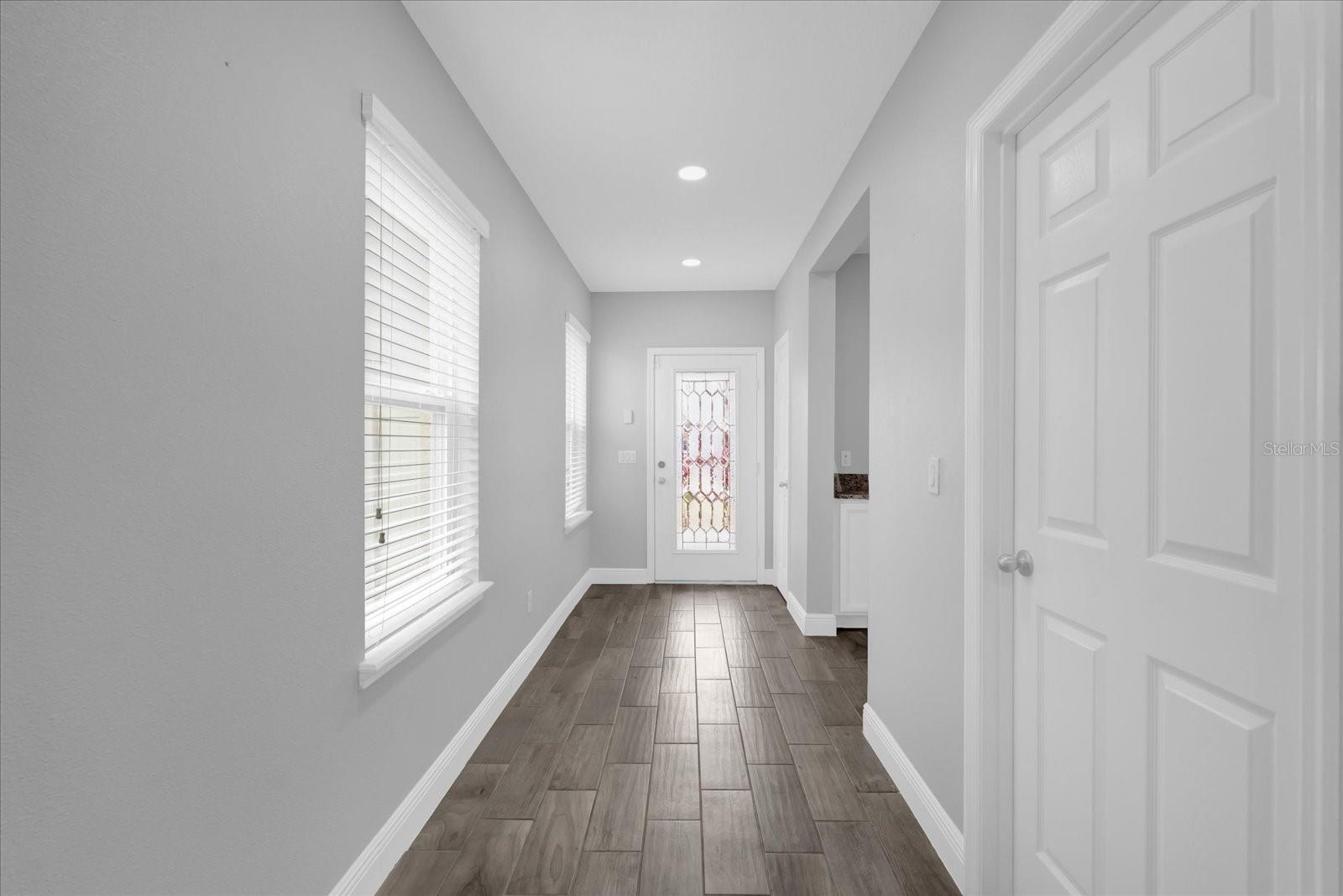 Welcome to this beautiful 2017-built home in Kissimmee, offering 2,307 square feet of thoughtfully designed living space. This 3-bedroom, 2.5-bathroom residence sits on an oversized lot and features an electric heated pool with a screen enclosure, providing the perfect spot for year-round enjoyment. The property boasts stunning views of a peaceful pond and borders wooded conservation area, creating a serene backdrop for daily living. Inside, the first floor showcases attractive wood-style tile flooring and modern lighting throughout. The well-appointed kitchen features granite countertops, upgraded cabinets, and a spacious walk-in pantry. A decorative fireplace adds character to the living area. Upstairs, you'll find luxury vinyl flooring and a versatile loft space that could easily serve as a fourth bedroom, home office, or entertainment area. The convenient second-floor laundry room adds to the home's practical layout. The primary bedroom is a true retreat, complete with a relaxing soaking tub and an impressive walk-in dressing room closet featuring custom built-in shelves and drawers. Location is key, and this home delivers with easy access to major attractions. You're just 20 minutes from the airport, 25 minutes from theme parks, and 20 minutes from Downtown Kissimmee. This move-in ready home combines modern comfort with practical living, making it an ideal choice for those seeking a spacious and well-maintained property in a desirable Kissimmee location.
