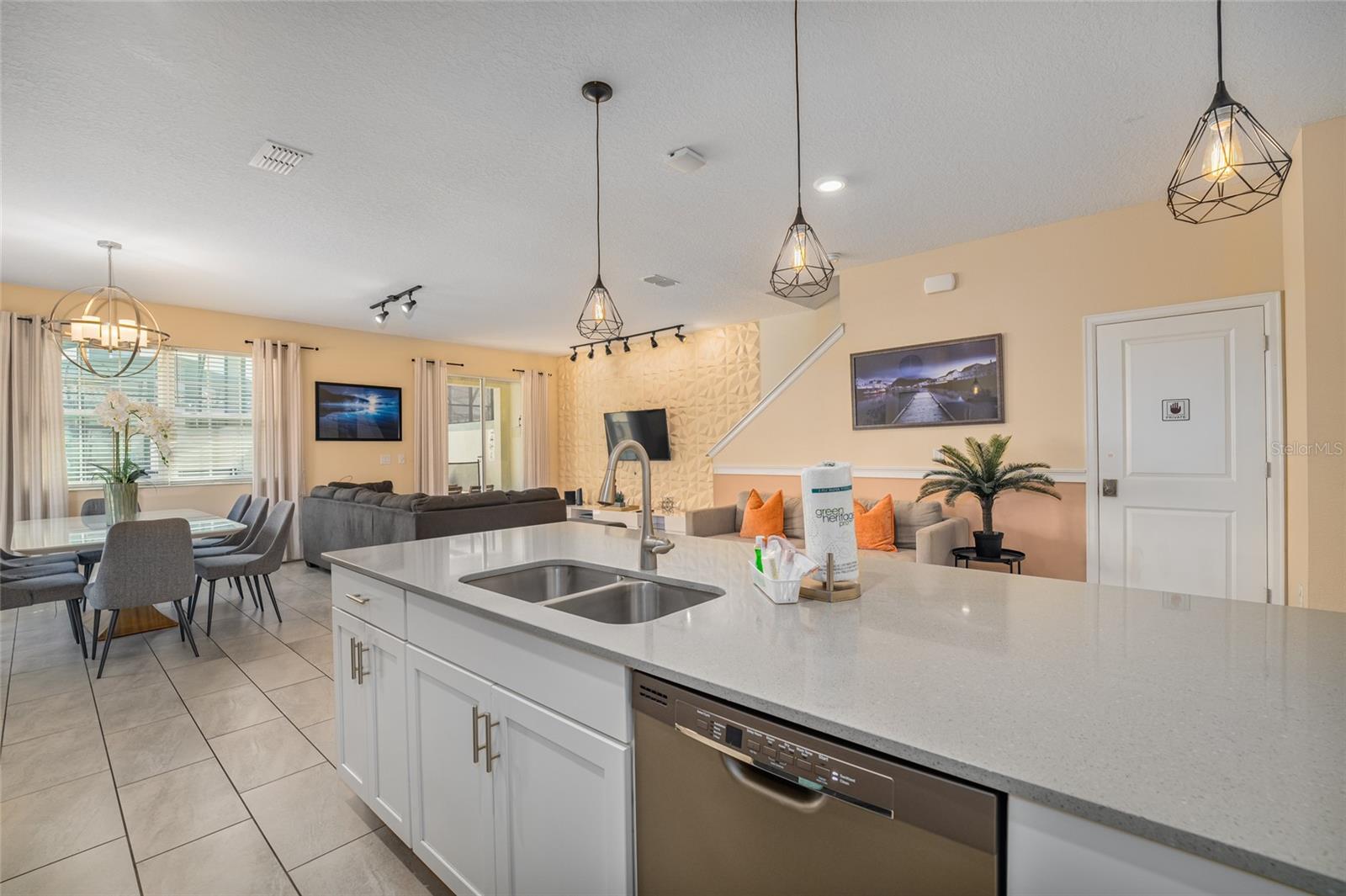 **BEAUTIFUL TOWNHOME 5 BED / 4 BATH Very well decorated. Located in a corner lot in one of the most desirable short-term rental resort communities with 5 bedrooms and 4 bathrooms, open floor plan, the kitchen is fully equipped and features 42" modern gray cabinets, brushed stainless steel appliances, all connected to the cozy living and dining room. The sliding door will lead to an extended covered patio area and a splash pool, where the deck offers plenty of room to relax. The Clubhouse offers a resort-style pool and lazy river, two water slides, and a splash park. Kayak rentals a 9-hole mini golf course, and sand volleyball courts for fun and entertainment are available. The fitness center is well equipped and is open for extended hours for our guests. There is an outdoor Tiki bar where you can order your favorite drink, food, or ice-cream. Whether using this home for your full-time residence or vacation home investment, this community and home will take you on a relaxing retreat, Perfectly located just minutes from Disney Parks, Vineland Premium Outlet, The Loop Mall, SeaWorld, Universal Studios, Walmart, Target, Lake Buena Vista Factory Stores, Gas Stations, Restaurants, and much more. Call now and set up a showing.
