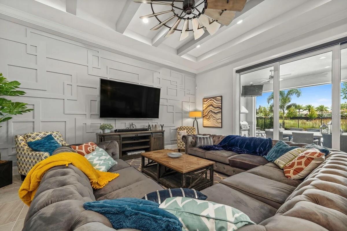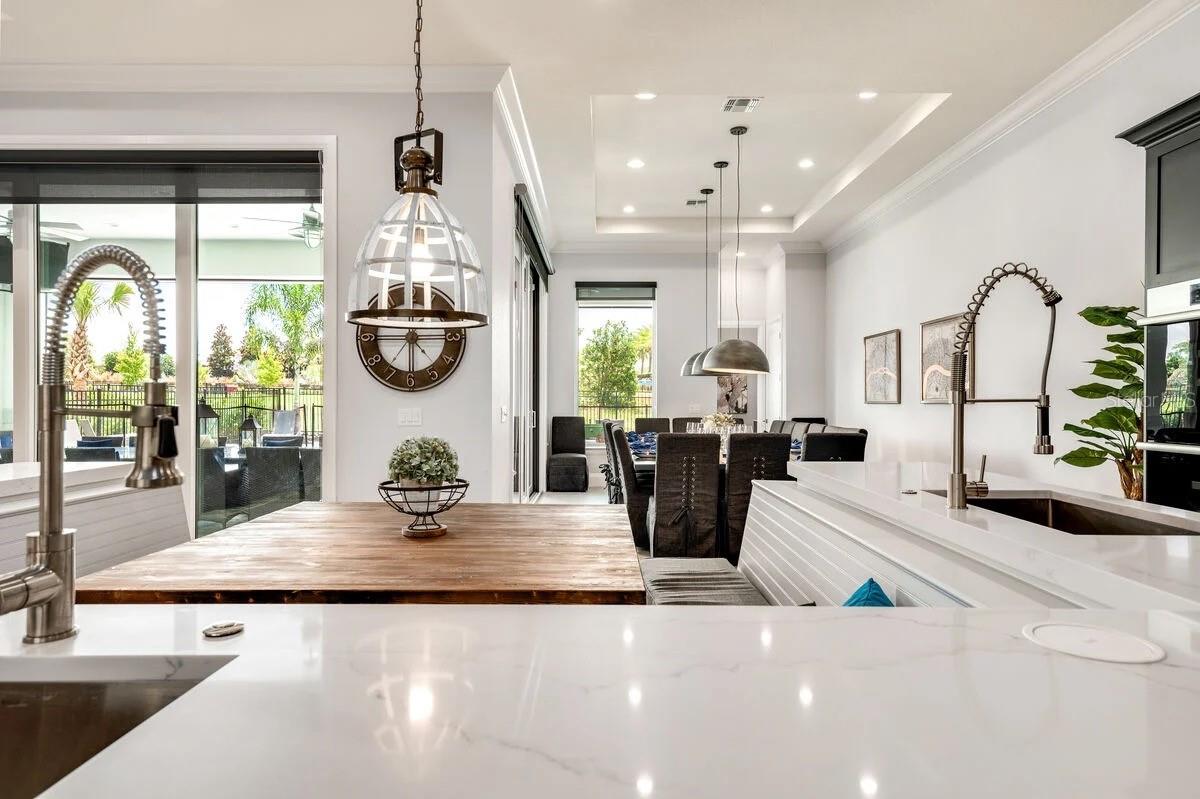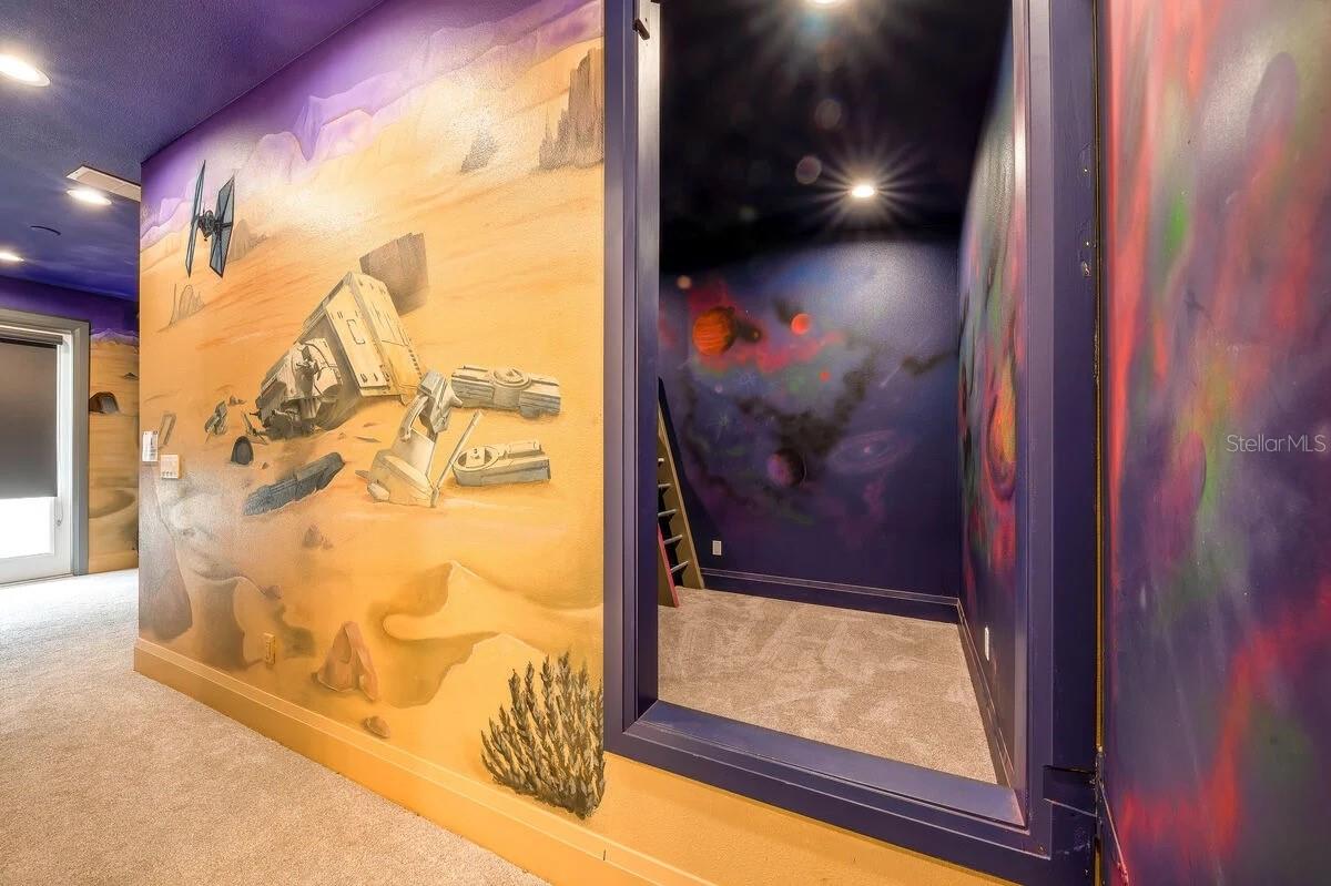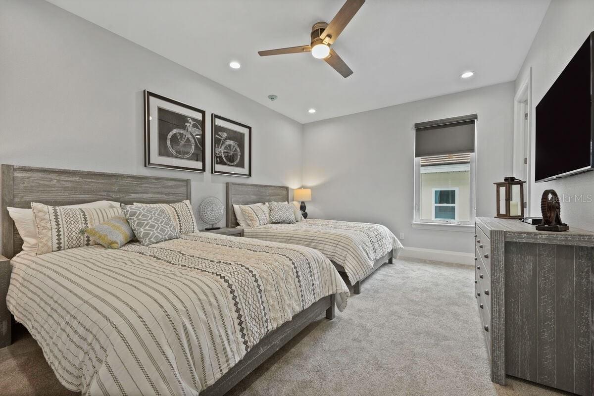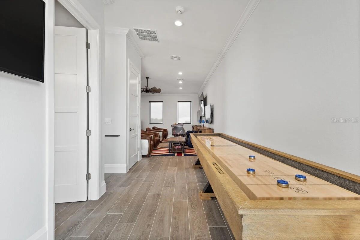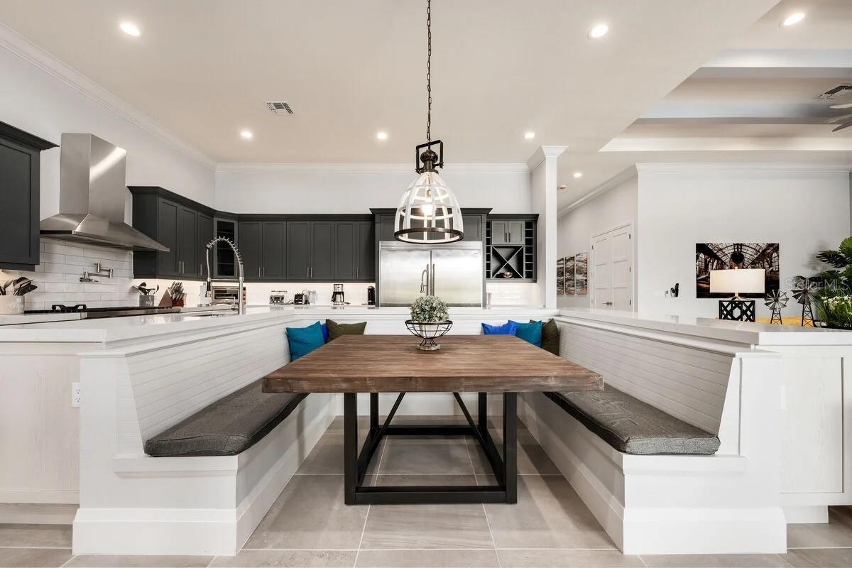 This Triple Deck delight is one of the very few true CUSTOM BUILT homes to grace one of Reunion's most sought after addresses- The Bear's Den. Enjoy one of the best outlooks in Reunion from the third-floor deck which can even provide a view to the DISNEY FIREWORKS! Each level of this home was built to ENTERTAIN. Its lofty privacy includes a hot tub, TV screens, and plenty of seating. Another highlight of this home is its game room on the 3rd-floor landing with Playstation 4, Xbox, Fast and Furious Superbikes Race, San Francisco Rush 2049 cat racing machines, and shuffleboard. The home theater has plenty of cushioned seating before a large projector screen. The first two floors contain 8 BEDROOMS that sleep up to 24 people! With an open planned floor plan, the living area is bright and spacious with a large wrap-around sofa before a large wall-mounted TV. The stunning kitchen with stainless steel appliances and granite countertops includes an over-sized double-sink kitchen island. The island counter wraps around a built-in seating area with cushioned benches around a kitchen table. Around the corner you'll find a fine dining table that seats 18 - you're entire party! This home includes two amazing THEMED BEDROOMS kids will love. Each room has two bunk beds (sleep 4) custom made to fit each theme. Whether kids love to zoom through faraway galaxies or live the life of a princess, they will be fully immersed. One upper bunk bed has a secret passage through a slide that takes kids to a secret playroom filled with soft foam blocks. Adults need not worry - alternative access is available! For playtime outdoors, there's a playground only a stonecast away, just behind the home. All of the other bedrooms are King-size with one exception: a room for two with separate Queen-sized beds. All of the rooms have their own TVs and there is an additional gathering room with a large comfy wrap-around sofa before a wall-mounted big-screen TV. The private pool has a spillover spa and the pool deck has plenty of sun loungers. A kids' safety fence is available. The lanai includes a summer kitchen with a BBQ grill. The patio dining table seat 16, and there are a few additional chairs scattered about. This home offers everyone in your family or group the comfort and entertainment that makes a stay in the Orlando area something to boast about. Reserve this beautiful property by booking it as early as possible and it can be part of your next vacation!