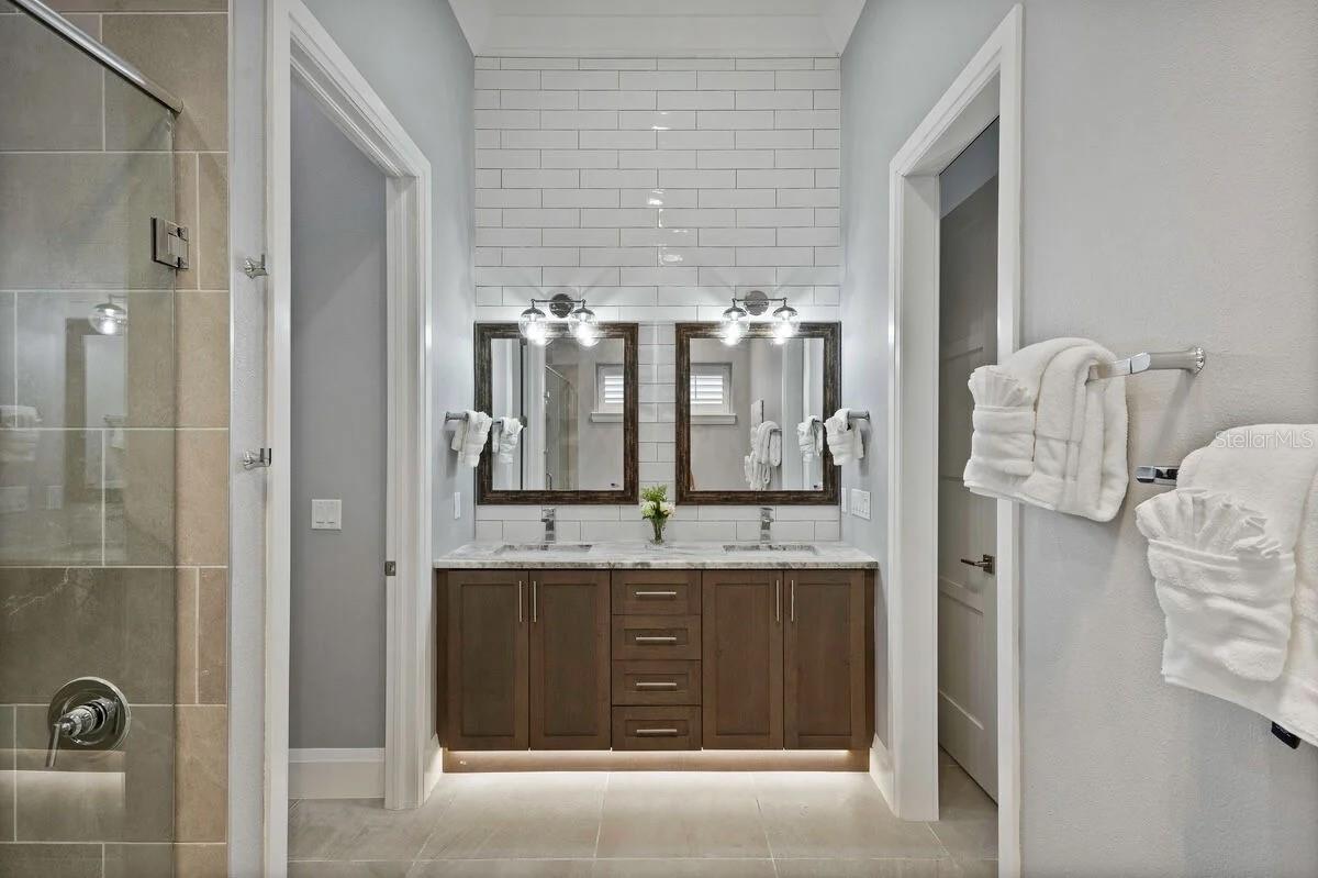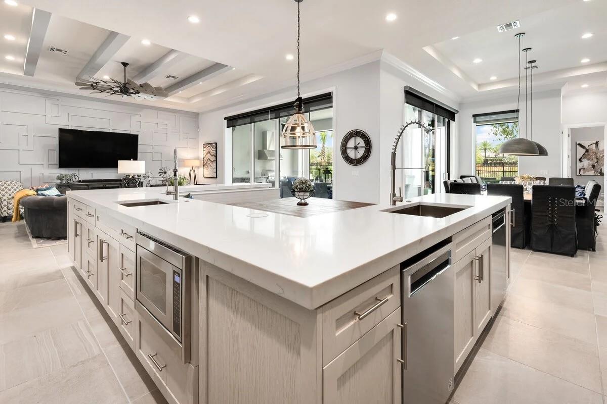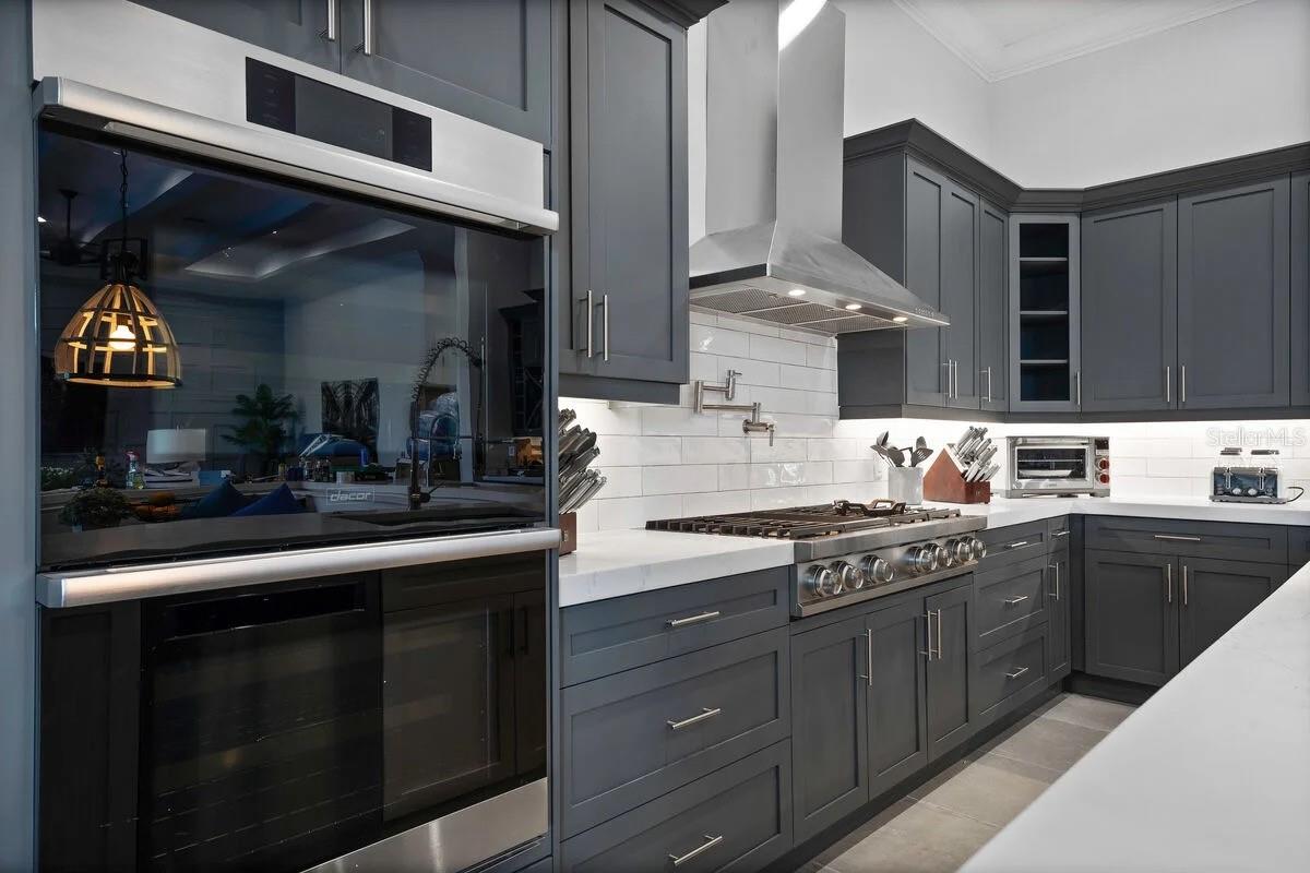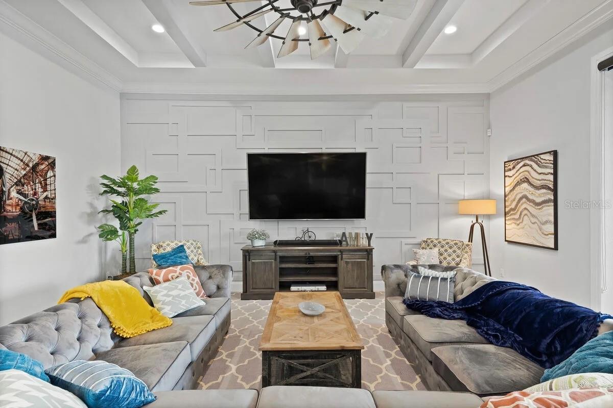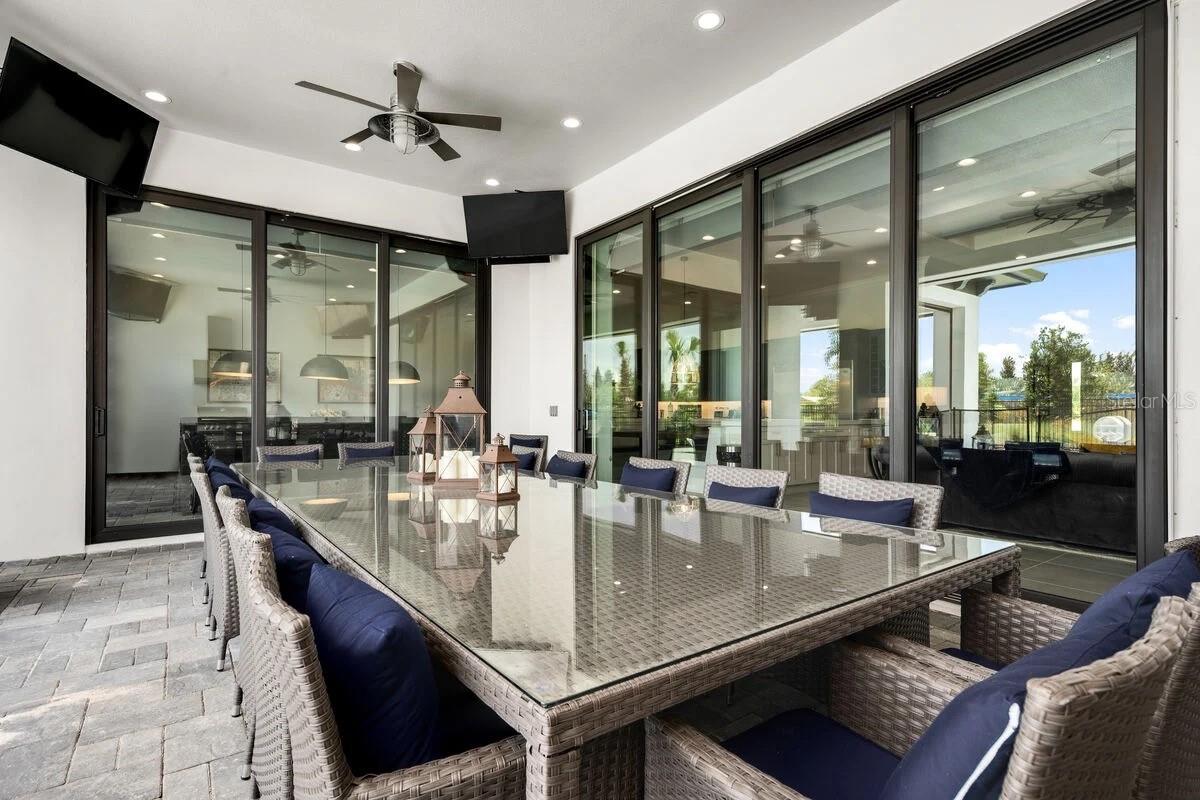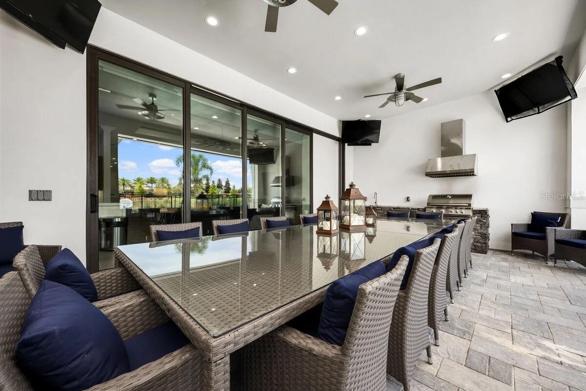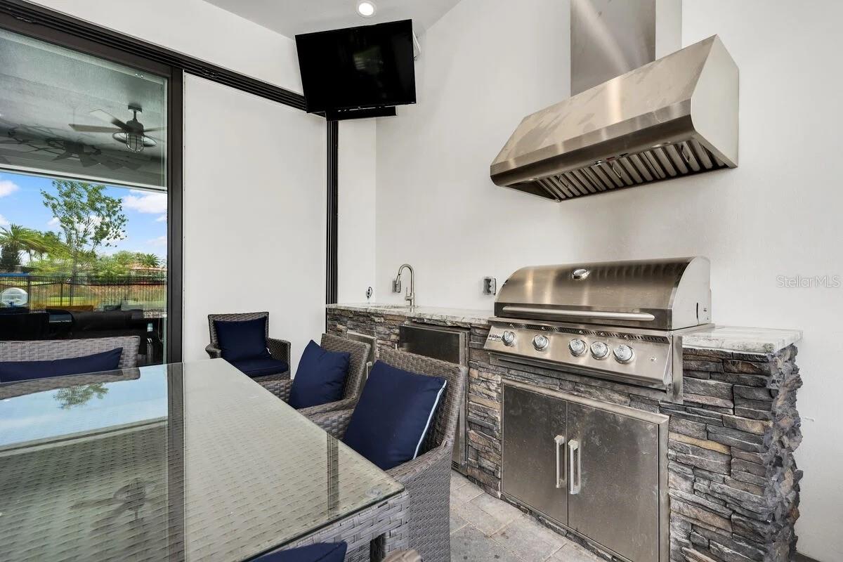 This Triple Deck delight is one of the very few true CUSTOM BUILT homes to grace one of Reunion's most sought after addresses- The Bear's Den. Enjoy one of the best outlooks in Reunion from the third-floor deck which can even provide a view to the DISNEY FIREWORKS! Each level of this home was built to ENTERTAIN. Its lofty privacy includes a hot tub, TV screens, and plenty of seating. Another highlight of this home is its game room on the 3rd-floor landing with Playstation 4, Xbox, Fast and Furious Superbikes Race, San Francisco Rush 2049 cat racing machines, and shuffleboard. The home theater has plenty of cushioned seating before a large projector screen. The first two floors contain 8 BEDROOMS that sleep up to 24 people! With an open planned floor plan, the living area is bright and spacious with a large wrap-around sofa before a large wall-mounted TV. The stunning kitchen with stainless steel appliances and granite countertops includes an over-sized double-sink kitchen island. The island counter wraps around a built-in seating area with cushioned benches around a kitchen table. Around the corner you'll find a fine dining table that seats 18 - you're entire party! This home includes two amazing THEMED BEDROOMS kids will love. Each room has two bunk beds (sleep 4) custom made to fit each theme. Whether kids love to zoom through faraway galaxies or live the life of a princess, they will be fully immersed. One upper bunk bed has a secret passage through a slide that takes kids to a secret playroom filled with soft foam blocks. Adults need not worry - alternative access is available! For playtime outdoors, there's a playground only a stonecast away, just behind the home. All of the other bedrooms are King-size with one exception: a room for two with separate Queen-sized beds. All of the rooms have their own TVs and there is an additional gathering room with a large comfy wrap-around sofa before a wall-mounted big-screen TV. The private pool has a spillover spa and the pool deck has plenty of sun loungers. A kids' safety fence is available. The lanai includes a summer kitchen with a BBQ grill. The patio dining table seat 16, and there are a few additional chairs scattered about. This home offers everyone in your family or group the comfort and entertainment that makes a stay in the Orlando area something to boast about. Reserve this beautiful property by booking it as early as possible and it can be part of your next vacation!