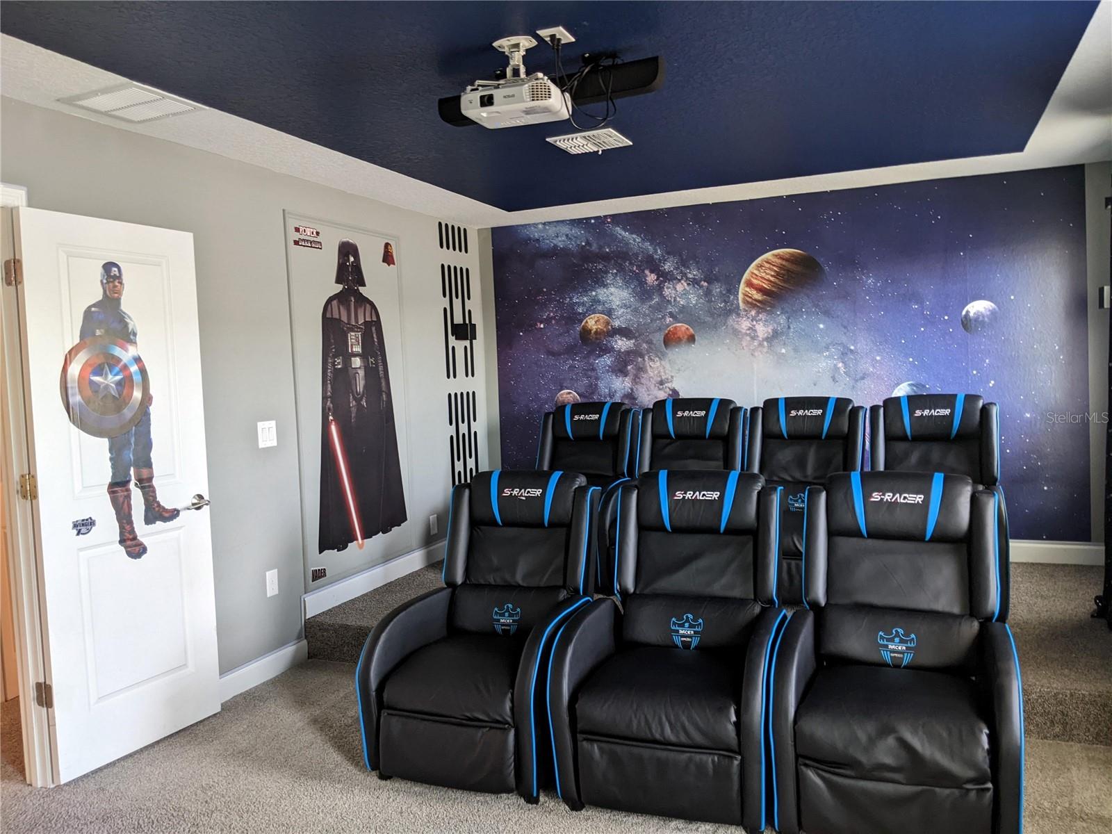 PRICE REDUCED! INVESTORS! This is the cash flow opportunity you've been waiting for. Beautiful corner lot, overlooking a conservation area. This stunning property is located in the beautiful community of "Cove at Storey Lake", one of the most popular vacation rental communities in Central Florida. This spacious single-family home is FULLY FURNISHED and custom designed. It is the Santiago model by Lennar Homes with 9 bedrooms, 5 bathrooms, a movie theater, and a game room. The modern kitchen features 42-inch cabinets, quartz countertops, and stainless steel appliances, with an open floor plan that blends into the family and dining areas. This home includes access to the community amenities, including a resort-style pool, lazy river, water slides, a splash pad and a tiki bar serving food and drinks. Additionally, you will have access to the indoor fitness center, mini-golf courses, a playground, and much more. This is a gated community that ensures the privacy and security of its guests. It is perfect for vacation rental investors as well as families looking to create lasting memories in the magical City of Orlando. MOTIVATED SELLER IS OFFERING $5,000 CREDIT TOWARDS BUYER'S CLOSING COSTS. This credit can be applied to BUY-DOWN YOUR INTEREST RATE. Don't miss it and schedule your private tour today!