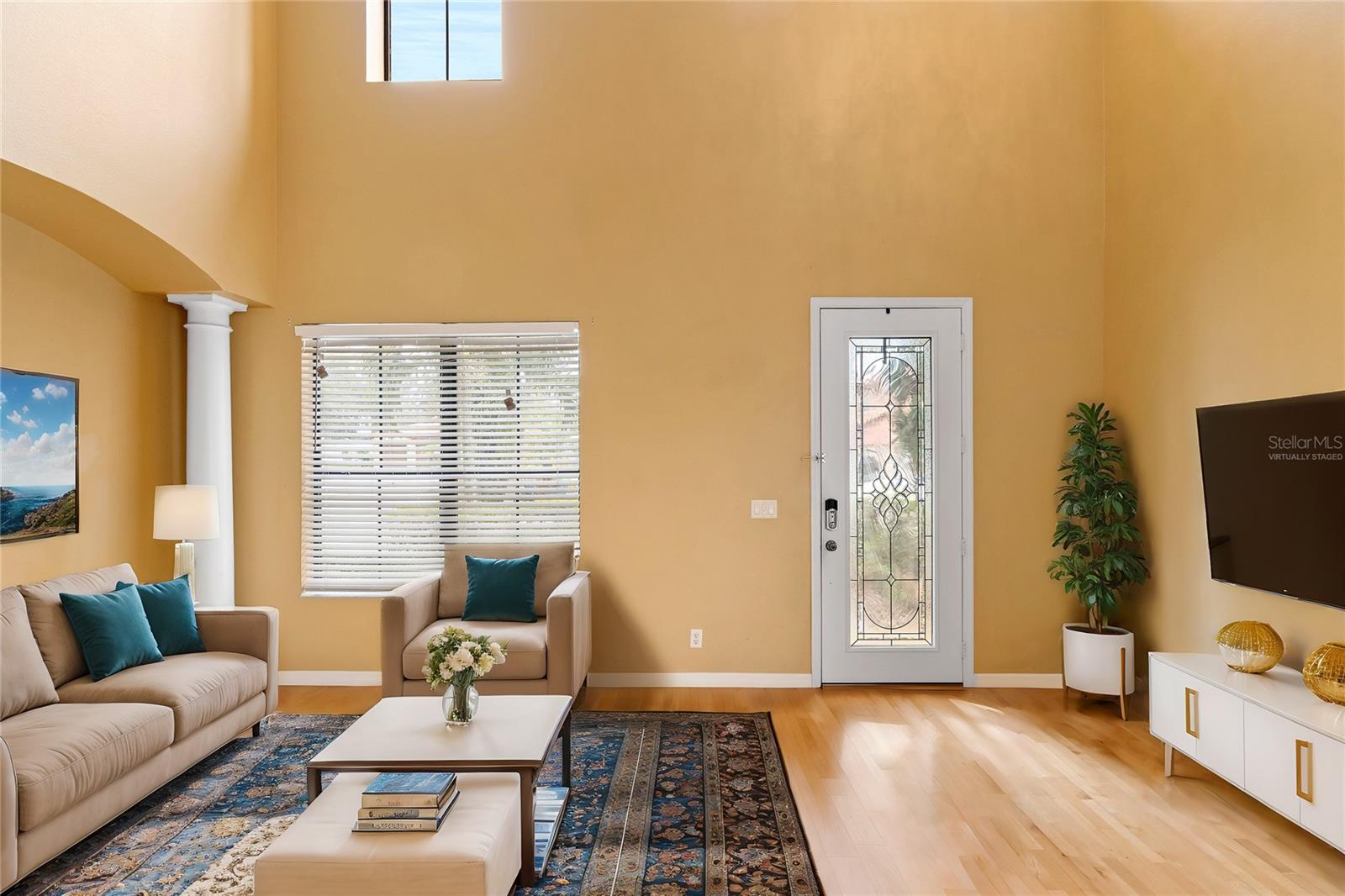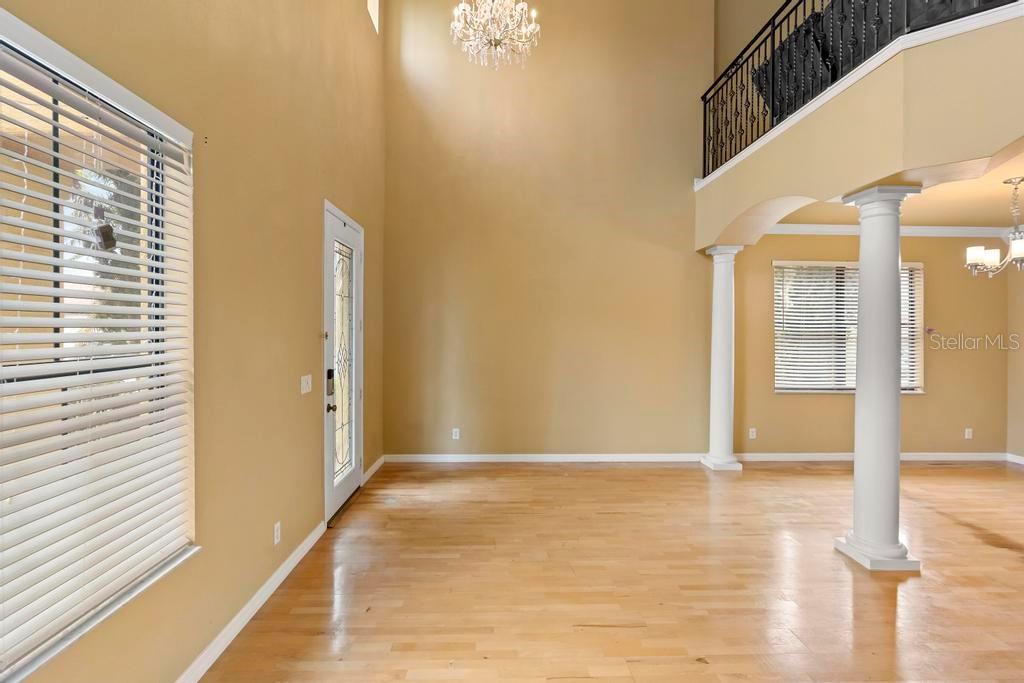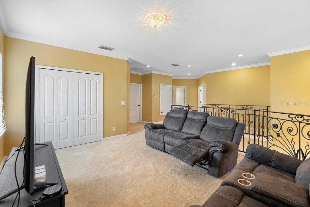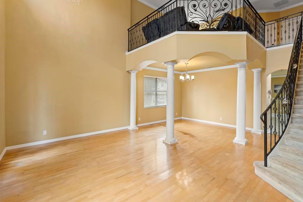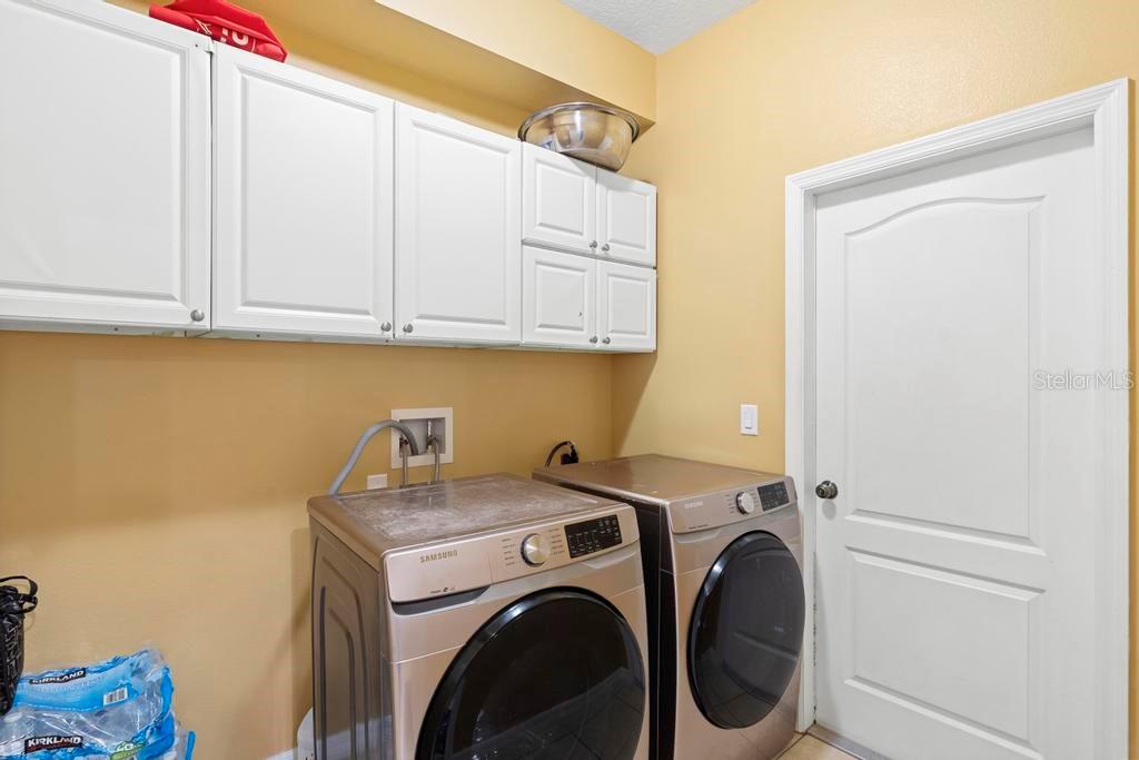 One or more photo(s) has been virtually staged. Welcome to this stunning & spacious 5 Bed, 3 Bath home with unique & highly sought-after double primary bedroom suites! The immaculate landscaping greets you as you make your way to the covered front entry with a decorative glass front door. Step inside the grand entry of this over 3,000 square foot home & you'll be greeted with high ceilings, a grand staircase, chandelier, gorgeous columns and plenty of natural light. The foyer opens up to the formal living room area and formal dining room combo with crown moulding. At the heart of the home is the welcoming family room flooded with natural light through large picturesque windows & seamlessly connected to the open kitchen. The chef-inspired kitchen is designed to impress with granite countertops, sleek stainless steel appliances, ample cabinetry with crown moulding, and a long breakfast bar overlooking the dinette area. The first-floor primary suite is a luxurious retreat with a walk-in closet and an en-suite bath through an arched doorway featuring a garden tub, a step-in glass shower, and dual sinks. Completing the downstairs is a laundry room with full washer & dryer hookup & built-in shelving connected to the spacious 2-car attached garage equipped with additional storage. At the top of the grand wrought iron staircase, you'll have an overlooking view of below from the upstairs living area making a perfect flexible space for relaxing or entertaining. The upstairs primary bedroom suite offers plenty of space as well along with an en-suite bathroom with a large, step-in glass shower, water closet & dual sinks. Two additional bedrooms are versatile and spacious and share a Jack-n-Jill full bathroom with dual sinks & full shower bath duo ideal for use as rooms for the family, guest rooms, or home offices. Downstairs, the large sliding glass doors in the main living area open up to the large covered and screen-enclosed lanai, perfect for outdoor dining or simply relaxing. Nestled on a corner lot in a peaceful, family-friendly neighborhood this home is unique & Highly Desirable! The Villa Sol community offers amenities such as private tennis courts, a glamorous, sparkling community pool, as well as a fitness center, park, and playground. Located just minutes away from top-rated schools, major shopping centers, local dining, and major roads such as US-192 and Florida's Turnpike, this property offers the best of both worlds: a serene suburban setting while still being close to all of the desired destinations in Kissimmee and Orlando. Don’t wait - Schedule a showing today! This property currently leases until 7/31/2025 at $2,800/mo.