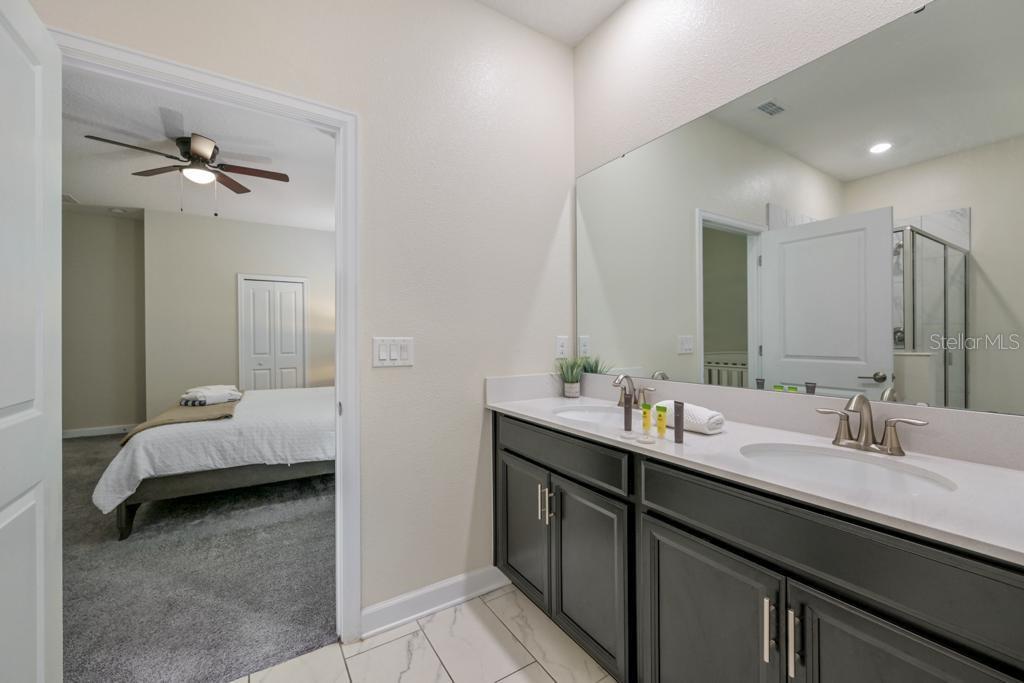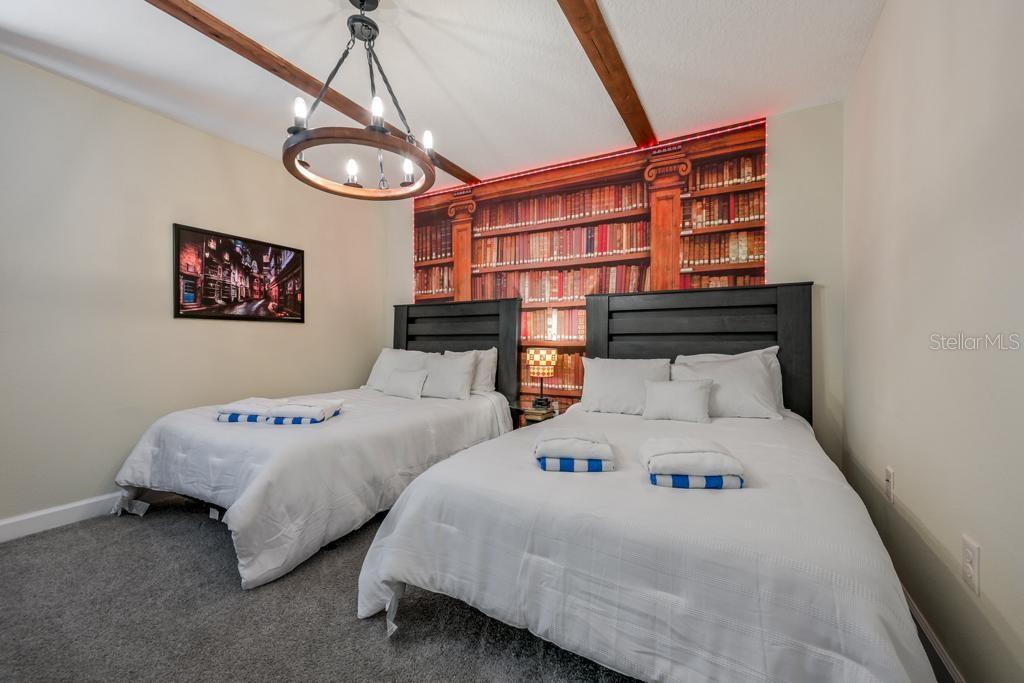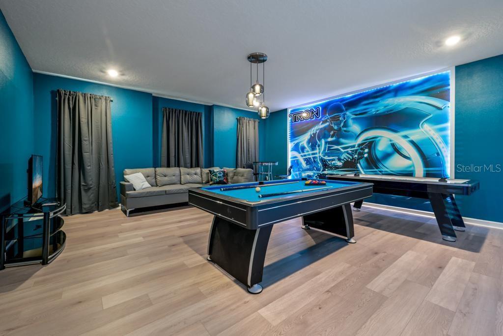 Discover an exceptional opportunity to own a breathtaking 10-bedroom luxury residence within the Storey Lake Resort—one of Orlando's most coveted vacation rental communities. This fully-themed, meticulously designed home is tailored for unforgettable family getaways and immersive vacation experiences, making it an ideal investment property with the flexibility for short-term rentals or Airbnb hosting. As you step into this expansive two-story haven, where modern sophistication blends seamlessly with comfort, you'll immediately notice that this home, built in 2020, is in pristine condition, with all key elements—roof, HVAC system, and water heater—practically brand new. The open-concept "Santiago" floor plan features striking 42-inch cabinetry, luxurious quartz countertops, and sleek, contemporary tile flooring throughout. The fully-equipped kitchen flows effortlessly into the living and dining spaces, creating an inviting atmosphere perfect for gatherings and entertainment. At the heart of the property lies the expansive pool and spa area, nestled within a covered lanai. This private oasis offers a tranquil retreat where you can unwind and bask in the Florida sunshine. Living in this resort-style community means indulging in an array of extraordinary amenities, including a grand clubhouse with concierge services, a delightful restaurant, and a resort-style pool complete with a Tiki bar, lazy river, and thrilling water slides. The whole family will enjoy the arcade, the state-of-the-art fitness center, and the fully-equipped business center. For movie nights, there's even an on-site theater for your entertainment. Ideally located just minutes from Disney World and all the exciting attractions Orlando has, this magnificent vacation home strikes the perfect balance between opulent living and an enviable location for creating lasting memories. Don’t miss the chance to make this extraordinary property your very own.