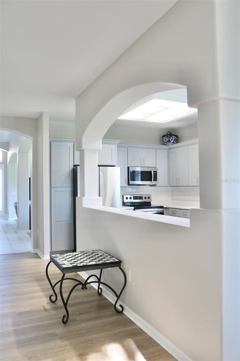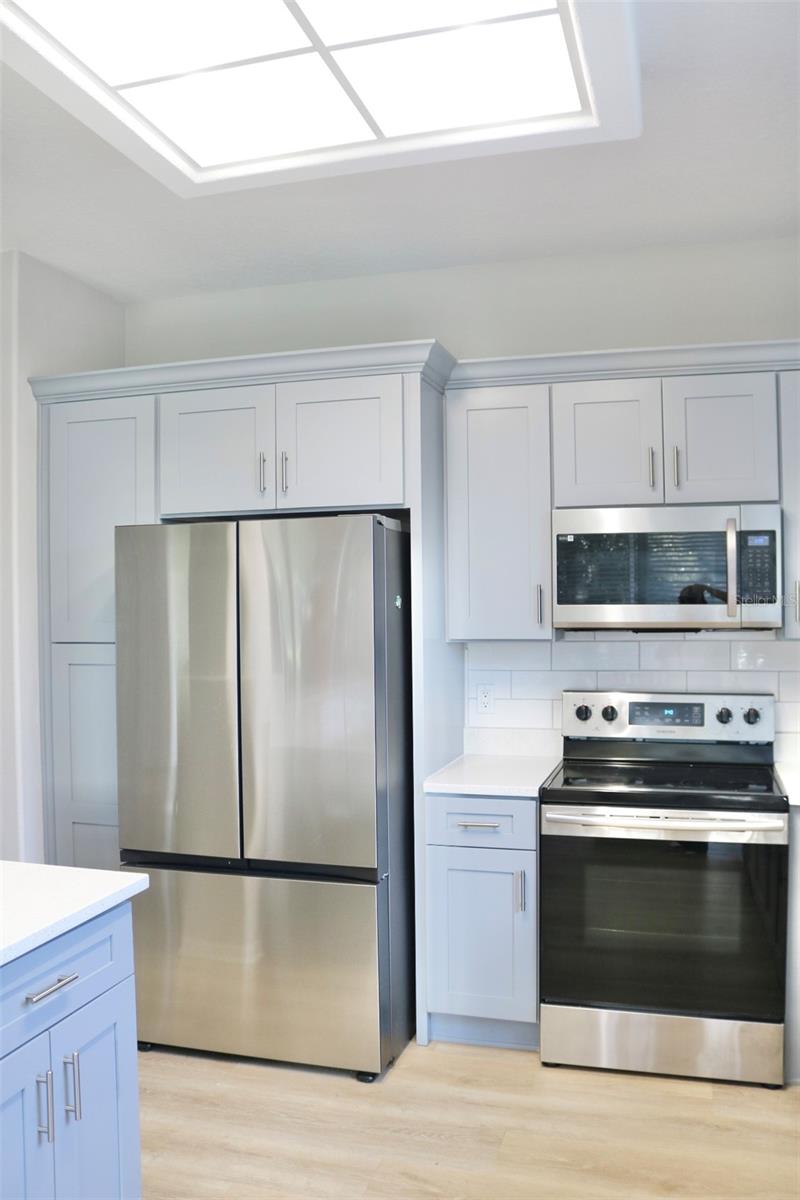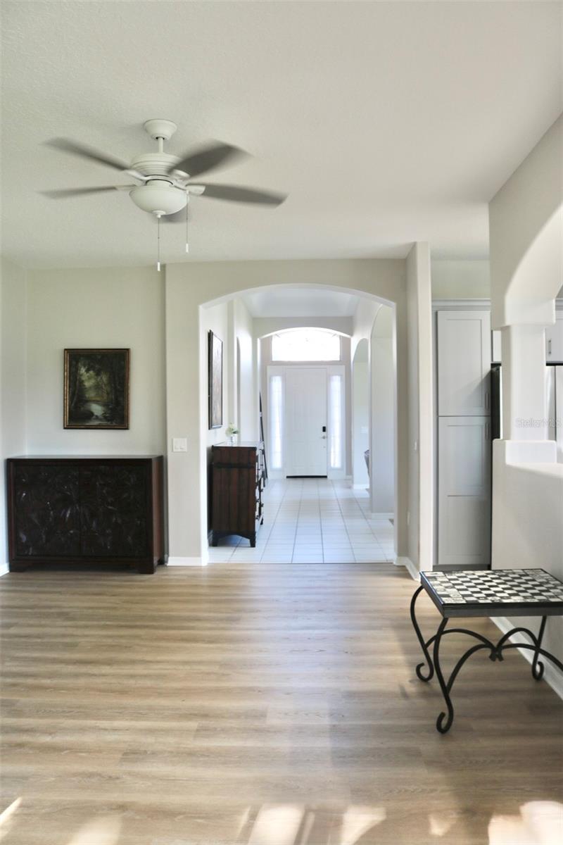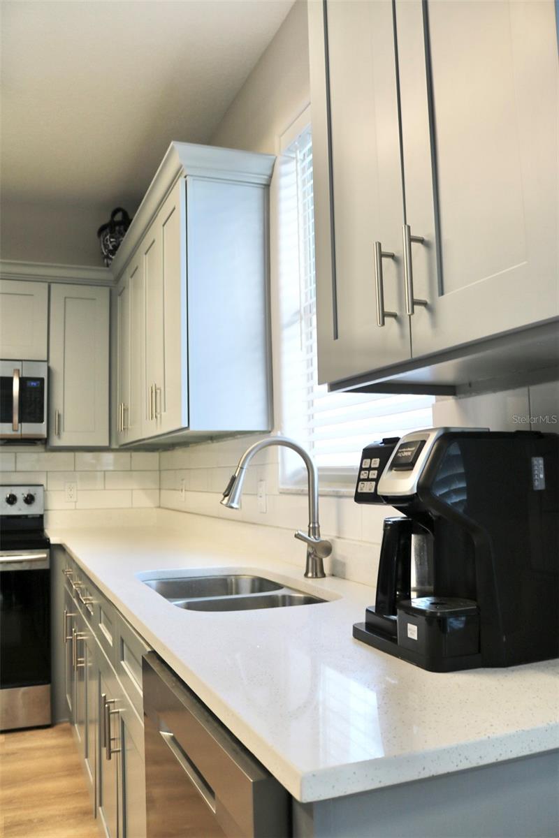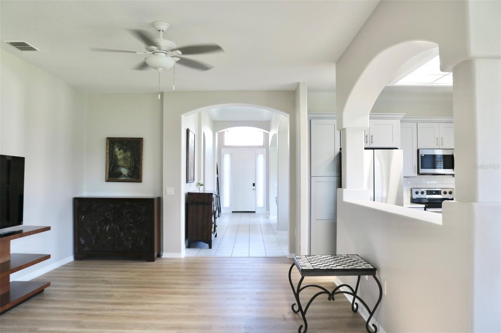 PRICE REDUCED, MOTIVATED SELLERS! HOME WARRANTY INCLUDED Nestled in the desirable and established community of The Oaks in Kissimmee, this beautifully maintained 4-bedroom, 3-bathroom single-family home offers both style and functionality. With 2-car garage and a freshly painted interior, this one-story home is move-in ready. A standout feature of the property is its paid-in-full photovoltaic solar panels, which means no monthly fees and very low (if any) electric bills. The tastefully remodeled kitchen boasts brand new pale gray cabinetry with self-closing doors and drawers, stunning quartz countertops, sleek tile, and stainless steel appliances, including a French door refrigerator. Throughout the home, you’ll find fresh vinyl plank flooring in all 4 bedrooms, the kitchen, laundry room, and family room, as well as new blinds. Enjoy spacious living areas, including a combined living/dining room and a cozy family room that opens to a breakfast bar and nook. Step outside to your screened-in patio, where you can relax while overlooking the 13th green. Whether you’re sipping your morning coffee or hosting family barbecues in the evening, this is the perfect spot to unwind. The primary suite, with views of the golf course, features a large walk-in closet, a secondary wall closet, double vanities, a garden tub, and a renovated shower. Designed with a split floor plan, this home offers three additional bedrooms and two more bathrooms, one of which includes backlit mirrors for a modern touch. A separate laundry room with a new washer and dryer rounds out the home's many conveniences. With a roof installed in June 2021, this home is truly a gem—don’t miss out on the chance to make it yours!