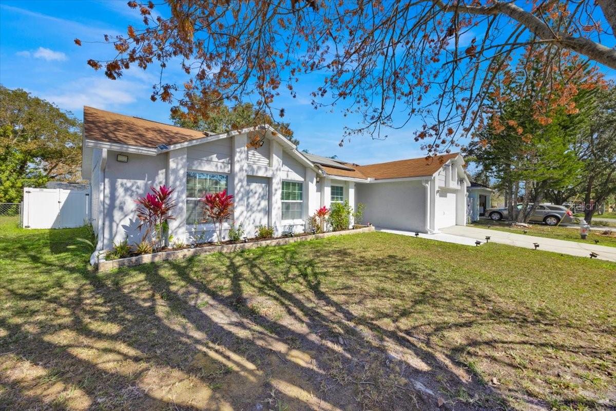 Stunning 3 bedroom 2 bathroom home in Kissimmee. Super low HOA that includes cable TV and internet service. Beautifully upgraded home featuring brand new energy efficient windows, new AC unit, and new water heater. This home is designed to comfort and savings. The solar panels are a great addition to reduce costs even more. The fenced in yard offers privacy and space to enjoy. Plantain trees, fruits and vegetables right there at your hands makes the feeling of being in a paradise even more real. Inside you will find upgraded bathrooms, new appliances, and stylish new front door. Located in a fantastic community with great schools, and easy access to shopping, dining and entertainment. Don't miss this move in ready home. Schedule your showing today!