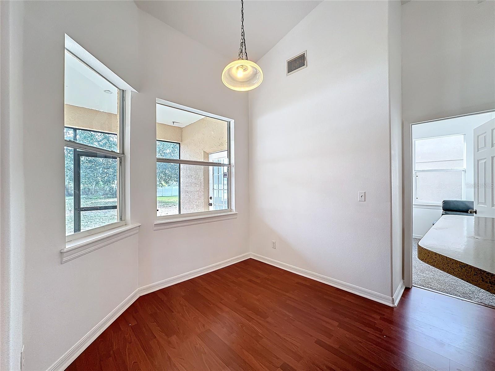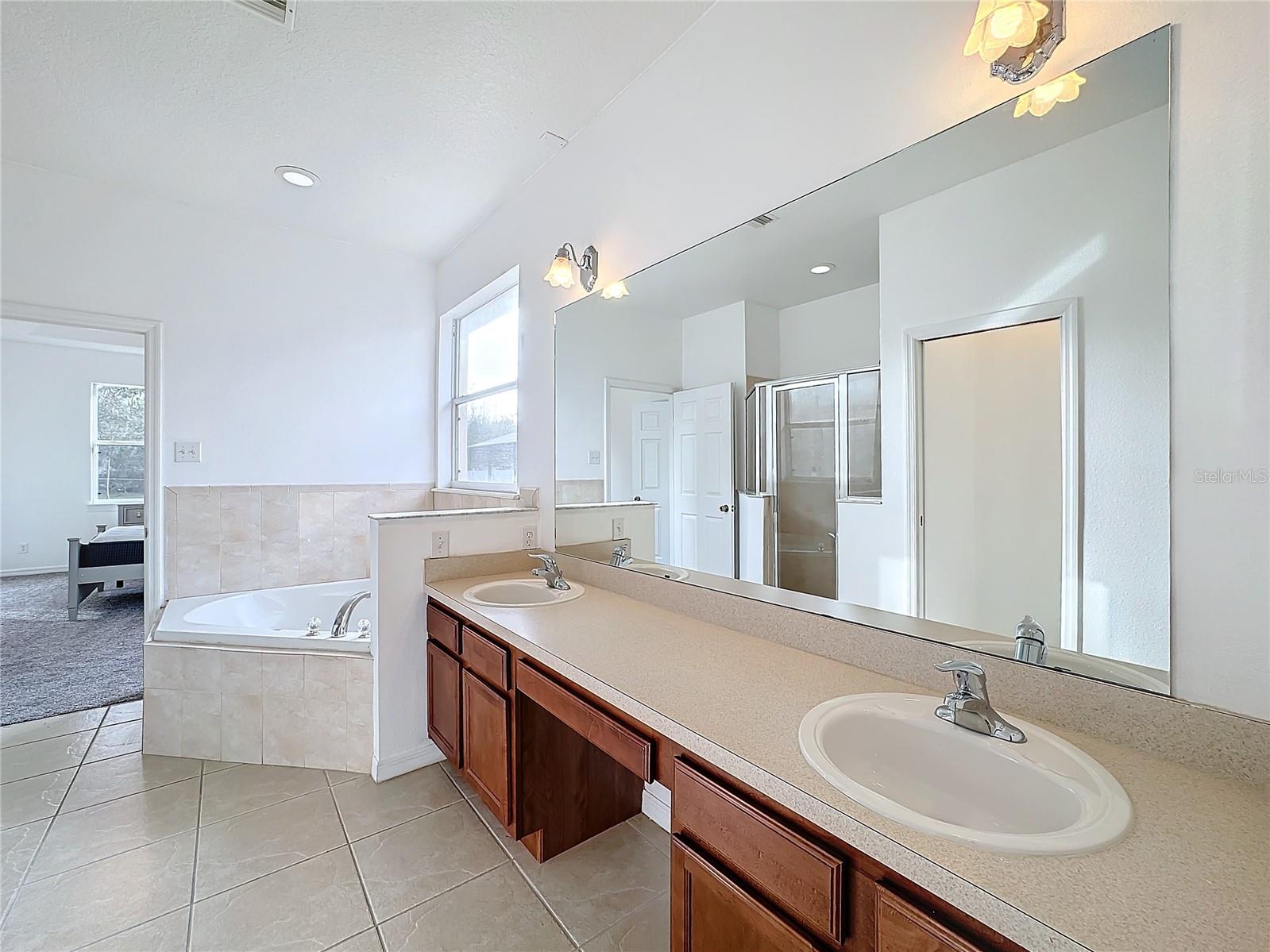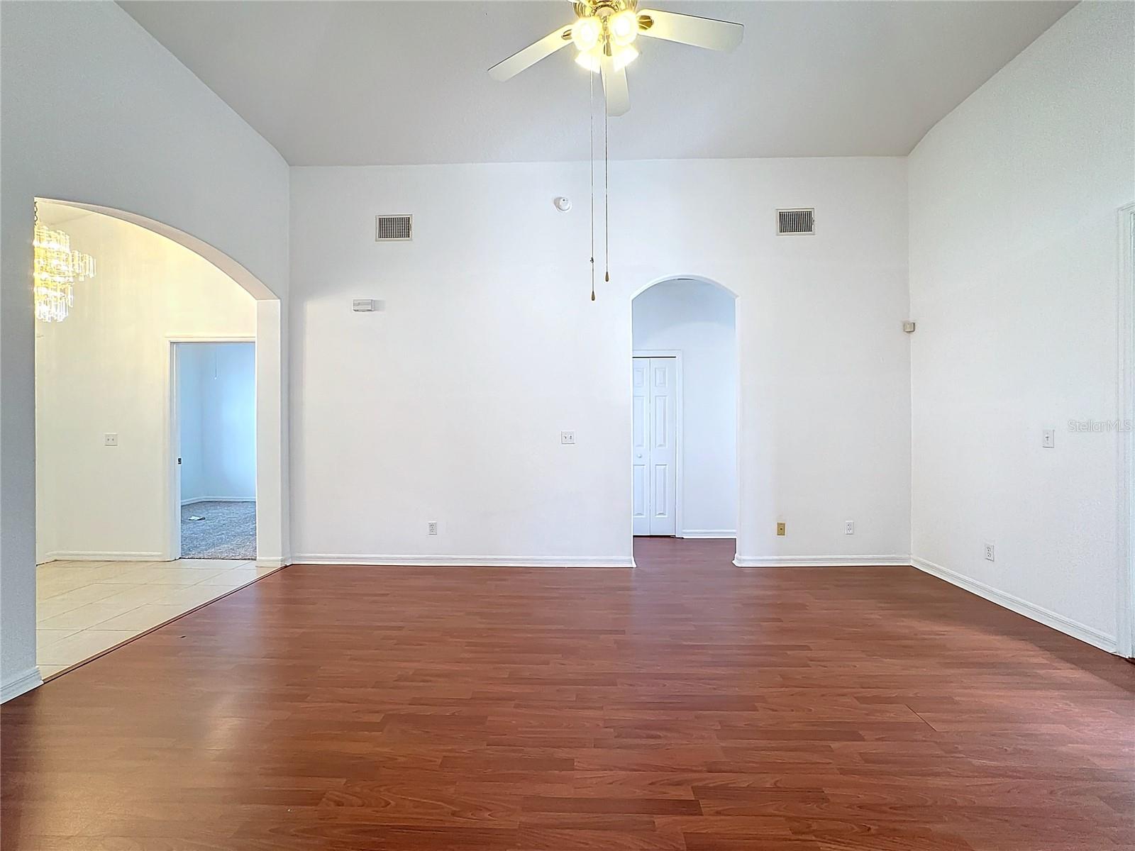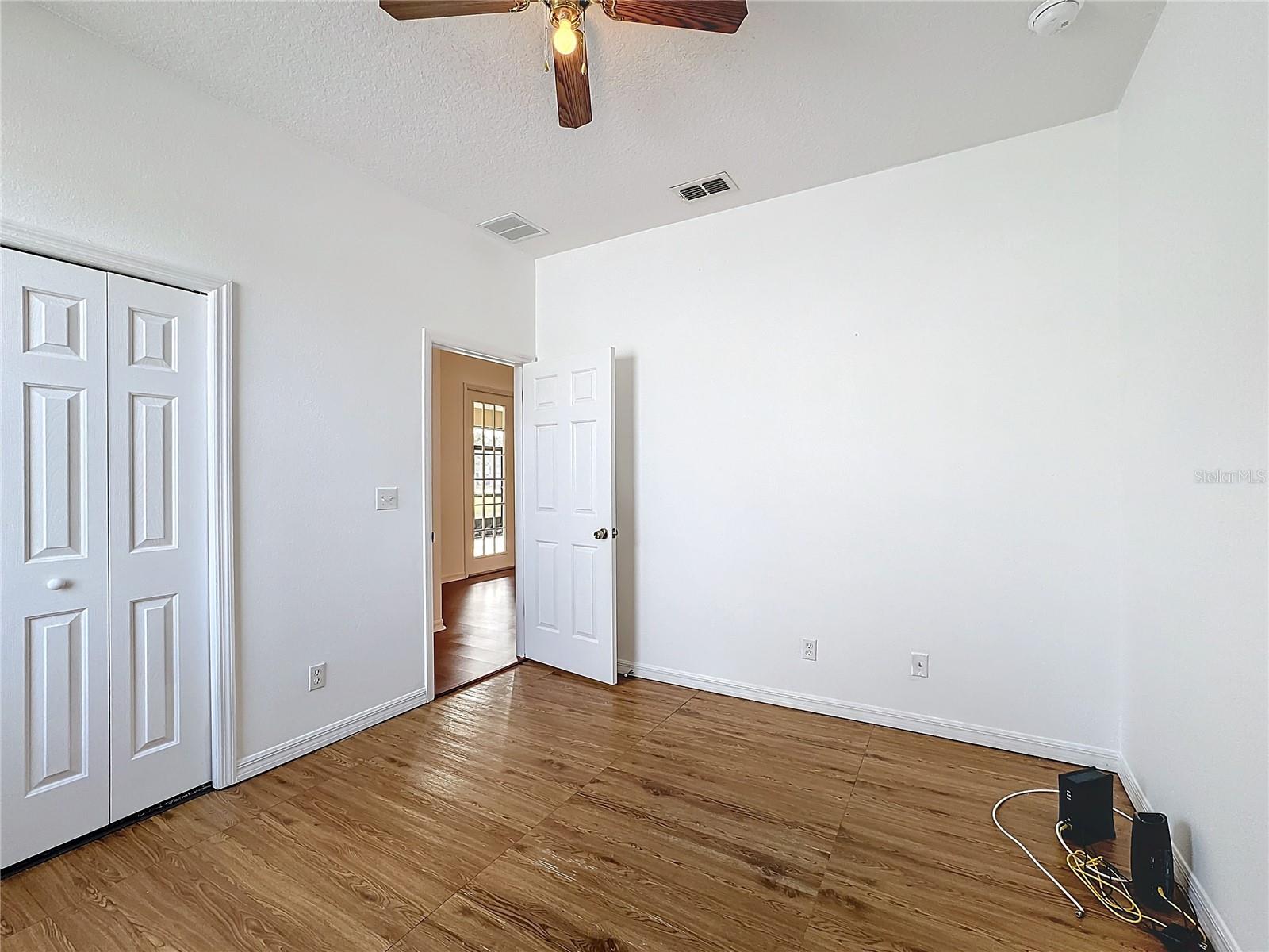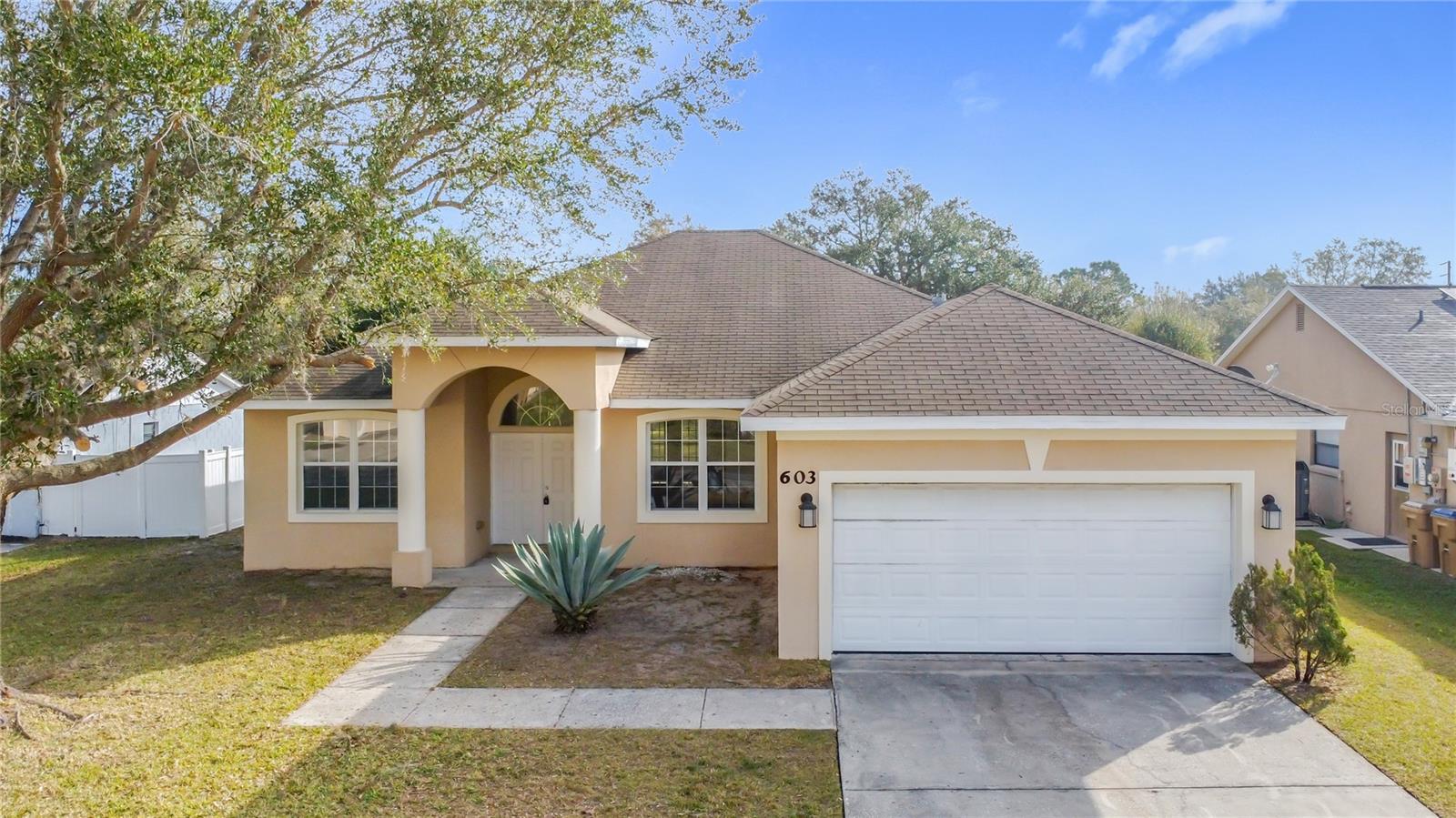 This stunning 4-bedroom, 2-bathroom home sits on nearly half an acre of land, offering ample space for both relaxation and entertainment. Enter through the grand double doors into an expansive foyer with soaring ceilings, which leads into the formal living and dining areas. The abundance of natural light flows throughout the entire home, creating a bright and inviting atmosphere. The upgraded eat-in kitchen is a true highlight, featuring some brand-new appliances, elegant countertops, a spacious breakfast nook, and a generous pantry. French doors lead you to a charming enclosed lanai room—an ideal space for entertaining family and friends. The vast backyard is a true gem, offering plenty of room for a pool, outdoor activities, and more. The spacious high-ceiling master suite includes a large walk-in closet, and the master bath boasts his-and-her vanity sinks, a soaking tub, and a separate stand-up shower. Three additional generously sized bedrooms provide ample space for family or guests. Recent updates include a brand-new water heater, a 2-year-old A/C unit, and fresh carpets in two of the bedrooms. HOA is not only incredibly low they have a community pool, playgrounds, fitness center, and more! Your home is conveniently located near popular shopping centers, restaurants, and major highways, this home offers the perfect combination of comfort and accessibility. Don't miss the opportunity to make this home yours—schedule your private tour today before it's gone!