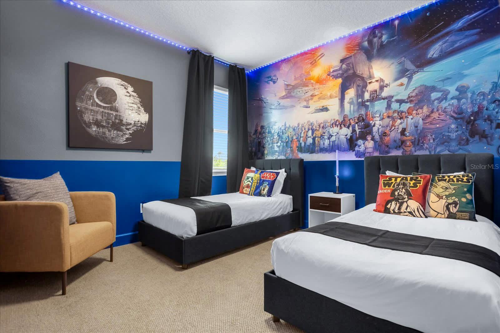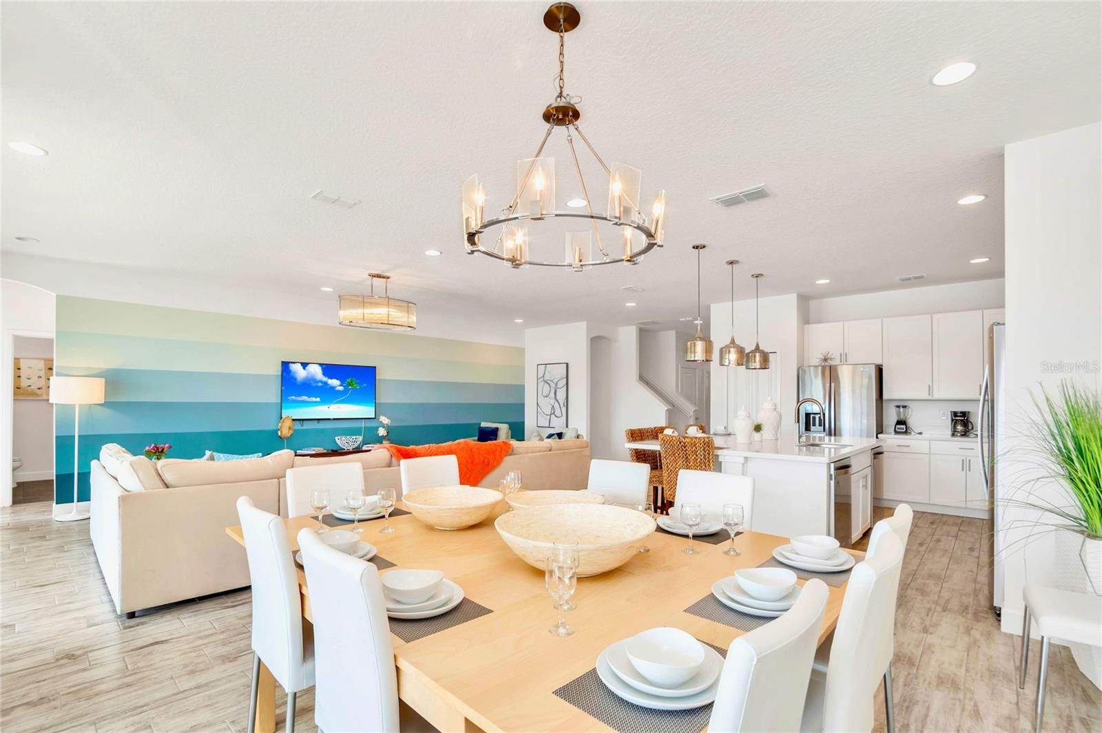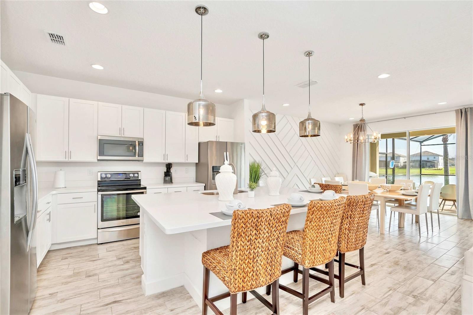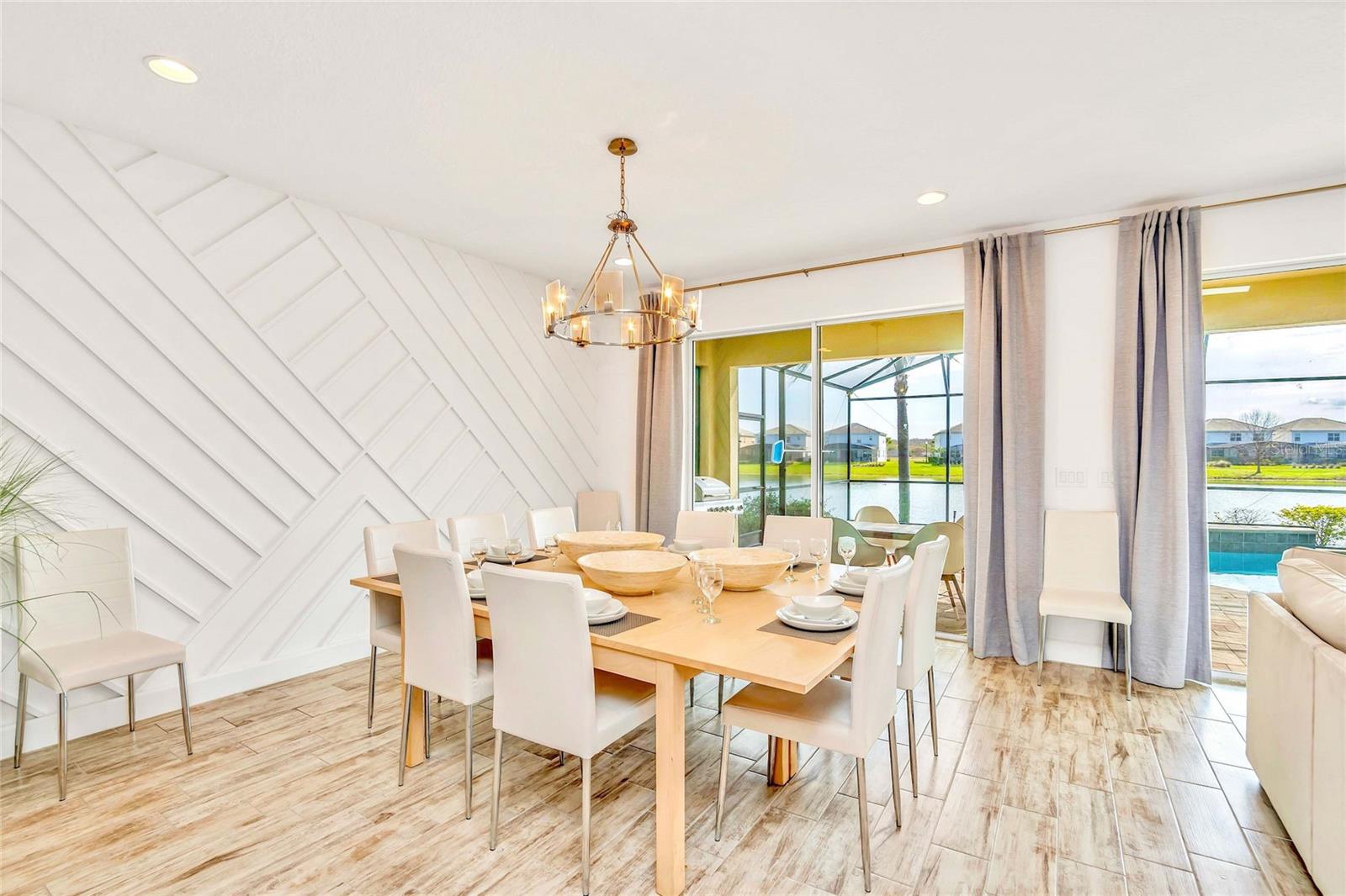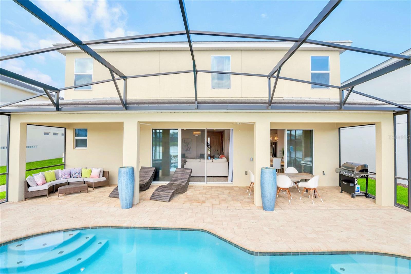 Beautiful fully furnished 10 bedrooms, 8 bathrooms home in Bella Vida Resort!!!! The open floor plan makes it perfect for entertaining. The kitchen features white quartz countertops, stainless steel appliances, a large island, overlooking a lake. The expansive patio with an in-ground pool and a jacuzzi makes a perfect place for the family to enjoy. The garage was converted to a game room with comfortable movie chairs, and a variety of games so everyone can enjoy a good time together. The house is professionally decorated with top-of-the-line quality. Every space was well designed, some of the rooms are decorated with Disney character themes. The community includes a resort style pool with cabanas, a luxurious clubhouse, high-speed internet and landscaping services that are included with the HOA. A must see!!!