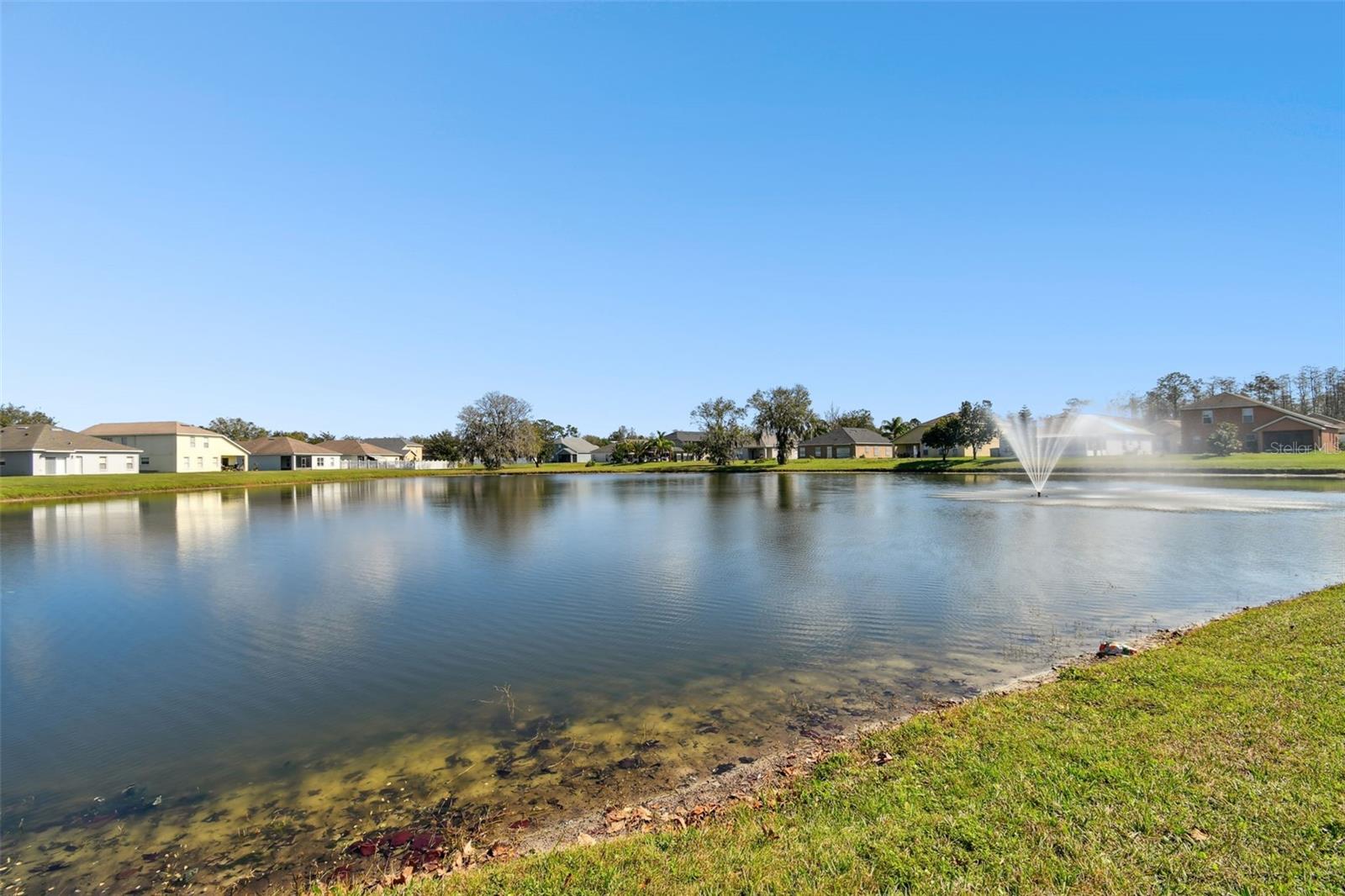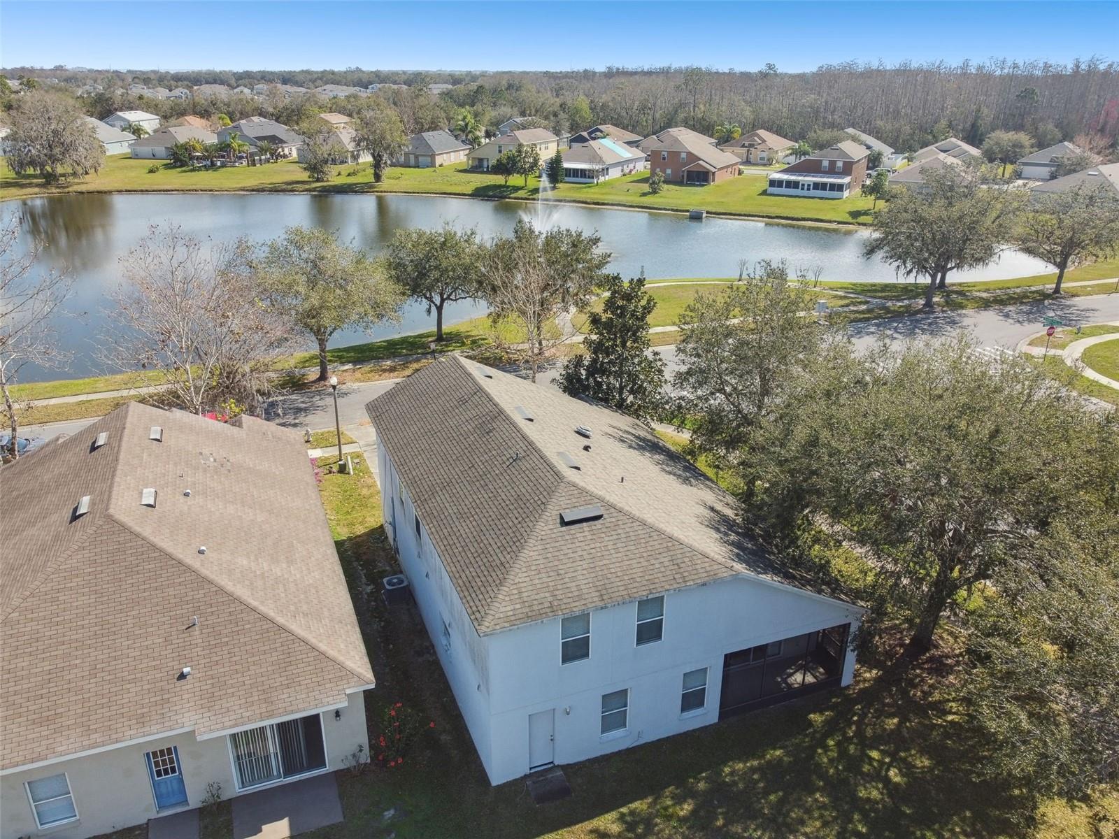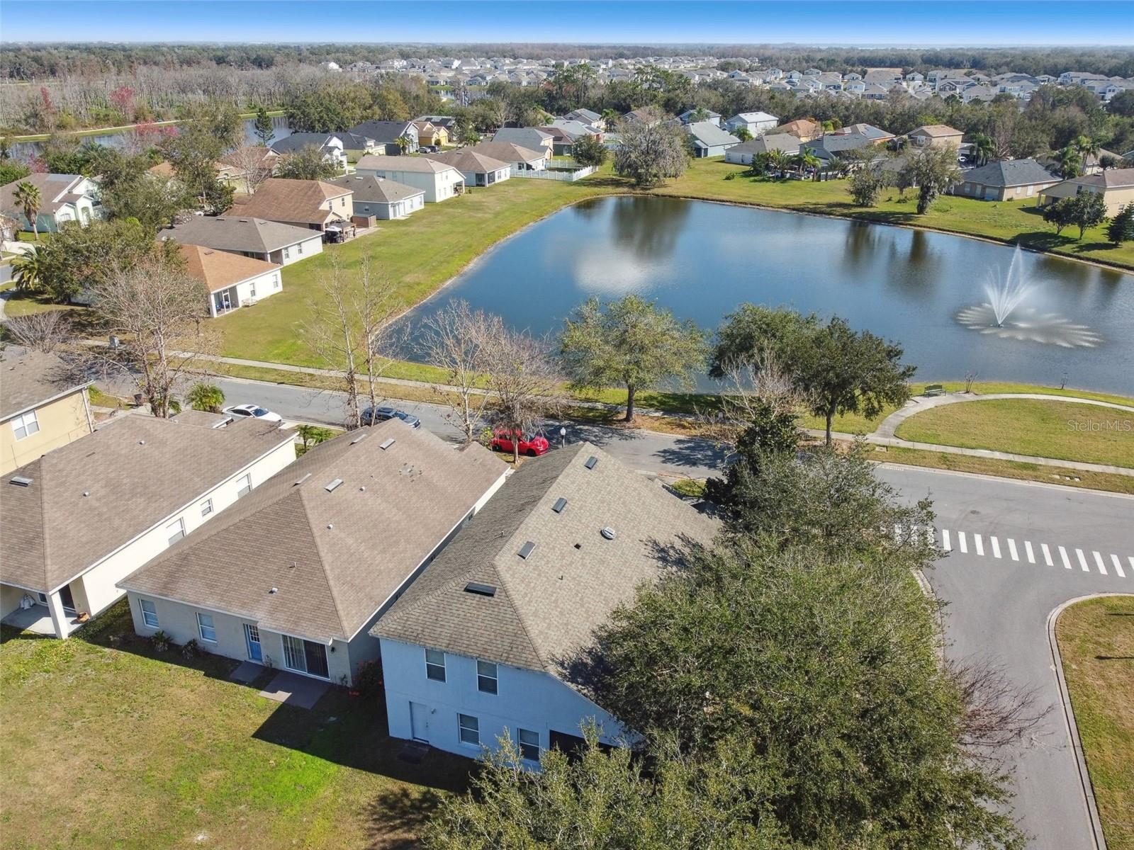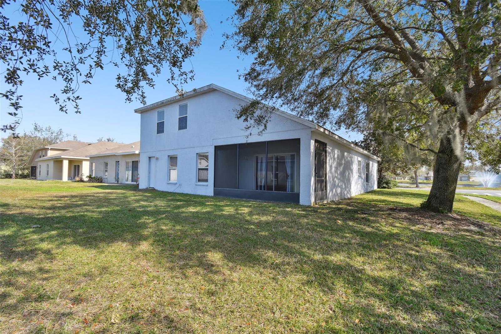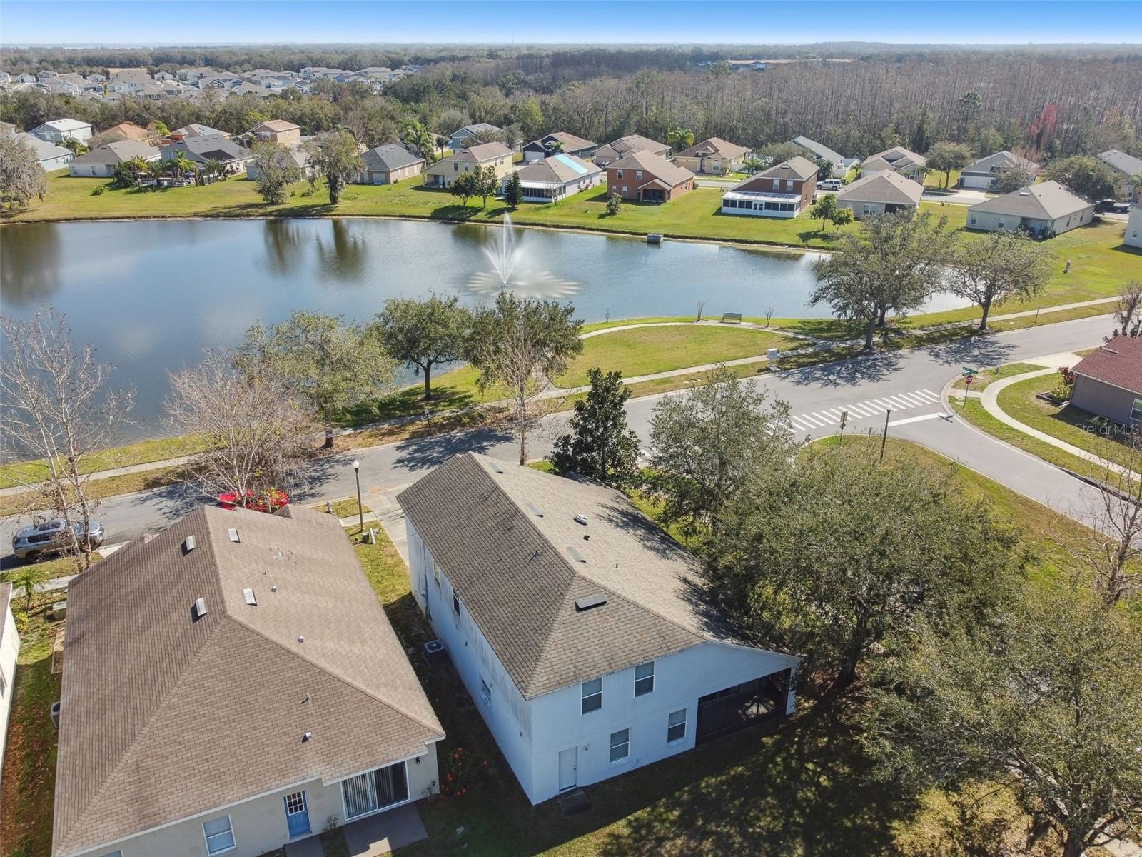 One or more photo(s) has been virtually staged. Experience the ultimate in spacious living with this stunning corner-lot home, boasting 4 bedrooms and 2.5 bathrooms. The large loft area is a versatile space that can easily be transformed into a 5th bedroom! The roof, adorned with high-quality architectural shingles, and the AC were both updated in 2018, ensuring peace of mind. The exterior paint is less than 8 years old, giving the home a fresh and modern look. Step inside to find a formal living area and a cozy family room downstairs, perfect for entertaining and family gatherings. Upstairs, the loft offers additional space with a serene view of a large pond and a beautiful water fountain. The kitchen features 42" tall cabinets and Corian countertops, providing ample storage and a sleek, modern look. The master bedroom, located downstairs, includes an extra-large closet and an elegant master bath. The backyard is an entertainer's dream, with plenty of space for gatherings and a screened lanai for relaxing evenings. The sprinkler irrigation system, installed in 2020, ensures a lush, green lawn year-round. With very low HOA fees, this home offers incredible value. Don't miss out on this opportunity to own a spacious home with picturesque water views. Schedule your showing today!