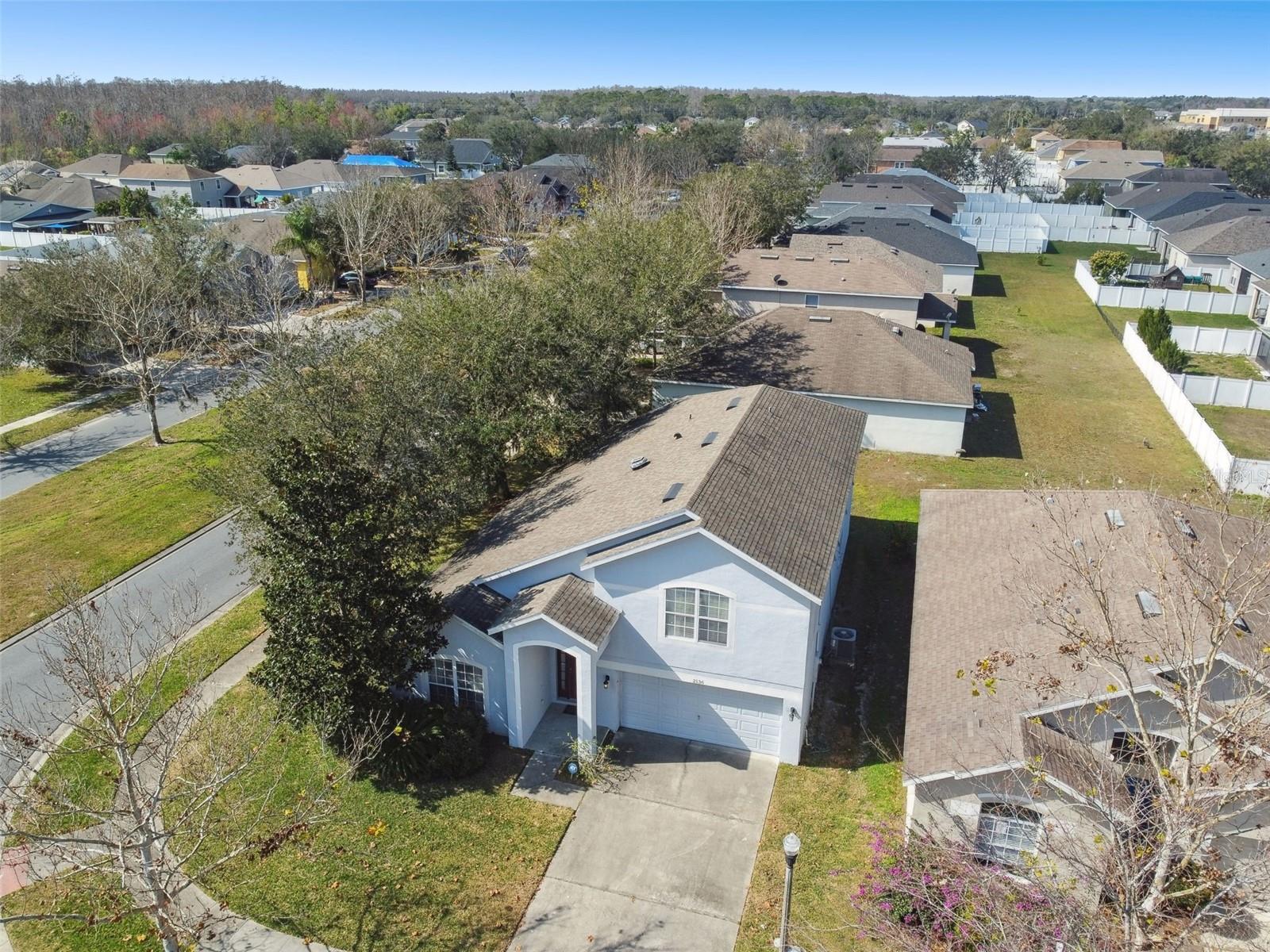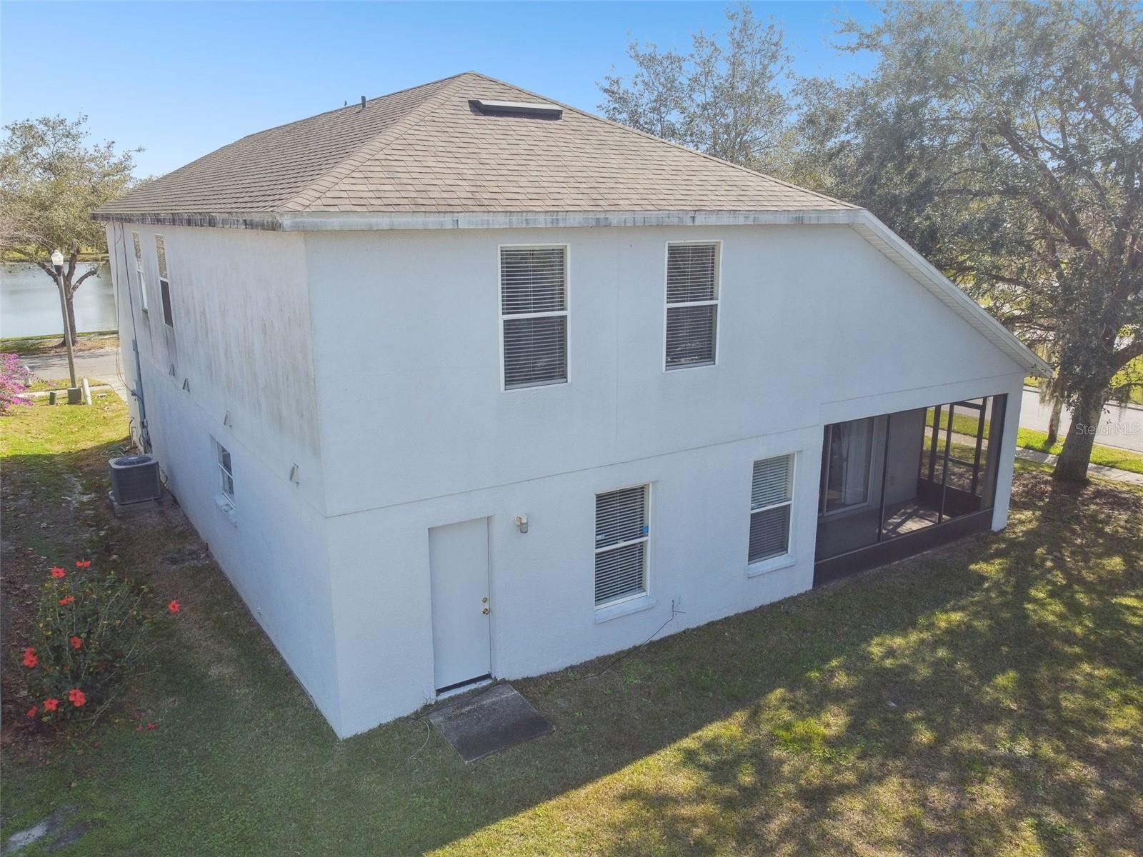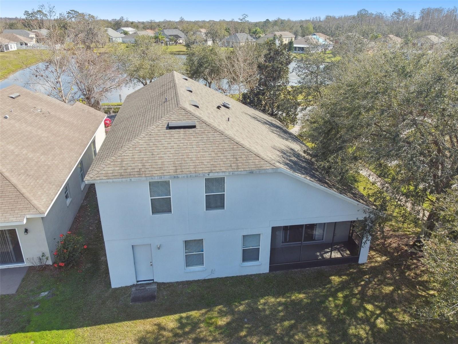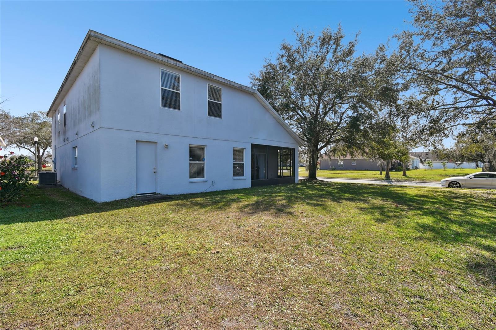 One or more photo(s) has been virtually staged. Experience the ultimate in spacious living with this stunning corner-lot home, boasting 4 bedrooms and 2.5 bathrooms. The large loft area is a versatile space that can easily be transformed into a 5th bedroom! The roof, adorned with high-quality architectural shingles, and the AC were both updated in 2018, ensuring peace of mind. The exterior paint is less than 8 years old, giving the home a fresh and modern look. Step inside to find a formal living area and a cozy family room downstairs, perfect for entertaining and family gatherings. Upstairs, the loft offers additional space with a serene view of a large pond and a beautiful water fountain. The kitchen features 42" tall cabinets and Corian countertops, providing ample storage and a sleek, modern look. The master bedroom, located downstairs, includes an extra-large closet and an elegant master bath. The backyard is an entertainer's dream, with plenty of space for gatherings and a screened lanai for relaxing evenings. The sprinkler irrigation system, installed in 2020, ensures a lush, green lawn year-round. With very low HOA fees, this home offers incredible value. Don't miss out on this opportunity to own a spacious home with picturesque water views. Schedule your showing today!