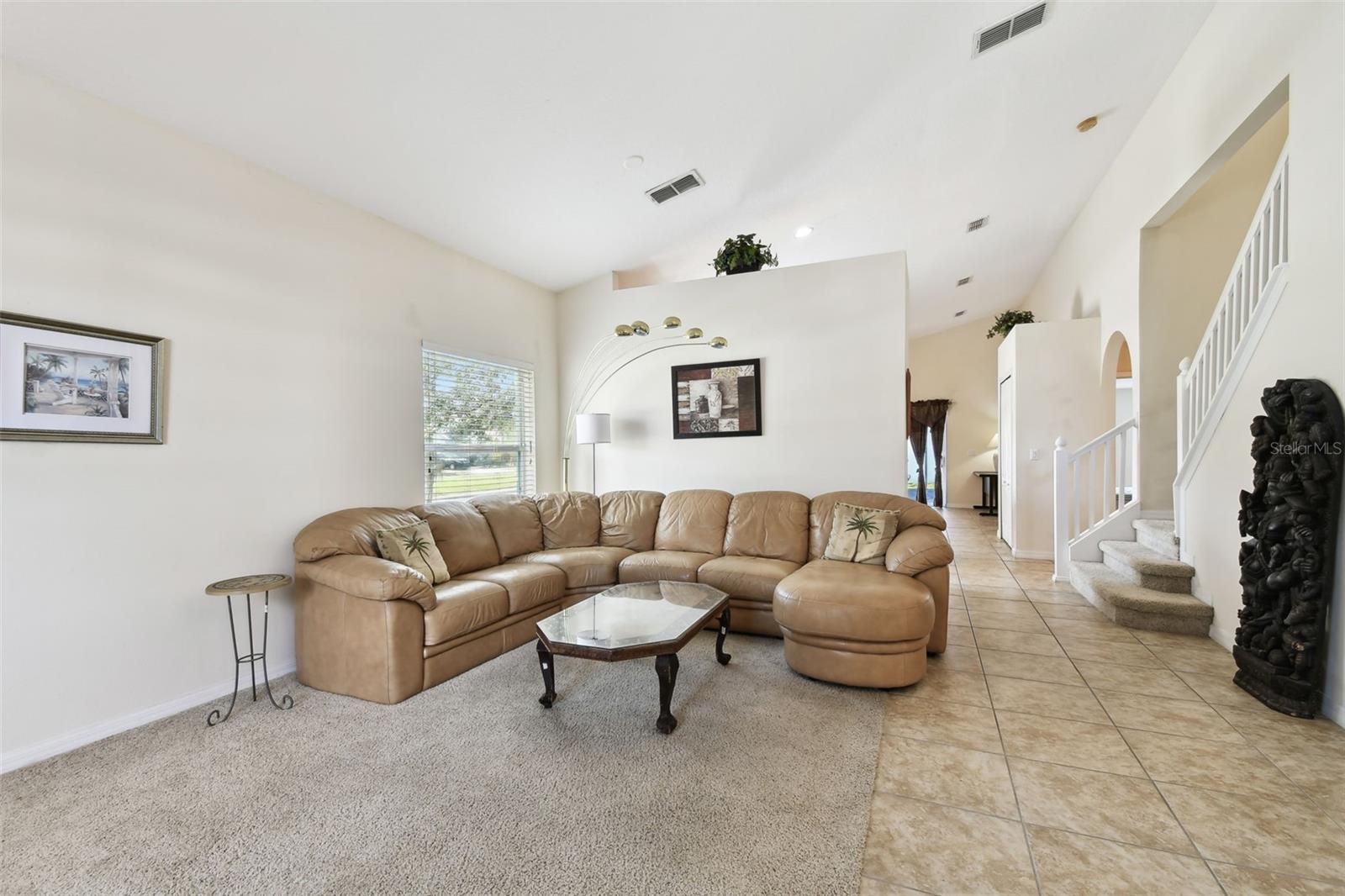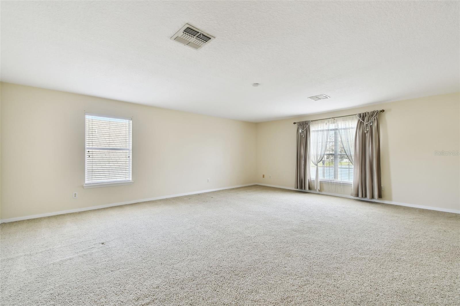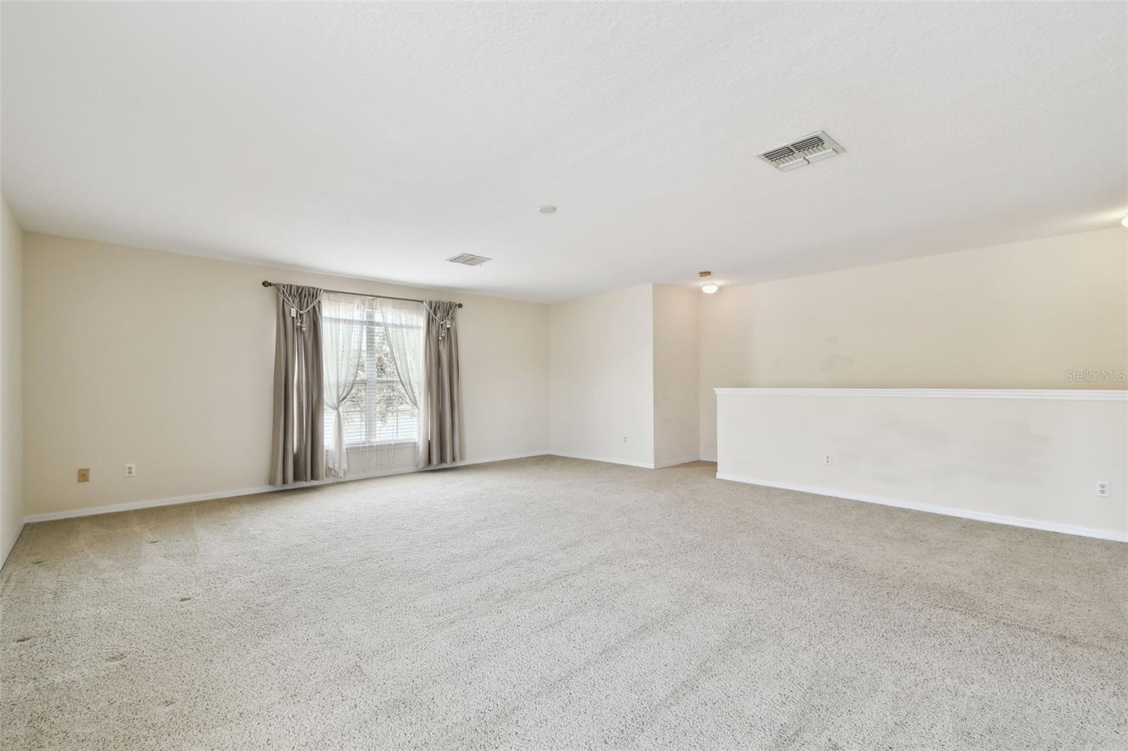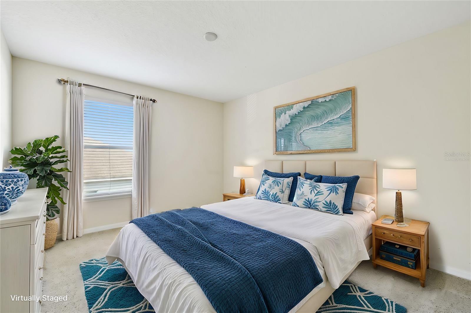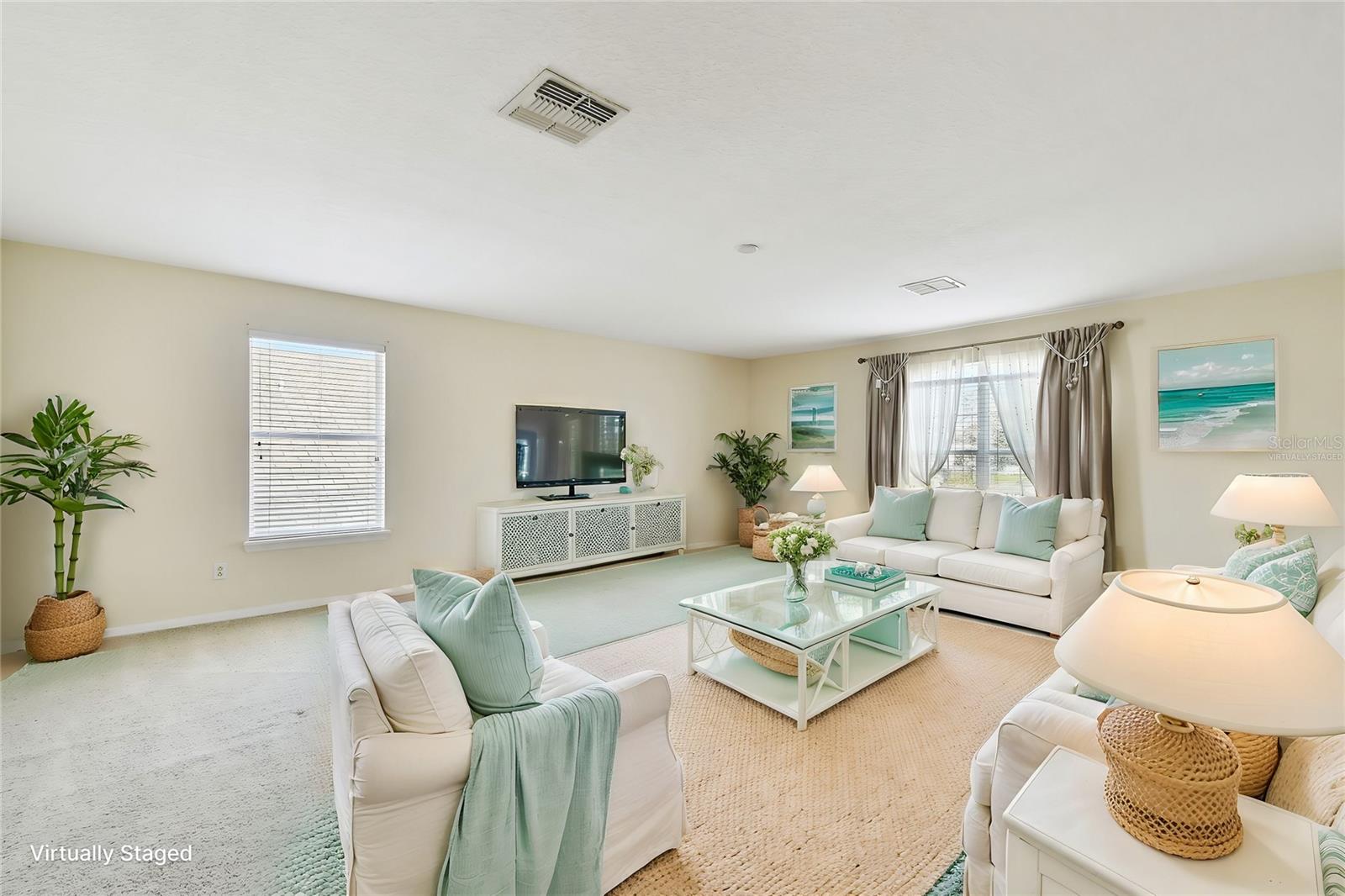 One or more photo(s) has been virtually staged. Experience the ultimate in spacious living with this stunning corner-lot home, boasting 4 bedrooms and 2.5 bathrooms. The large loft area is a versatile space that can easily be transformed into a 5th bedroom! The roof, adorned with high-quality architectural shingles, and the AC were both updated in 2018, ensuring peace of mind. The exterior paint is less than 8 years old, giving the home a fresh and modern look. Step inside to find a formal living area and a cozy family room downstairs, perfect for entertaining and family gatherings. Upstairs, the loft offers additional space with a serene view of a large pond and a beautiful water fountain. The kitchen features 42" tall cabinets and Corian countertops, providing ample storage and a sleek, modern look. The master bedroom, located downstairs, includes an extra-large closet and an elegant master bath. The backyard is an entertainer's dream, with plenty of space for gatherings and a screened lanai for relaxing evenings. The sprinkler irrigation system, installed in 2020, ensures a lush, green lawn year-round. With very low HOA fees, this home offers incredible value. Don't miss out on this opportunity to own a spacious home with picturesque water views. Schedule your showing today!