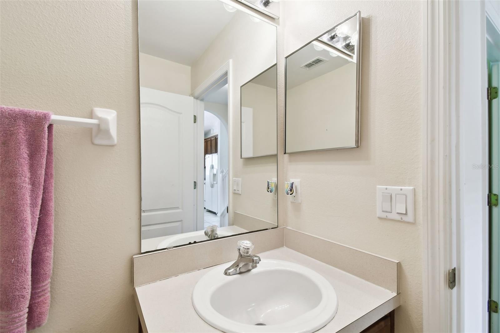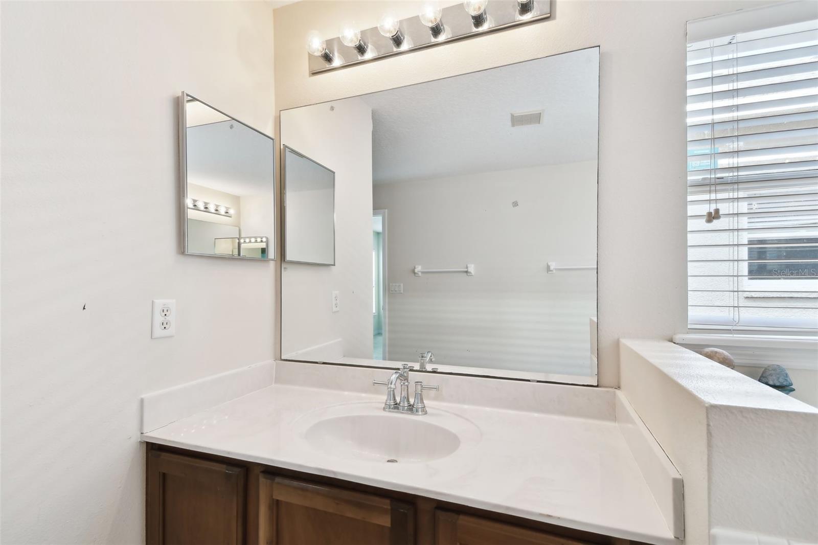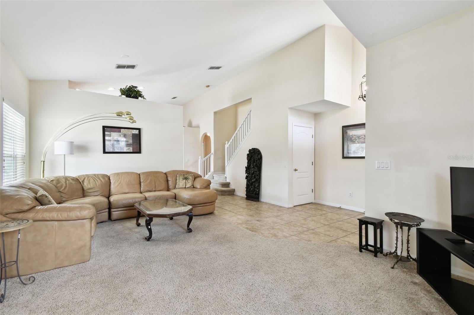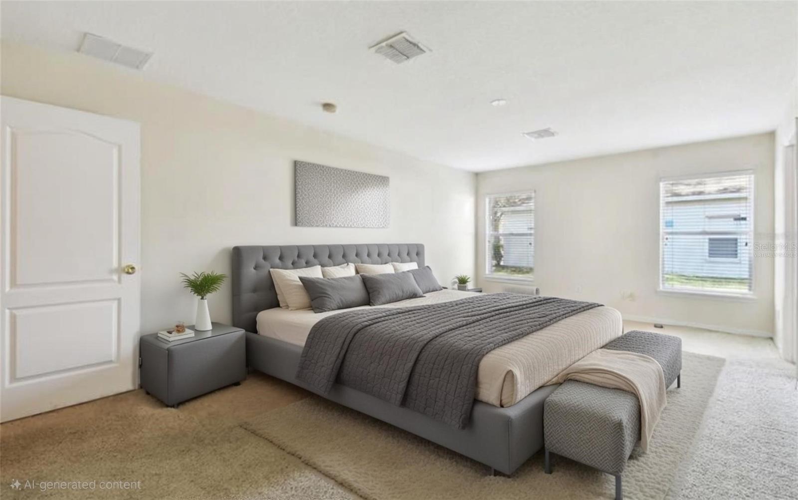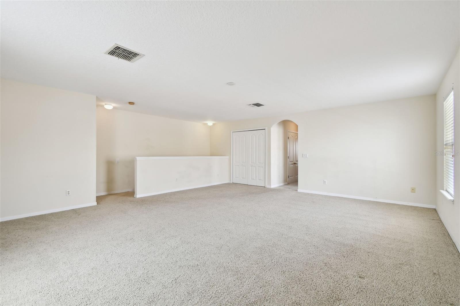 One or more photo(s) has been virtually staged. Experience the ultimate in spacious living with this stunning corner-lot home, boasting 4 bedrooms and 2.5 bathrooms. The large loft area is a versatile space that can easily be transformed into a 5th bedroom! The roof, adorned with high-quality architectural shingles, and the AC were both updated in 2018, ensuring peace of mind. The exterior paint is less than 8 years old, giving the home a fresh and modern look. Step inside to find a formal living area and a cozy family room downstairs, perfect for entertaining and family gatherings. Upstairs, the loft offers additional space with a serene view of a large pond and a beautiful water fountain. The kitchen features 42" tall cabinets and Corian countertops, providing ample storage and a sleek, modern look. The master bedroom, located downstairs, includes an extra-large closet and an elegant master bath. The backyard is an entertainer's dream, with plenty of space for gatherings and a screened lanai for relaxing evenings. The sprinkler irrigation system, installed in 2020, ensures a lush, green lawn year-round. With very low HOA fees, this home offers incredible value. Don't miss out on this opportunity to own a spacious home with picturesque water views. Schedule your showing today!
