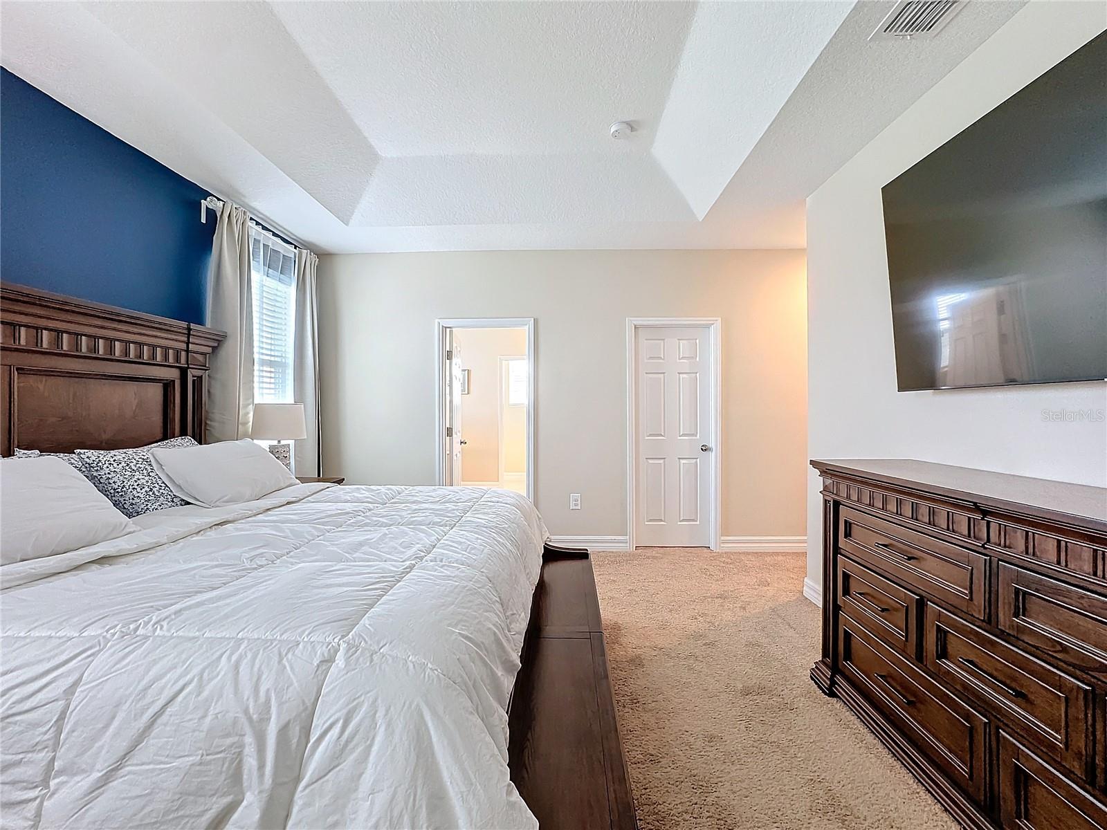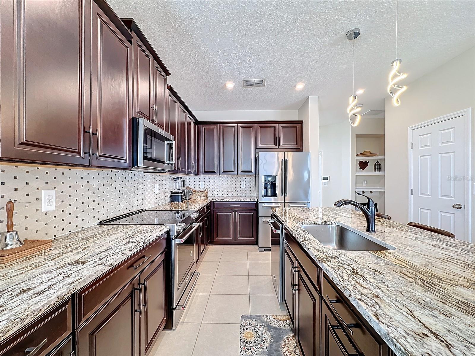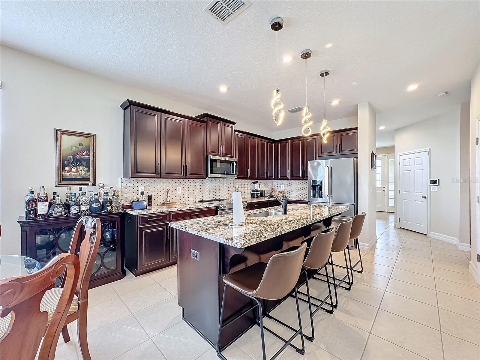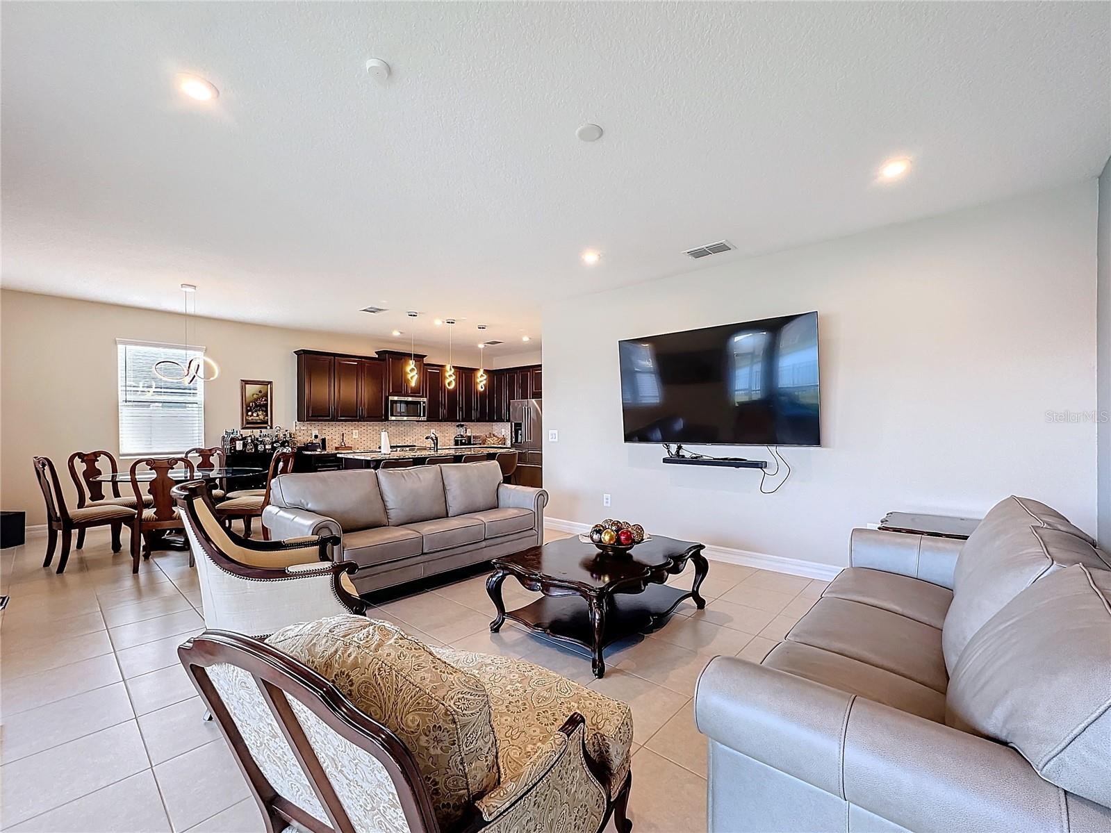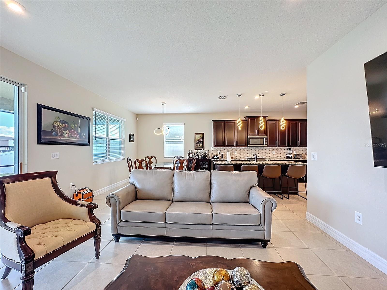 Welcome to this beautifully maintained, newer-built (2020) home in the highly desirable Tapestry community of Kissimmee. This spacious 4-bedroom, 2.5-bath, 2-car garage home is perfect for growing families, offering access to top-rated charter schools and an abundance of resort-style amenities. Upon entering, you'll notice the sleek tile flooring throughout the first floor. A bright hallway leads to the open-concept family room, featuring extended sliding glass doors that seamlessly connect to the screened-in lanai—perfect for relaxing and enjoying the serene pond views. The modern kitchen is a chef’s dream, boasting granite countertops, stainless steel appliances, a center island, a dinette space, a closet pantry, and ample cabinet and counter space. Upstairs, you'll find soaring vaulted ceilings, a versatile loft space ideal for a home office or playroom, and all four spacious bedrooms. The primary suite is a true retreat, featuring tray ceilings, a massive walk-in closet, dual sinks, a glass-enclosed shower, and a separate soaking tub. The additional bedrooms share a well-appointed hall bath, and the laundry room includes cabinets and a utility sink for added convenience. The spacious fenced backyard provides privacy and breathtaking pond views, creating the perfect setting for outdoor gatherings. Tapestry is a gated community with 24-hour security and an impressive lineup of amenities, including a resort-style swimming pool, fitness center, walking trails, dog park, playgrounds, sports fields, BBQ pavilion, ballroom, and an upgraded catering kitchen. Conveniently located near The Loop shopping centers, major roads, world-class attractions, and theme parks. Don’t miss out on this incredible opportunity—schedule your showing today!