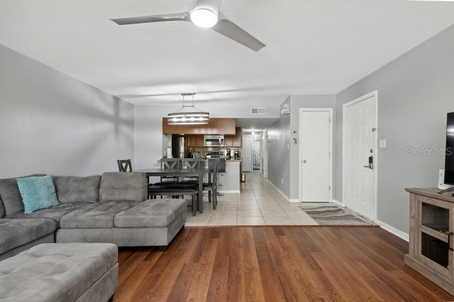 Your Dream Condo Awaits! This exceptional furnished GROUND-floor condo is the epitome of convenience, perfectly positioned for both short-term rentals or as your primary residence. Located just minutes away from the magic of Disney World, shopping centers, outlets, restaurants, just to name a few. It's nestled within a resort-style community offering two inviting swimming pools, tennis courts, a well-equipped fitness center, volleyball court, playground, and the added peace of a secured gated entrance. Step inside to a beautifully open updated interior featuring luxurious vinyl plank flooring in the living room and bedrooms. Discover granite countertops, handcrafted wood cabinetry, new closet sliding doors, and high-quality stainless steel appliances in the modern kitchen. Unlock the possibilities of an extraordinary lifestyle in the heart of Orlando. Don't miss out on this remarkable opportunity to make this condo yours!