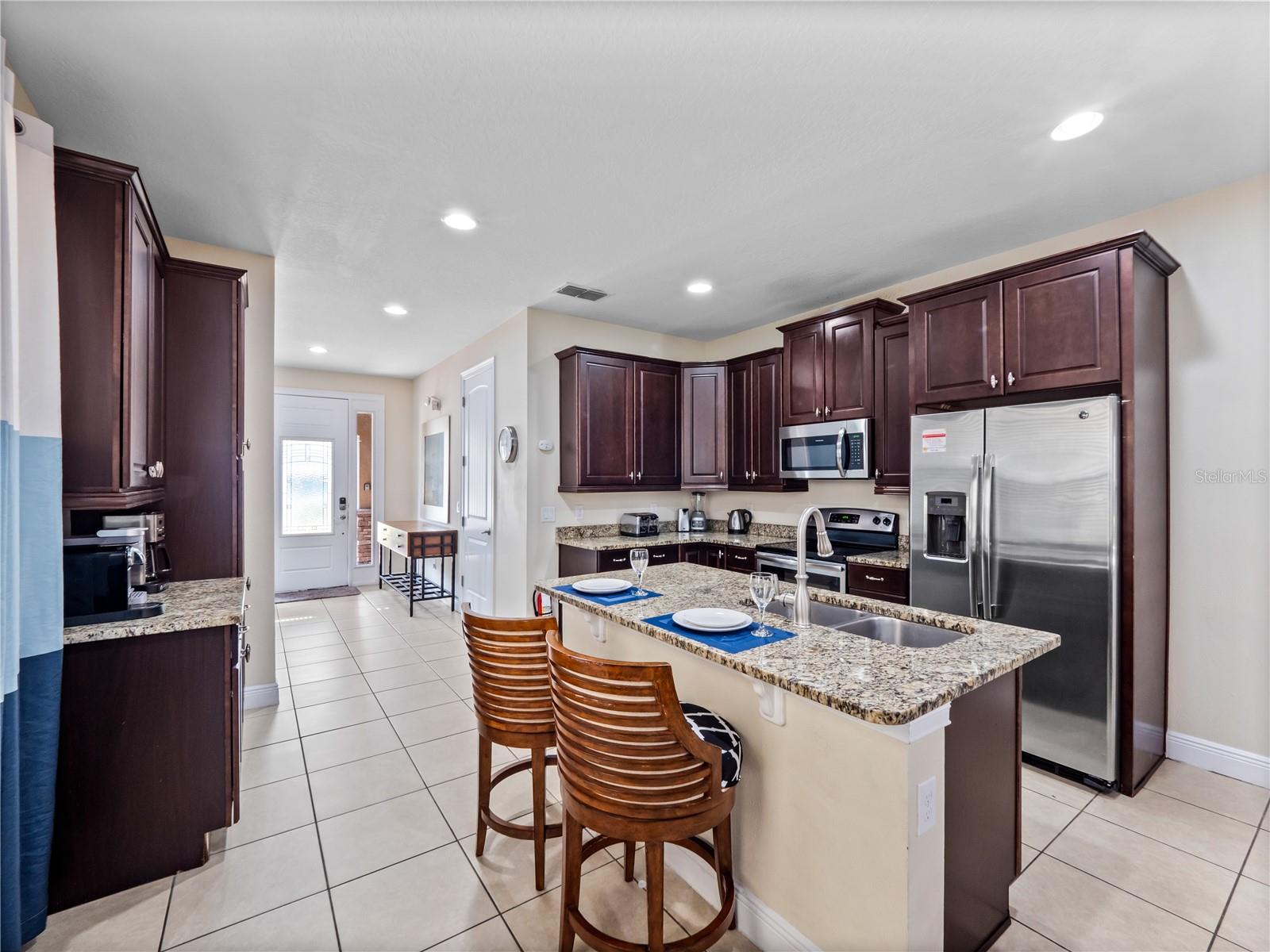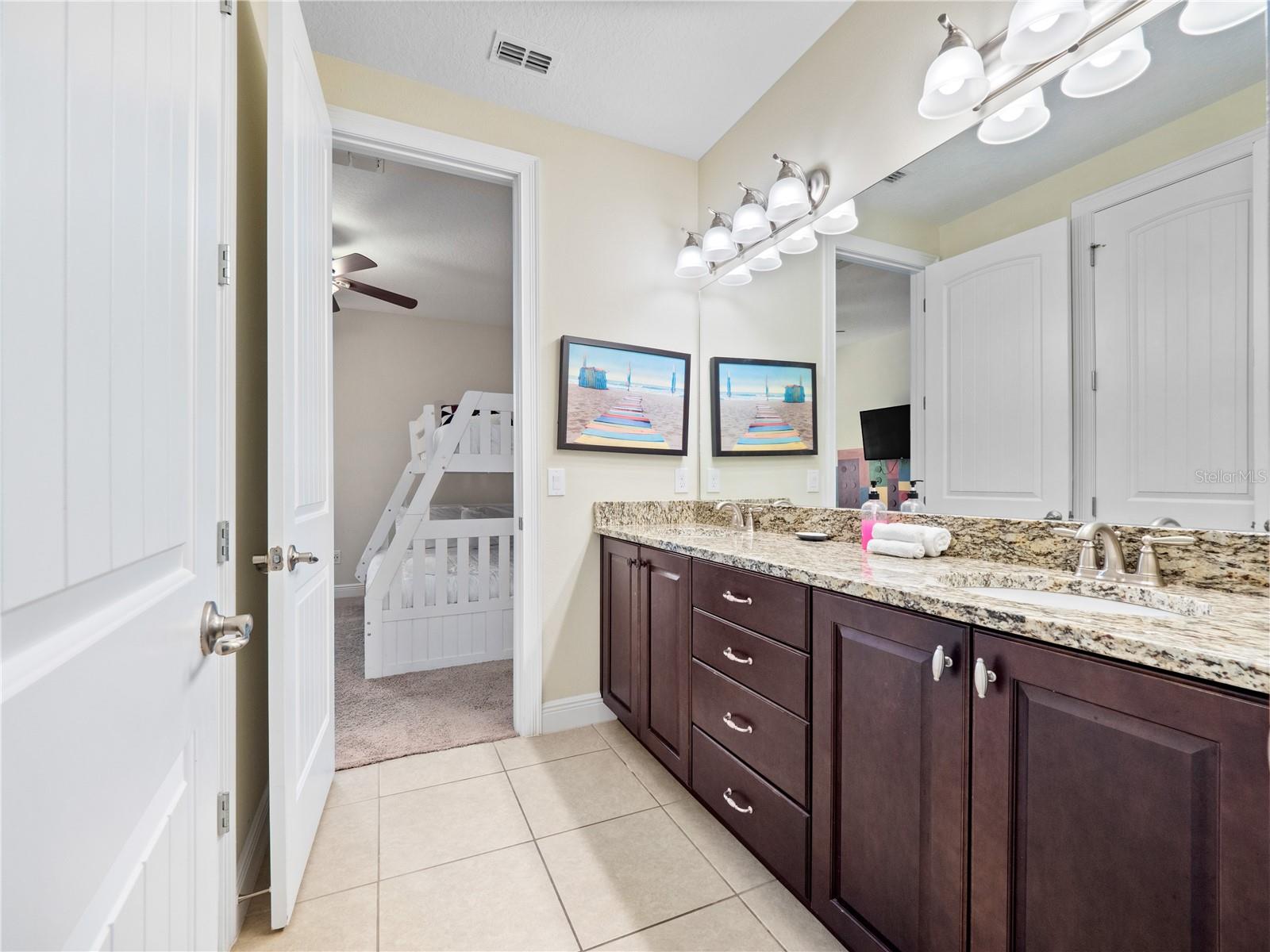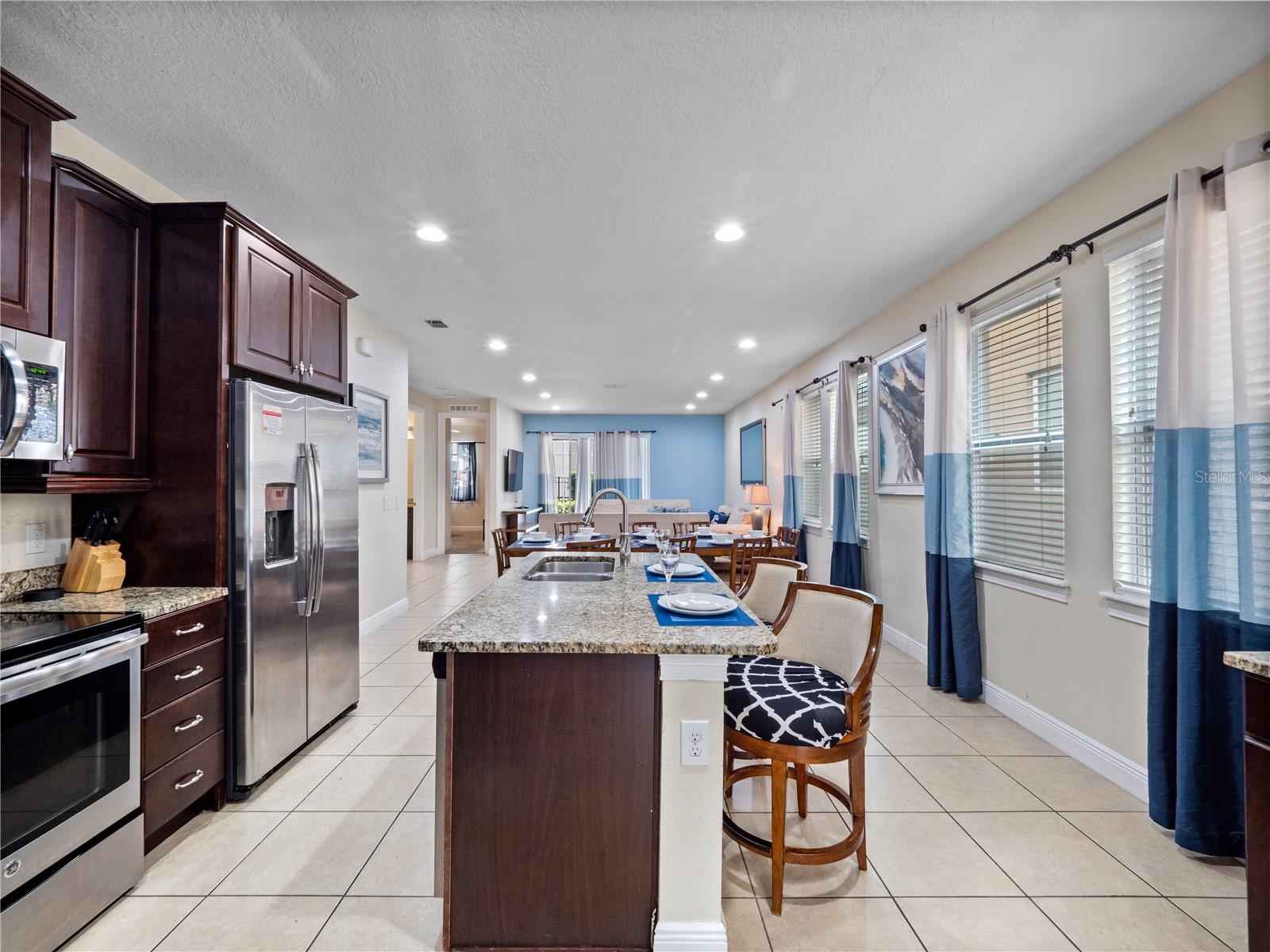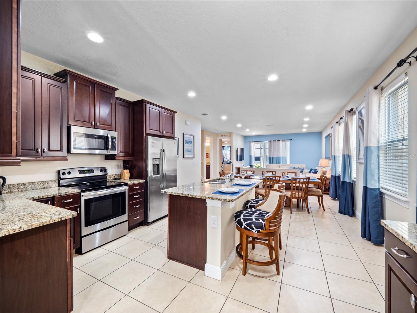Welcome to an exquisite 8-bedroom, 7-bath luxury vacation home nestled in the highly sought-after Encore Resort community. This stunning property is just minutes from Disney and all the magical attractions, promising an unforgettable stay. It's perfectly positioned for convenience, just a short walk to the resorts fabulous amenities, which include a clubhouse and a thrilling aqua park. Enjoy the benefits of being on the quieter side of the neighborhood, without having to cross Old Lake Wilson Road. You won't have to deal with the disturbances from major roads or the community pool, ensuring peace and tranquility during your stay. Plus, this home offers something rare--a screen-enclosed backyard, one of only about five in the neighborhood, perfect for private relaxation. Unique touches make this home truly special: Explore the enchanting Harry Potter, Mickey Mouse, Lego/ Minion themed rooms, complete with a mural, chandelier, and themed linens for the ultimate immersive experience. Creative minds love the room adorned with a captivating Lego mural. For the art lovers, the loft is a stunner, showcasing a striking Lichtenstein mural and offering entertainment with an air hockey table, music, and flashing lights, a sure hit for any gathering. An open floor plan with inviting natural lighting, tile floorings throughout all common living areas. Kitchen features granite counters, cherry wood 42" cabinets, energy efficient stainless steel appliances. This home has TWO primary bedrooms - one downstairs and one upstairs. There are five bedrooms ensuite - perfect for family vacations, two bedrooms on the MAIN LEVEL* for extra privacy and accessibility. The home is elegantly furnished with Tommy Bahama Ocean Club design, ensuring comfort with a touch of island elegance. Relax in this luxury vacation private pool home paired with a rejuvenating spa, providing a serene retreat after your adventures around Orlando. Choose this unmatched vacation rental to create magical memories for your family and friends, blending luxury with convenience and unique charm, all awaiting you in Encore Resort. ENCORE is one of Orlando's Premiere Vacation home communities featuring an Aqua Park, Fitness Center, Tennis, Basketball, Volleyball, Soccer Field, Event Spaces, Bike Rentals, Dining, and SO MUCH MORE! HOA dues include: Digital Cable Television, Trash Pick Up, Mail Service, Pest Control (includes Termite Bond & Monthly Spraying), Lawn, Annual Exterior Cleaning of Home, 24-hour Roaming Security, High Speed Internet. Currently active short term rental program, which makes this home a great investment!