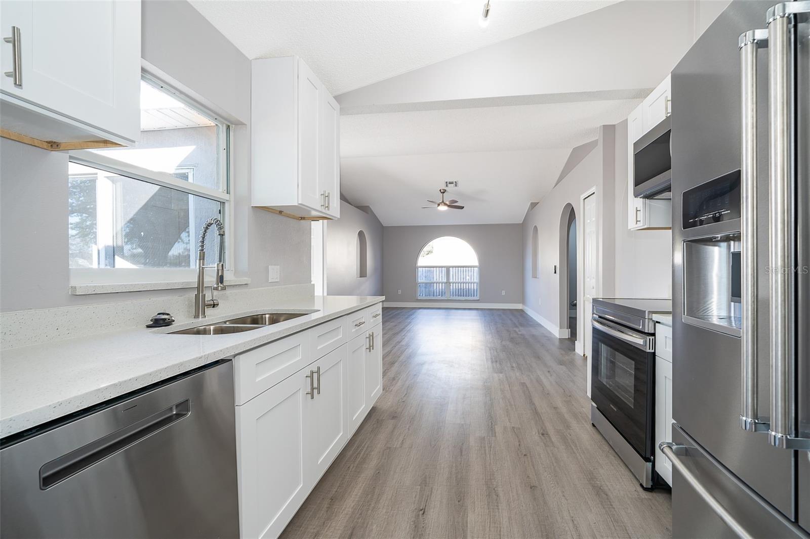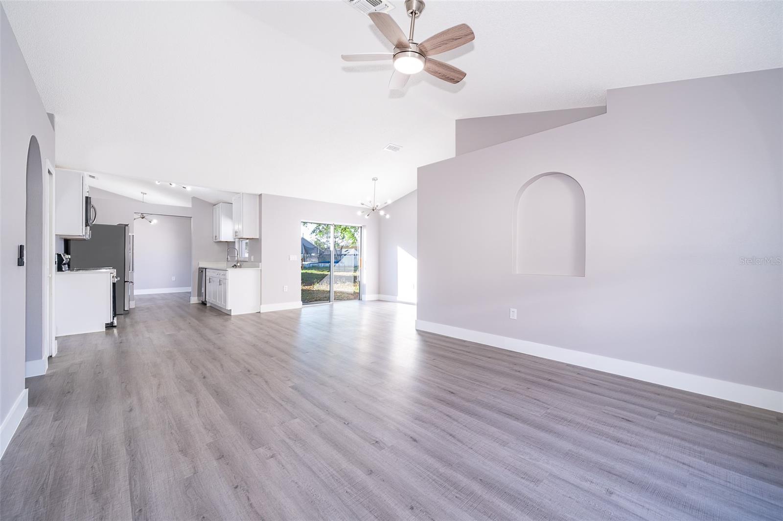 Sellers Now Offering $8,000 Toward Closing Costs When Using Preferred Lender! Completely Renovated & Ready for You to Move In! Welcome to 738 Paris Drive, Kissimmee, FL 34759 — a beautifully updated 3-bedroom, 2-bathroom home offering 1,654 sq. ft. of modern living space on a generous 10,062 sq. ft. lot. This home features sleek laminate wood flooring throughout, an open concept layout, and tasteful finishes that create a bright and inviting atmosphere. The kitchen boasts modern cabinetry, updated appliances, and a pantry for added convenience. The spacious primary suite includes a walk-in closet, a glass enclosed shower, and a soaking tub for the perfect end-of-day unwind. Enjoy a large backyard with plenty of space to entertain or create your own private escape. Located in the desirable Poinciana community with low HOA fees and access to parks and recreational amenities. Schedule your private showing today!