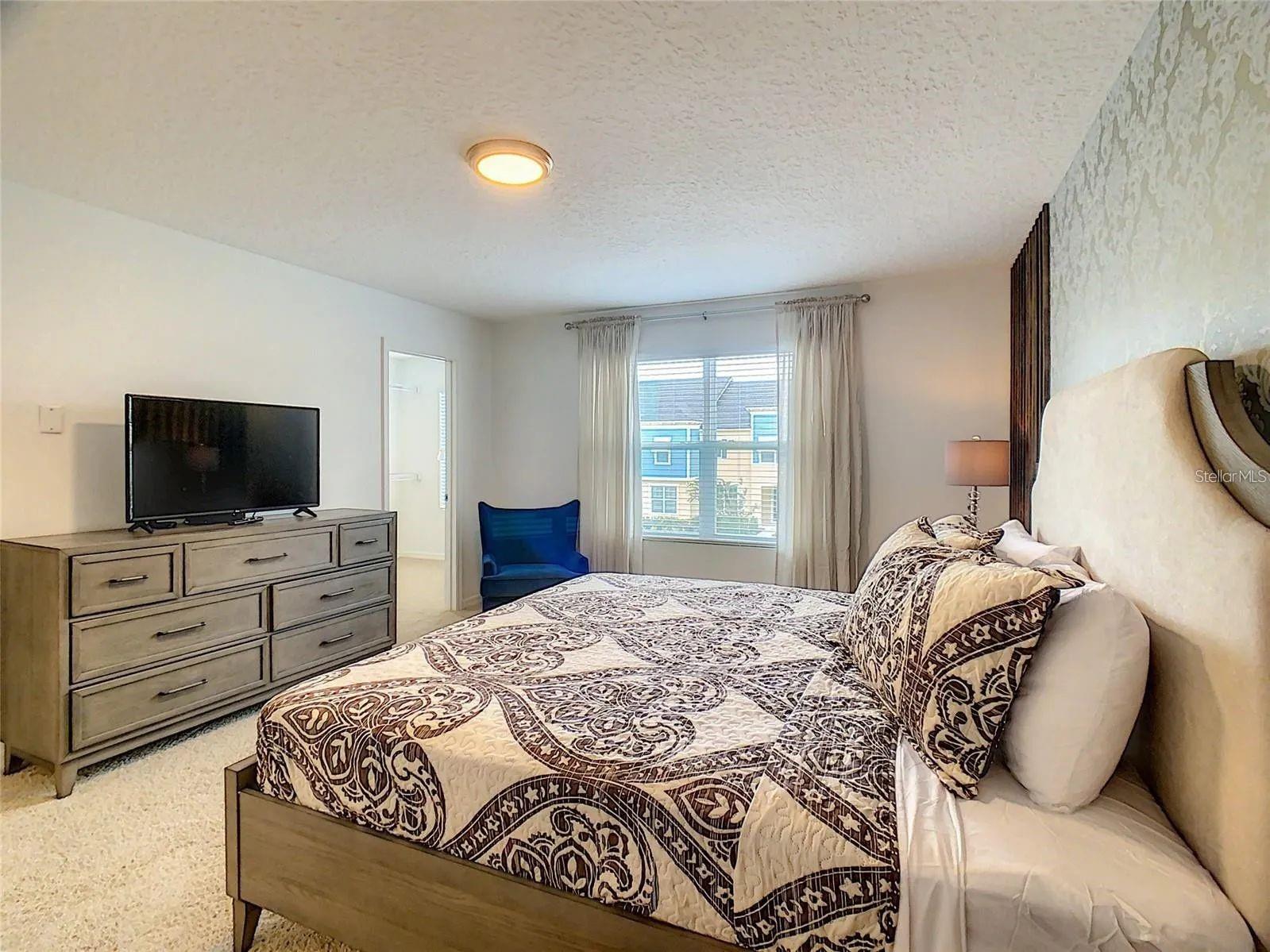 Discover the vibrant lifestyle of **Solara Resort**, a sought-after gated community that blends relaxation, entertainment, and convenience in one exceptional location. Just a short drive from **Disney World**, premier shopping destinations, and renowned restaurants, Solara offers residents and guests an array of world-class amenities. Enjoy access to a stunning clubhouse, expansive resort-style pools, a water park, Surf FlowRider, fitness center, video arcade, and various sports courts—ideal for those seeking both excitement and tranquility. Set within this dynamic community is a beautifully designed, fully furnished **four-bedroom, four-and-a-half-bathroom pool home** at **2182 Cooper Bell Place**. This residence is a true retreat, blending elegance with comfort in every detail. As you step inside, the main level welcomes you with an open-concept living, dining, and kitchen space, crafted for both entertaining and relaxation. The chef’s kitchen boasts sleek dark cabinetry, sparkling countertops, premium appliances, and an expansive bar area—perfect for casual meals or evening cocktails with friends. Also on the ground floor is a convenient bedroom with an en-suite bathroom and direct access to the pool area, offering both privacy and ease for guests. Upstairs, you'll find a luxurious primary suite, an additional ensuite bedroom, a cozy bonus/TV room, and two more spacious bedrooms—providing ample room for family or visitors. Step outside through the sliding glass doors to a covered patio overlooking a private, sparkling pool—perfect for soaking up the Florida sunshine. Ceramic flooring in wet areas, thoughtful décor, and professional furnishings elevate this home’s luxurious feel. This exceptional property offers not just a beautiful living space but also access to a vibrant, amenity-rich community. Schedule your private showing today and experience everything Solara Resort has to offer—your perfect Florida lifestyle awaits!